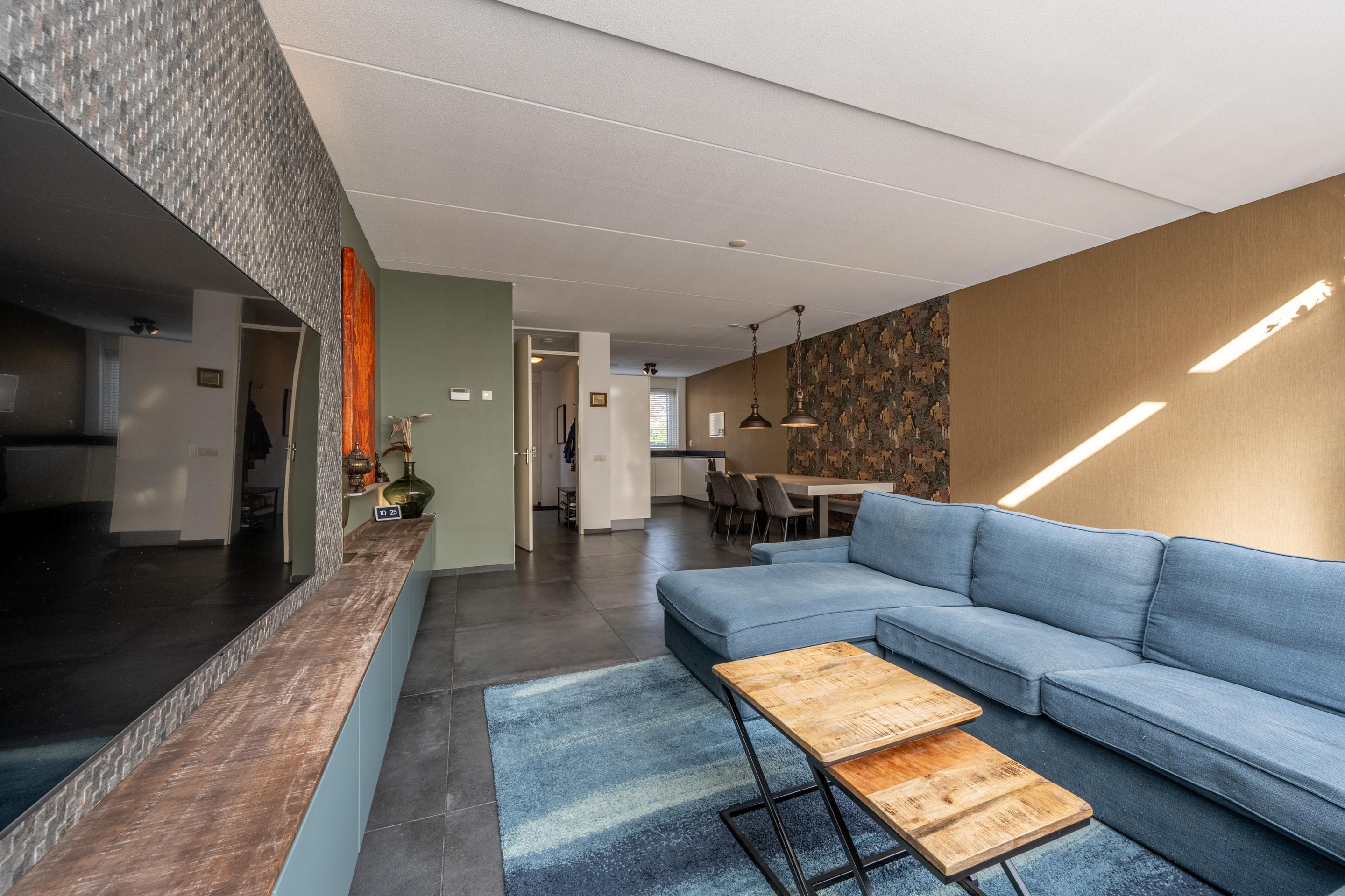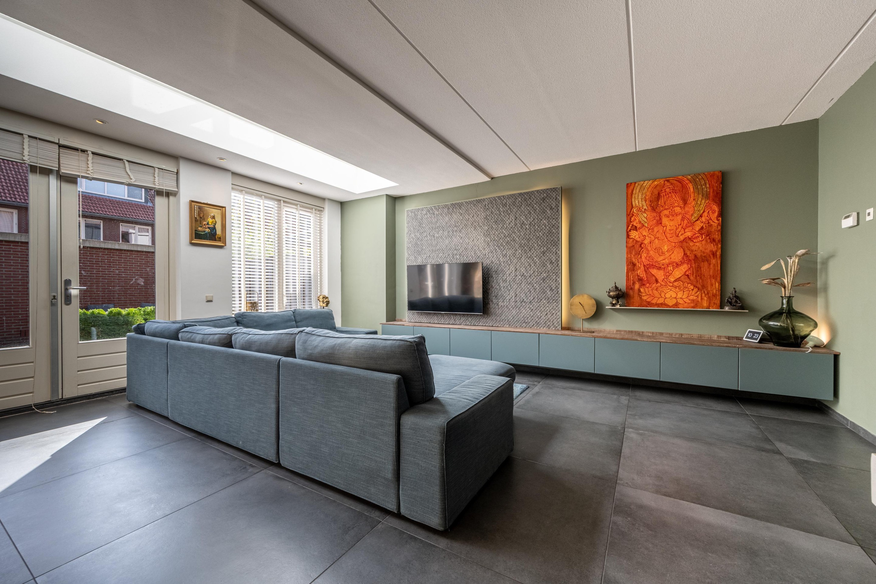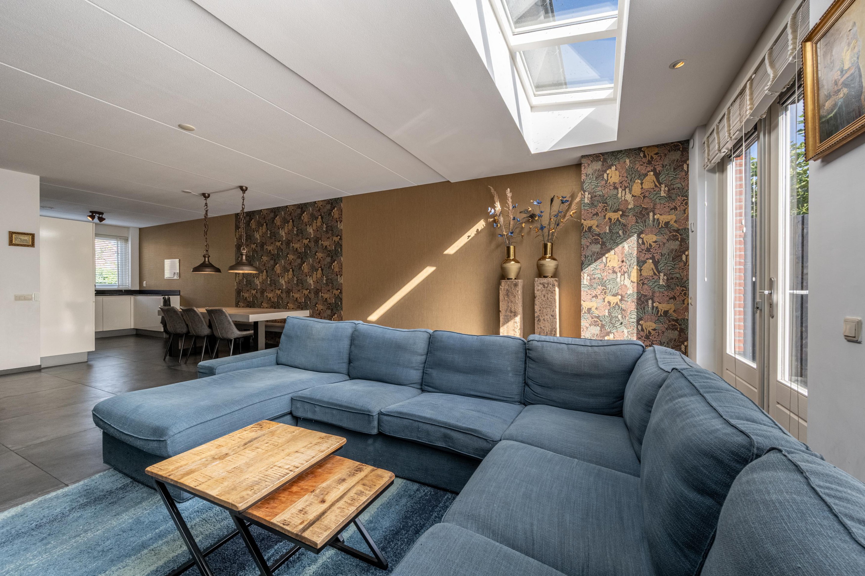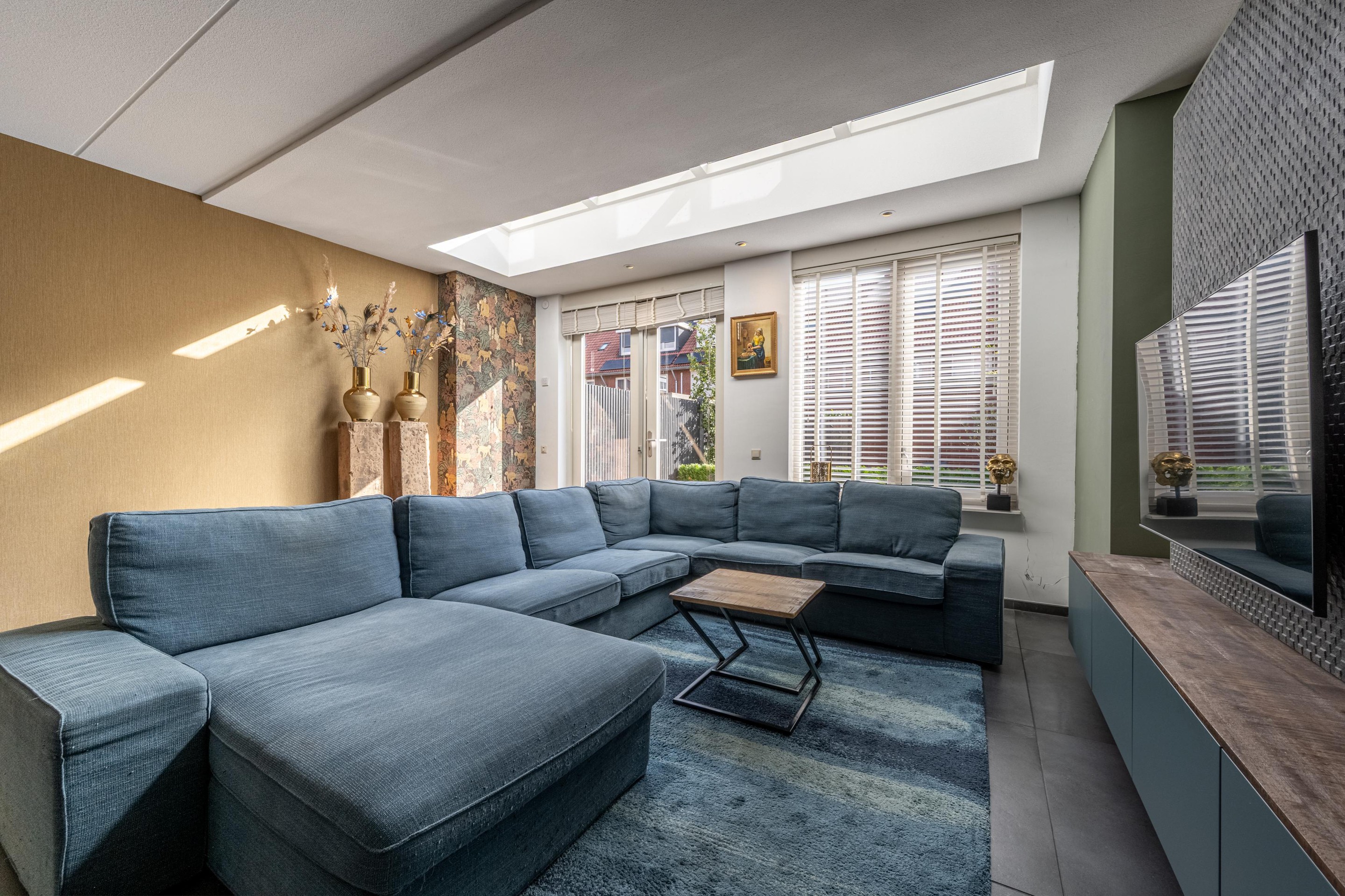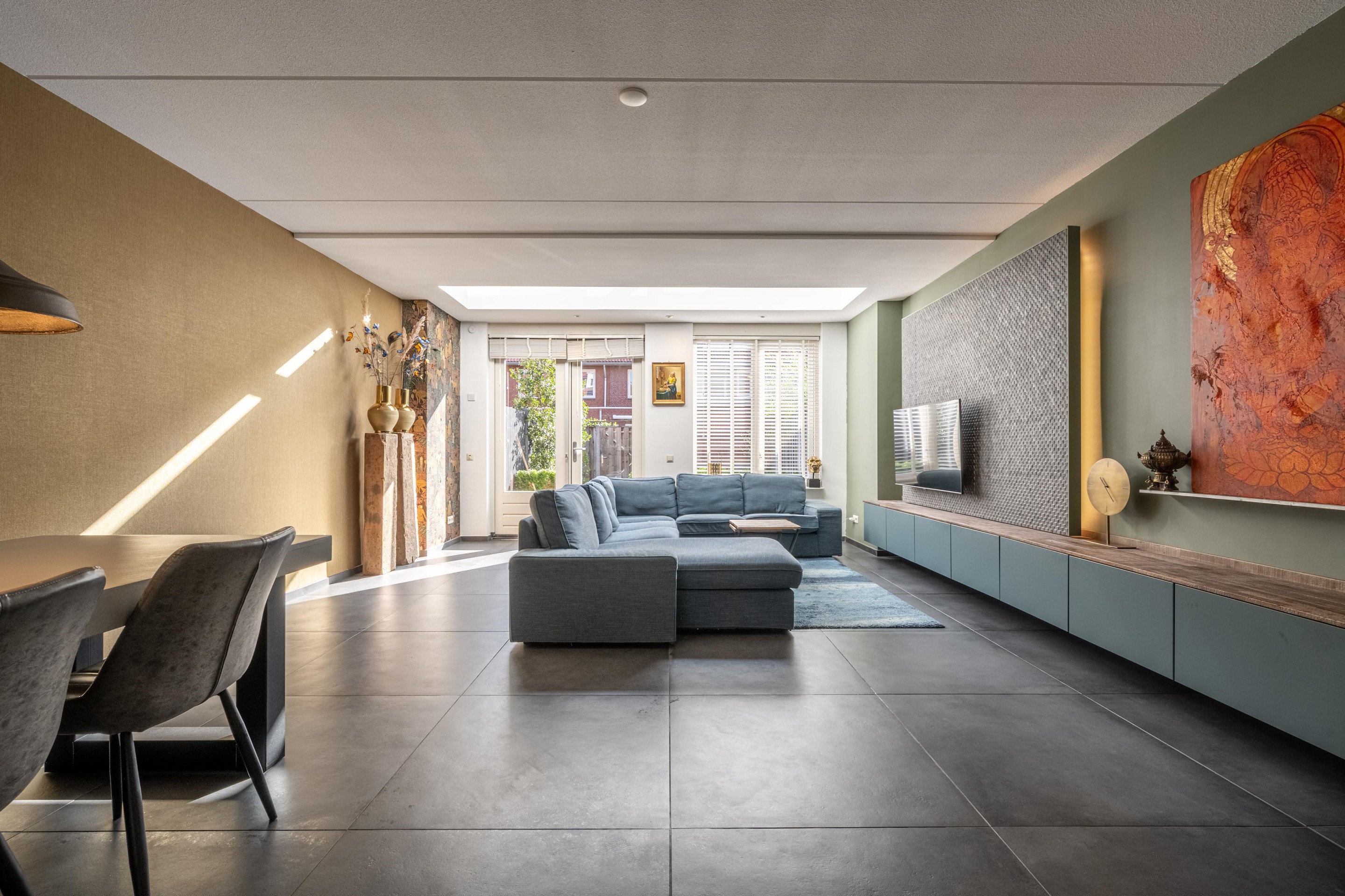 1. Uitgebouwde woonkamer (2018) met vloerverwarming en tuindeuren naar de fraai vernieuwde tuin
