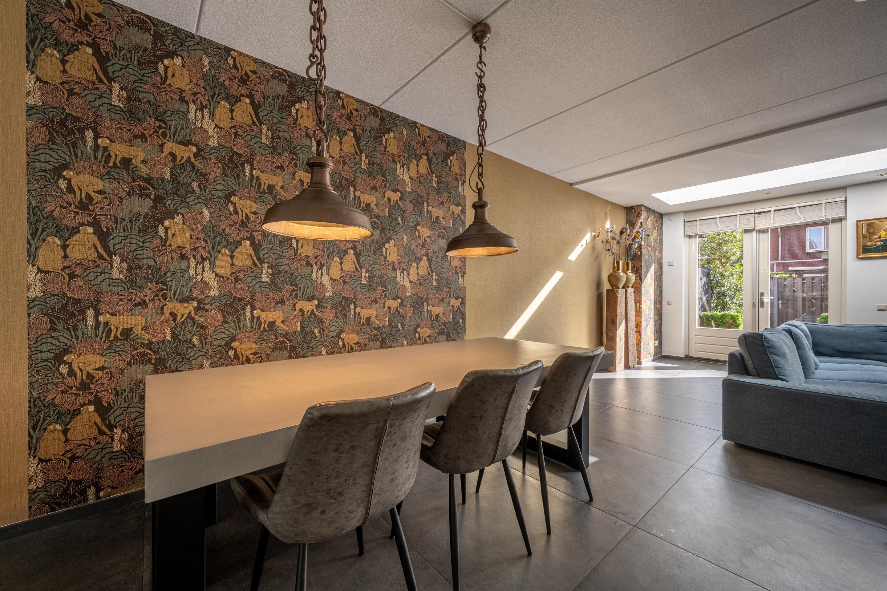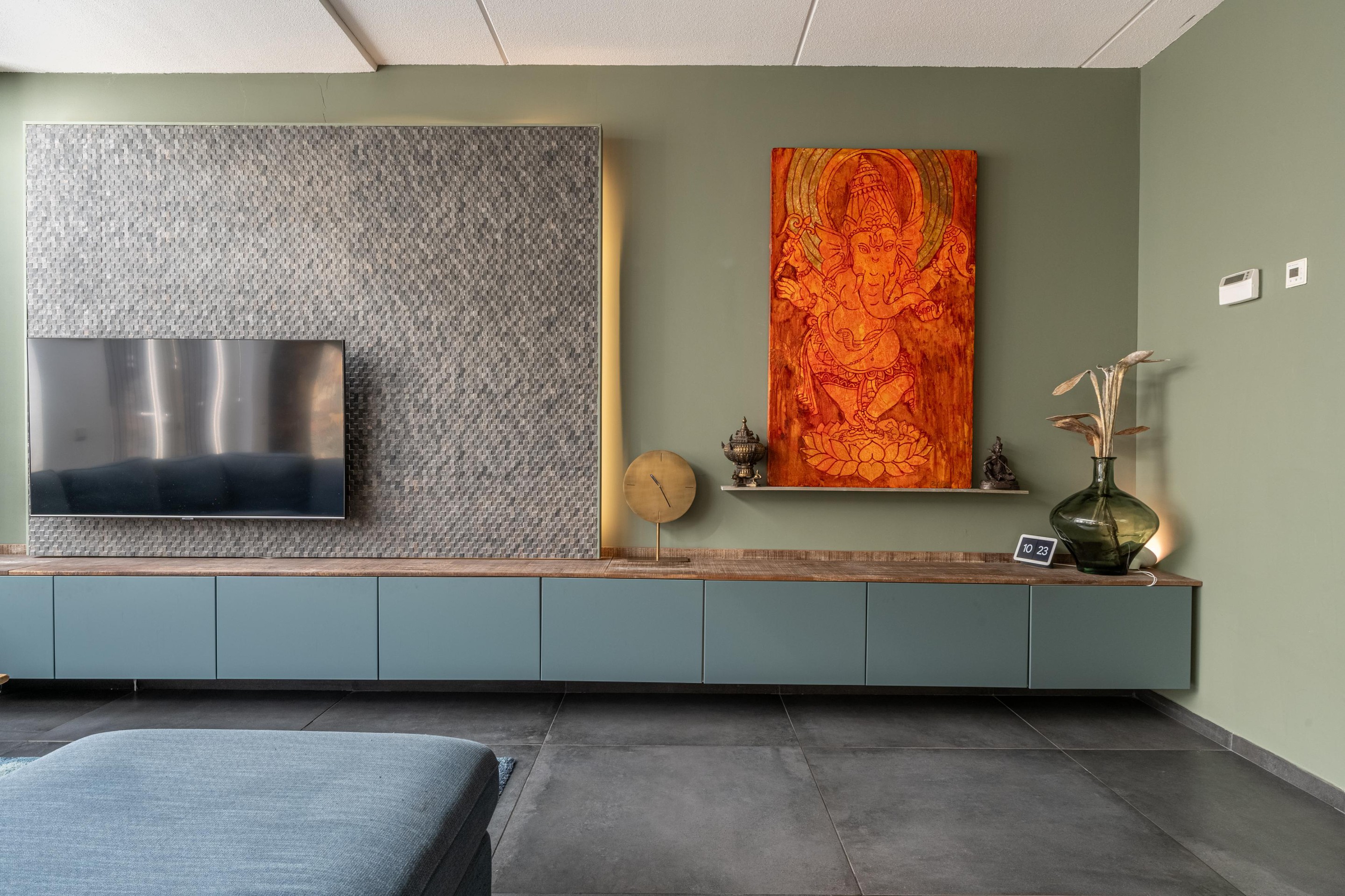 Bij binnenkomst in de woning betreed je de ruime hal, die toegang biedt tot het moderne toilet, de meterkast en de lichte, uitgebouwde woonkamer. De hal is verzorgd afgewerkt en geeft direct een voorproefje van de moderne en sfeervolle uitstraling die je in de rest van de woning terugvindt.
