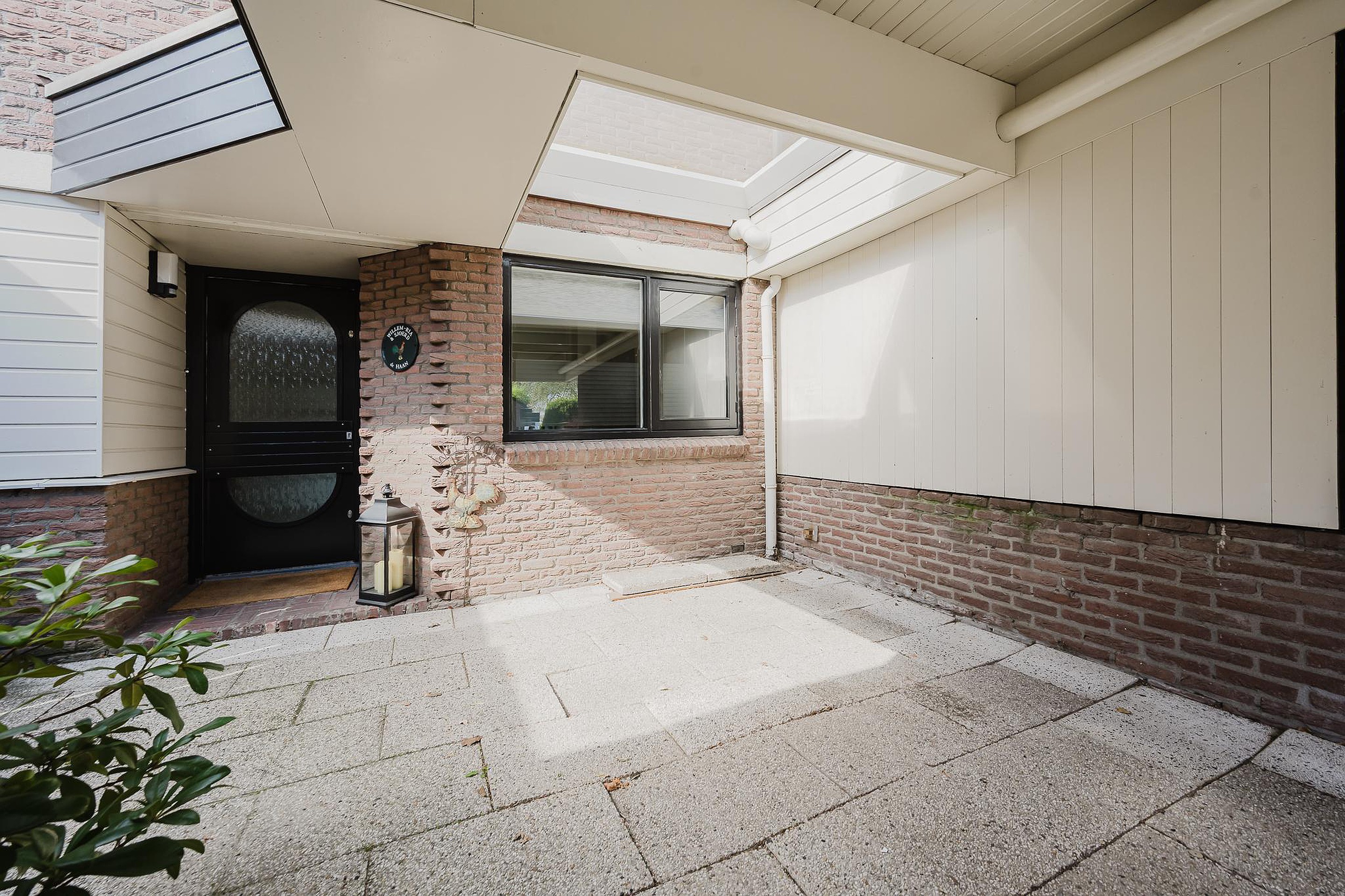 Via de carport bereik je de entree van de woning, waar zich in de voortuin ook direct een berging bevindt.
