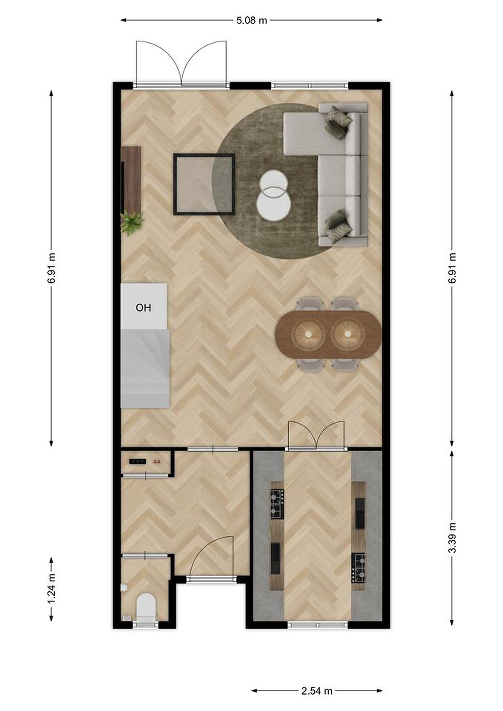 - Woonkamer: ca. 35 m2