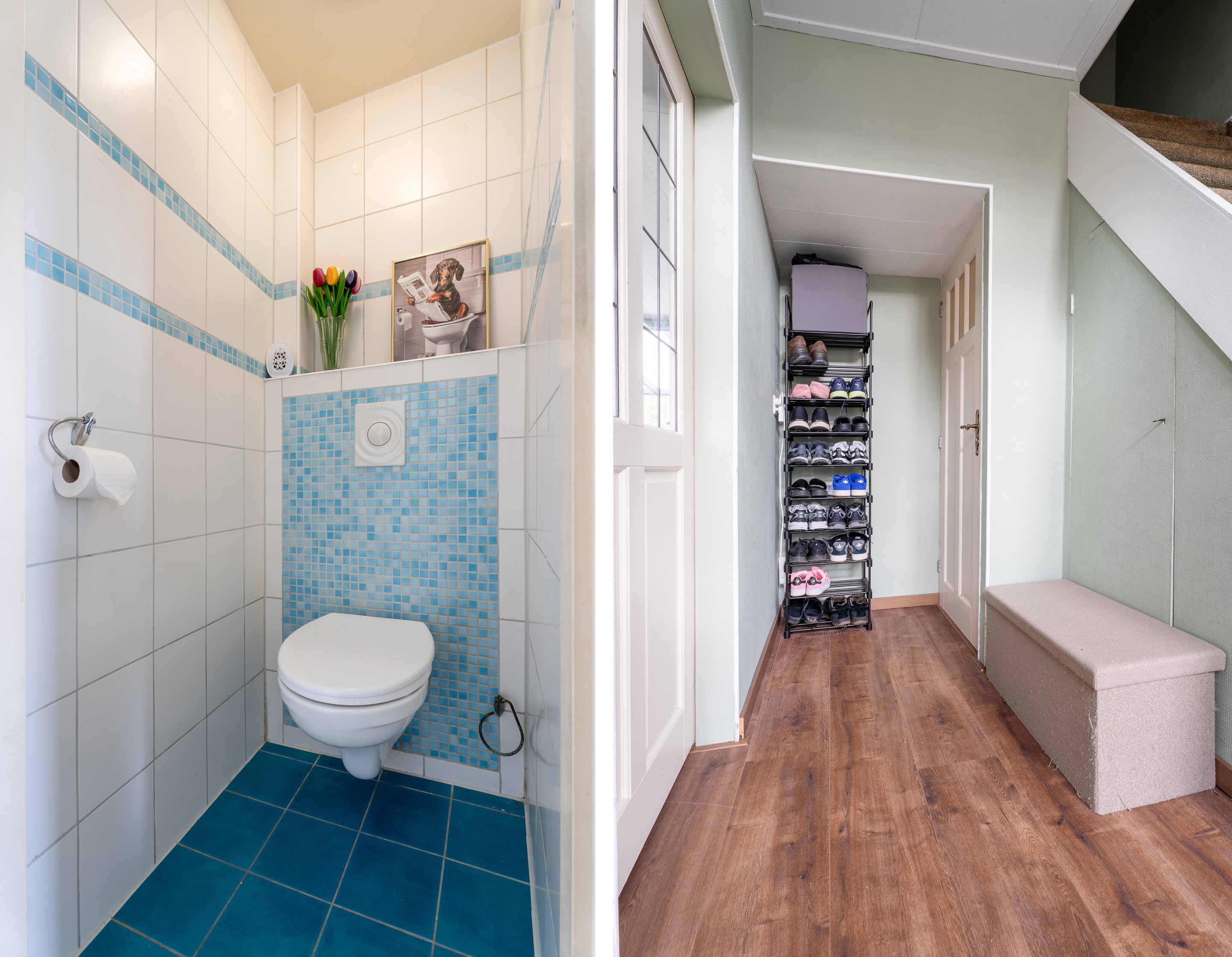 Via de voortuin bereik je de entree van de woning. In de hal bevinden zich de meterkast, het toilet, de trapopgang naar de eerste verdieping en de toegang tot de woonkamer.