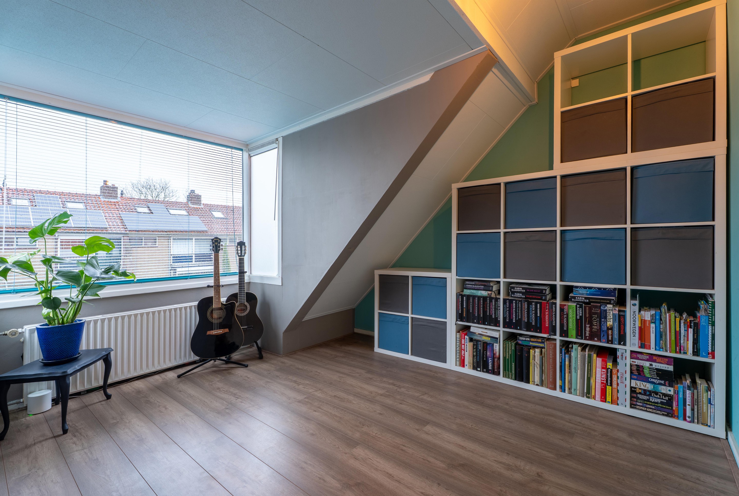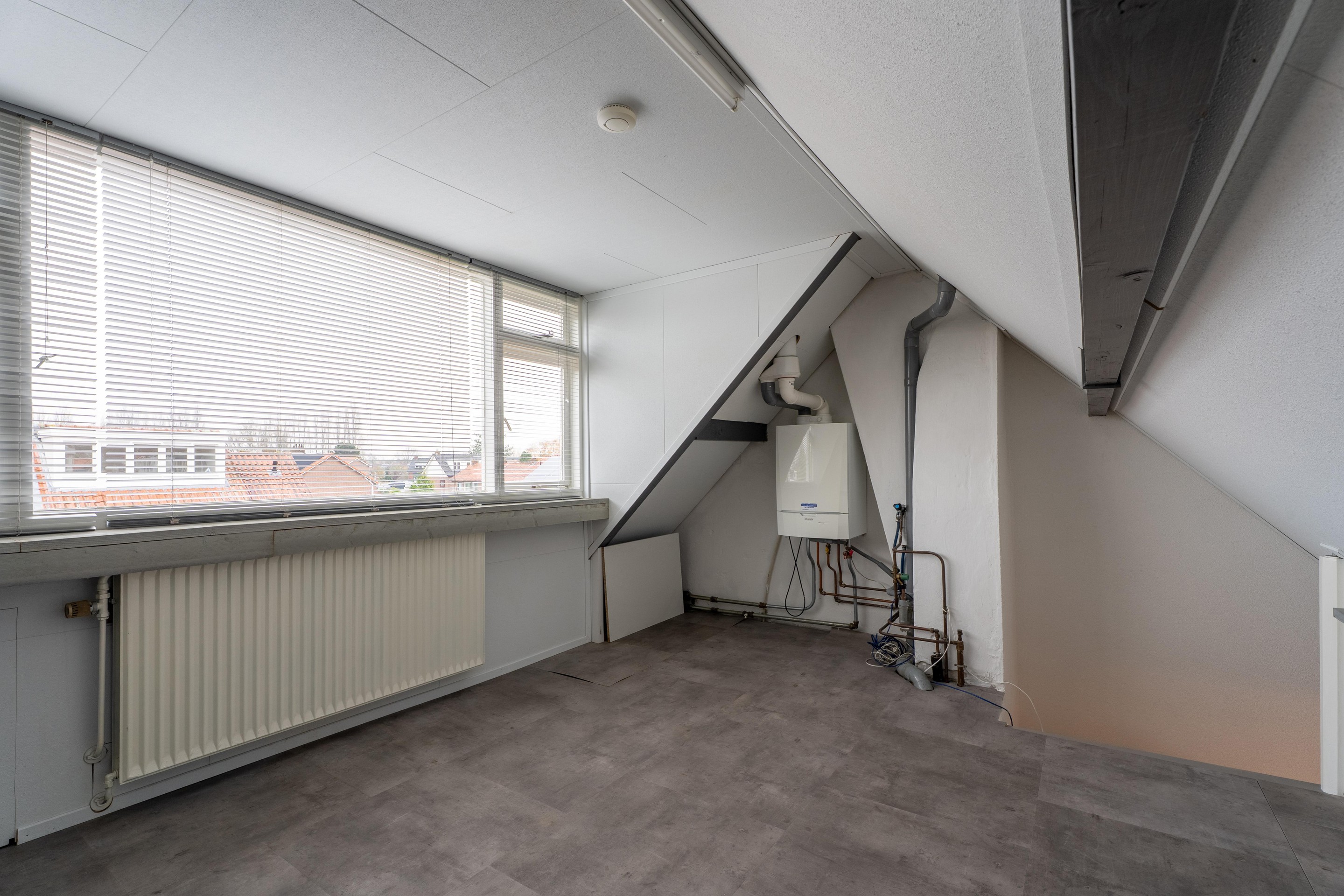 Via de trapopgang bereik je de tweede verdieping. De verdieping is een open ruimte en is voorzien van een dakkapel voor extra ruimte. Tevens bevinden zich hier de cv-installatie en bergschotten voor extra opbergruimte.