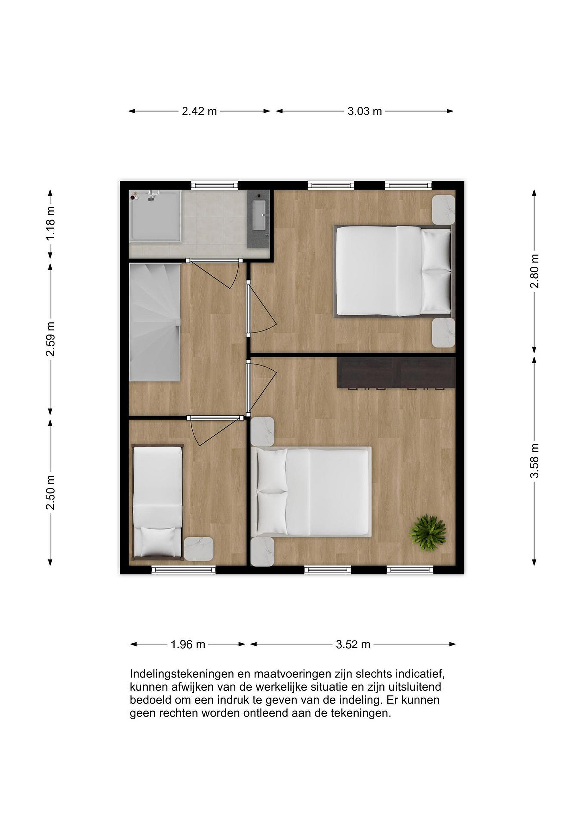 Slaapkamer 2 is circa 353 cm x 280 cm