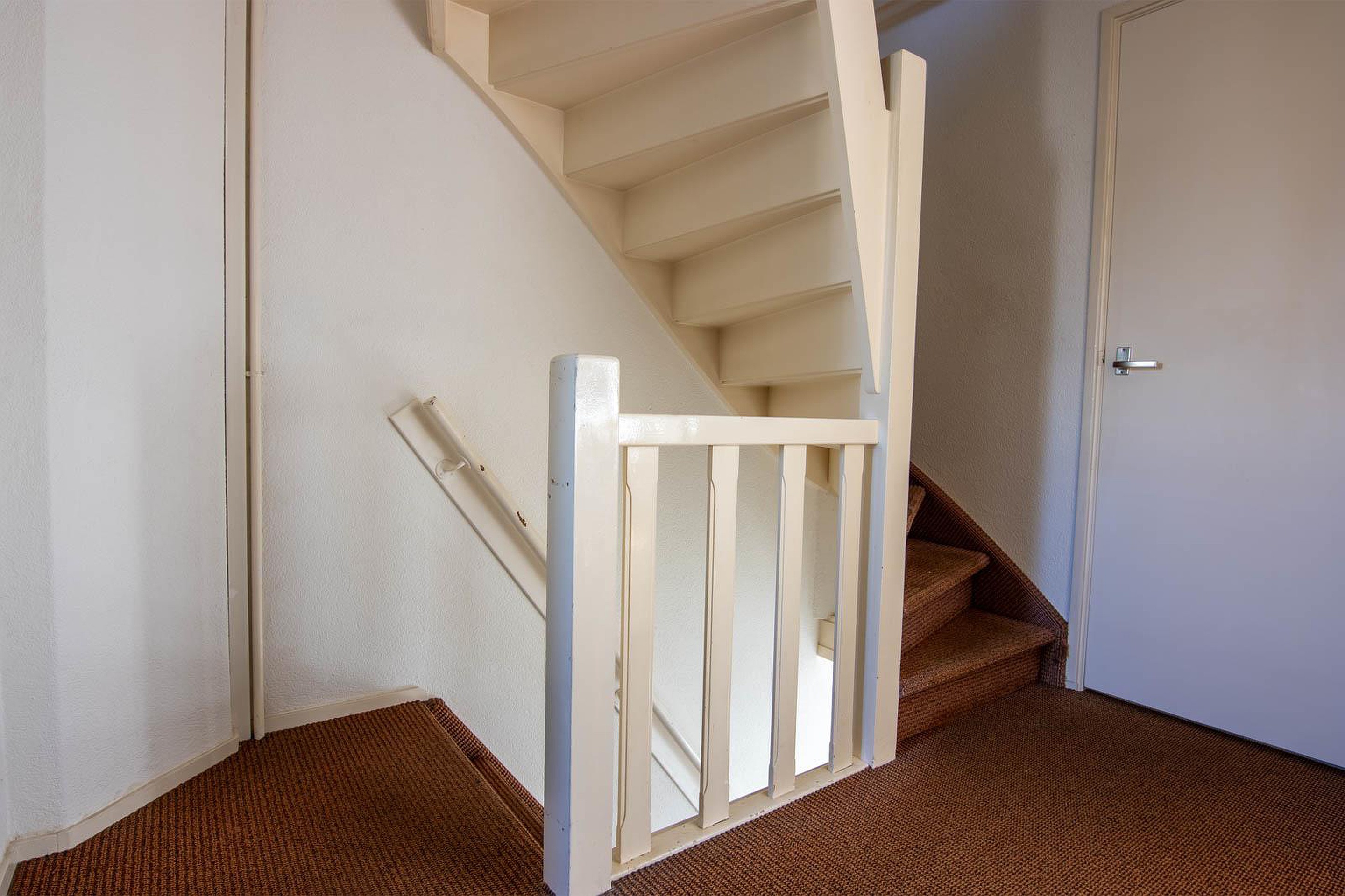 De woningentree biedt toegang tot de hal welke toegang biedt tot de trapkast, het toilet en de woonkamer.