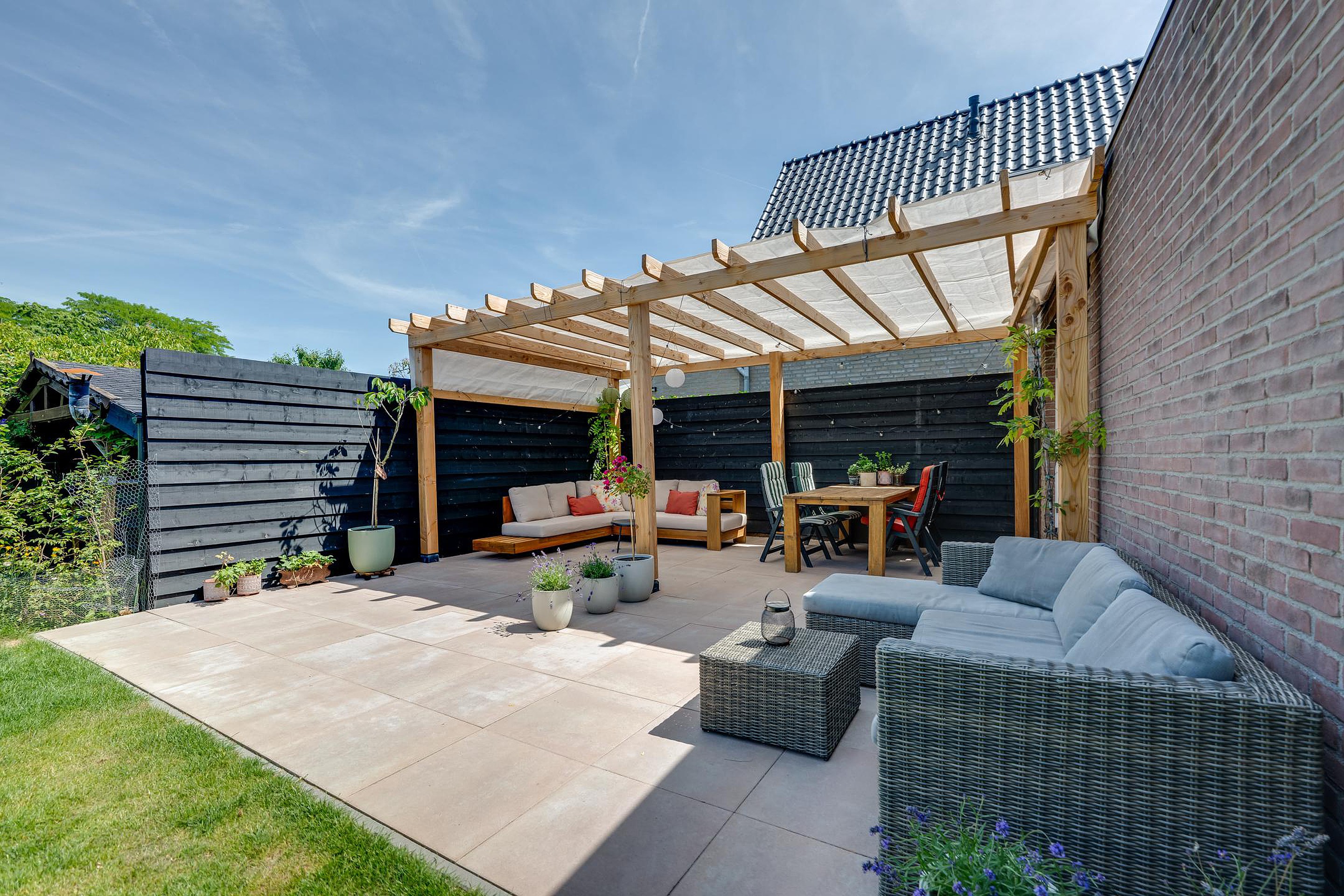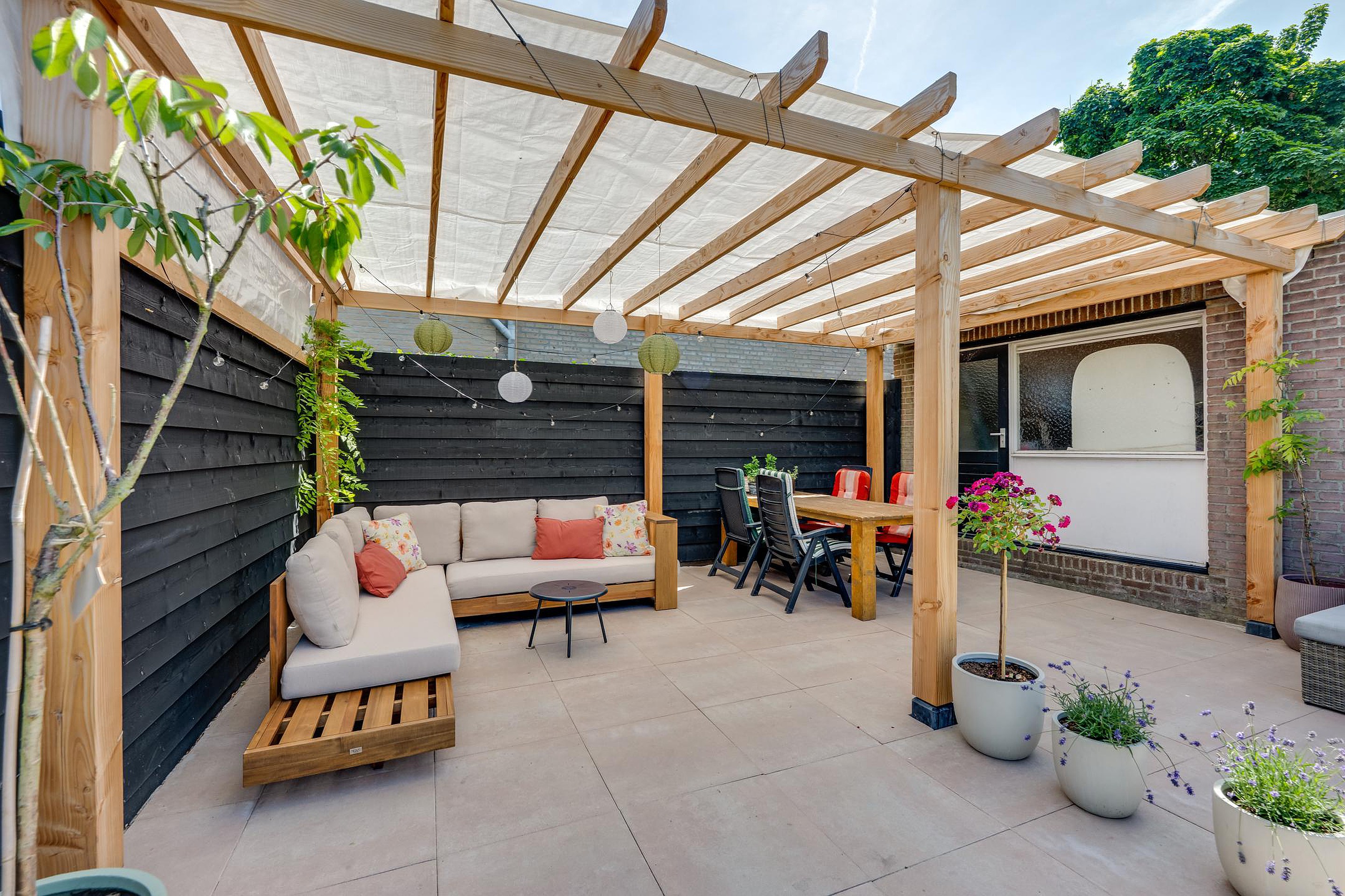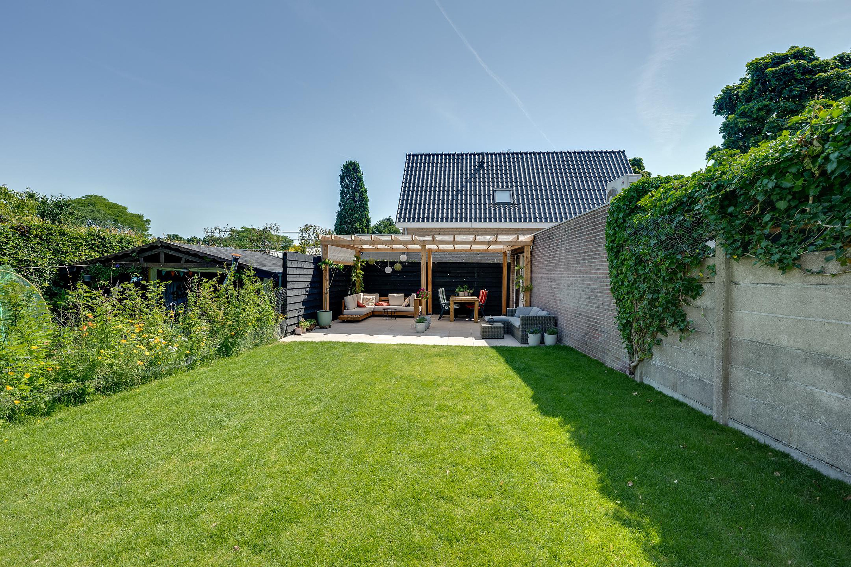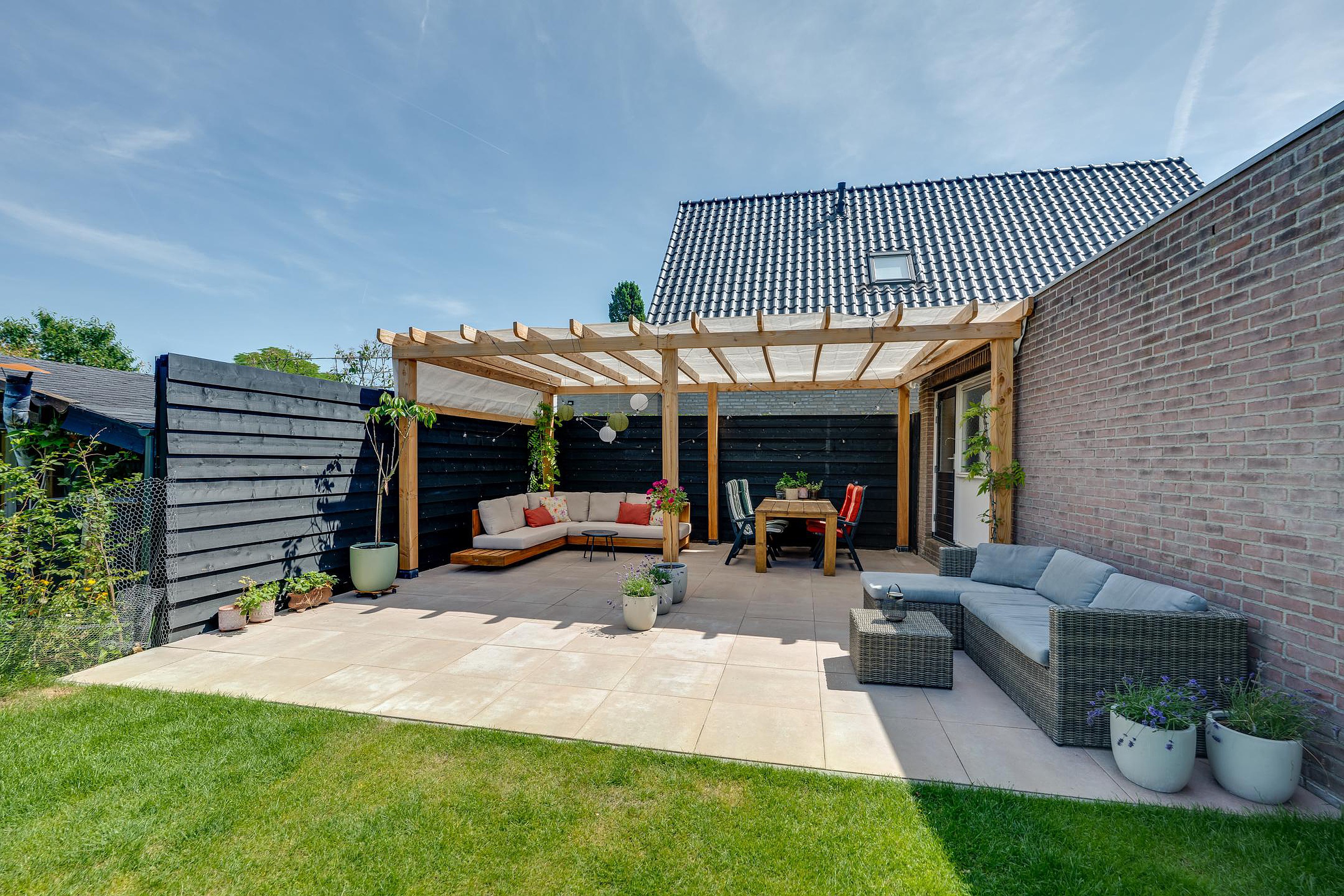 Tuin De achtertuin (ca. 32,5 m. diep en gemiddeld 7 m. breed) ligt op het zuidoosten en is in 2025 grotendeels opnieuw aangelegd. U vindt er naast de woning oude klinkers, terwijl u verder in de tuin een ruim terras met grote, moderne plavuizen vindt. Met het 90 m2 gazon, vaste beplanting en de houten pergola (6,36 m. x 3,60 m.) met eventueel spandoek een heerlijke plek. Heel praktisch zijn de berging (4,20 m. x 3,32 m.; v.v. elektra en vliering) en de garage aan de achterzijde van de tuin. Ook is de tuin recent v.v. elektrapunten. U kunt de tuin betreden via een zijpoort aan straatzijde of via de garage aan de achterzijde van deze gezellige tuin.