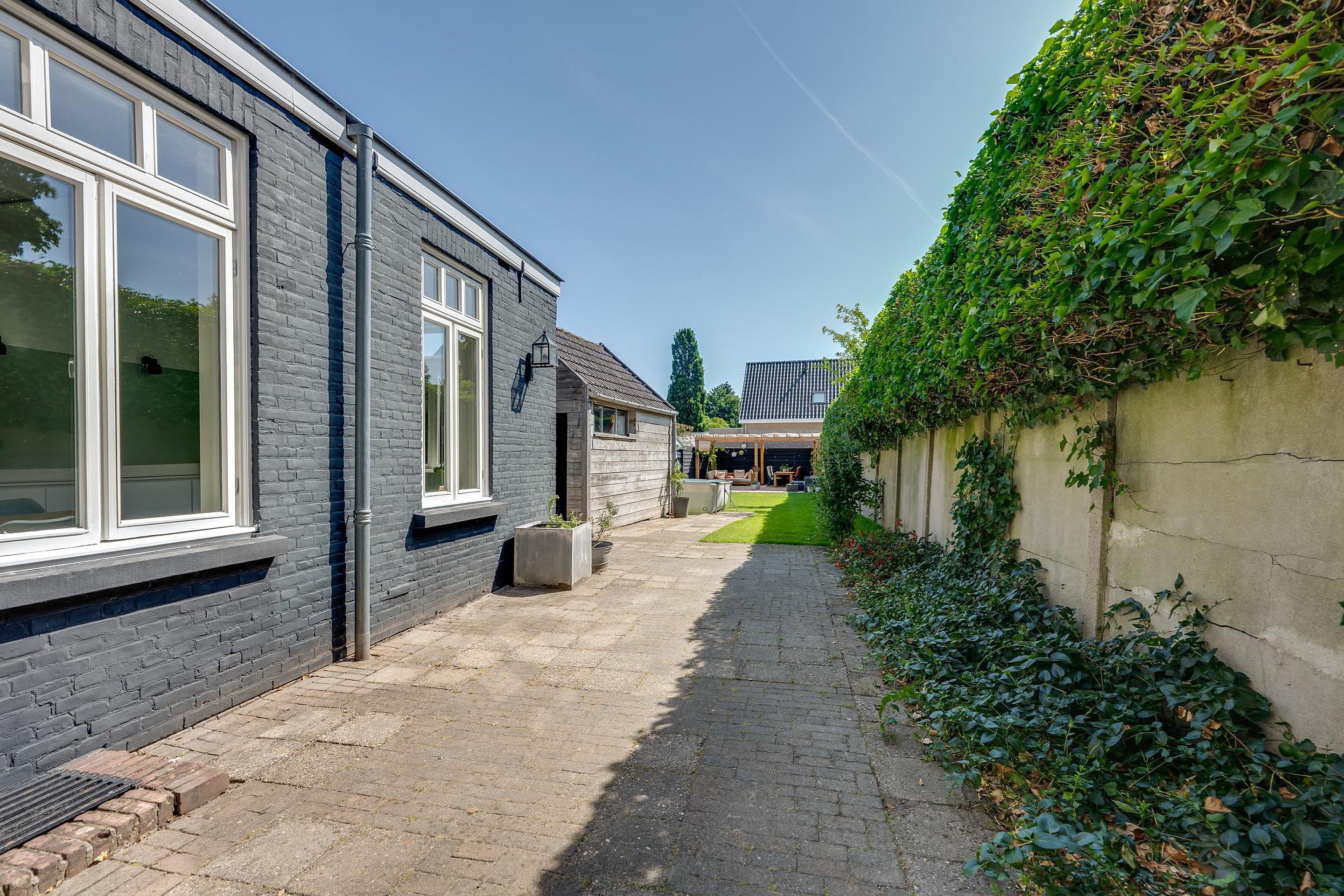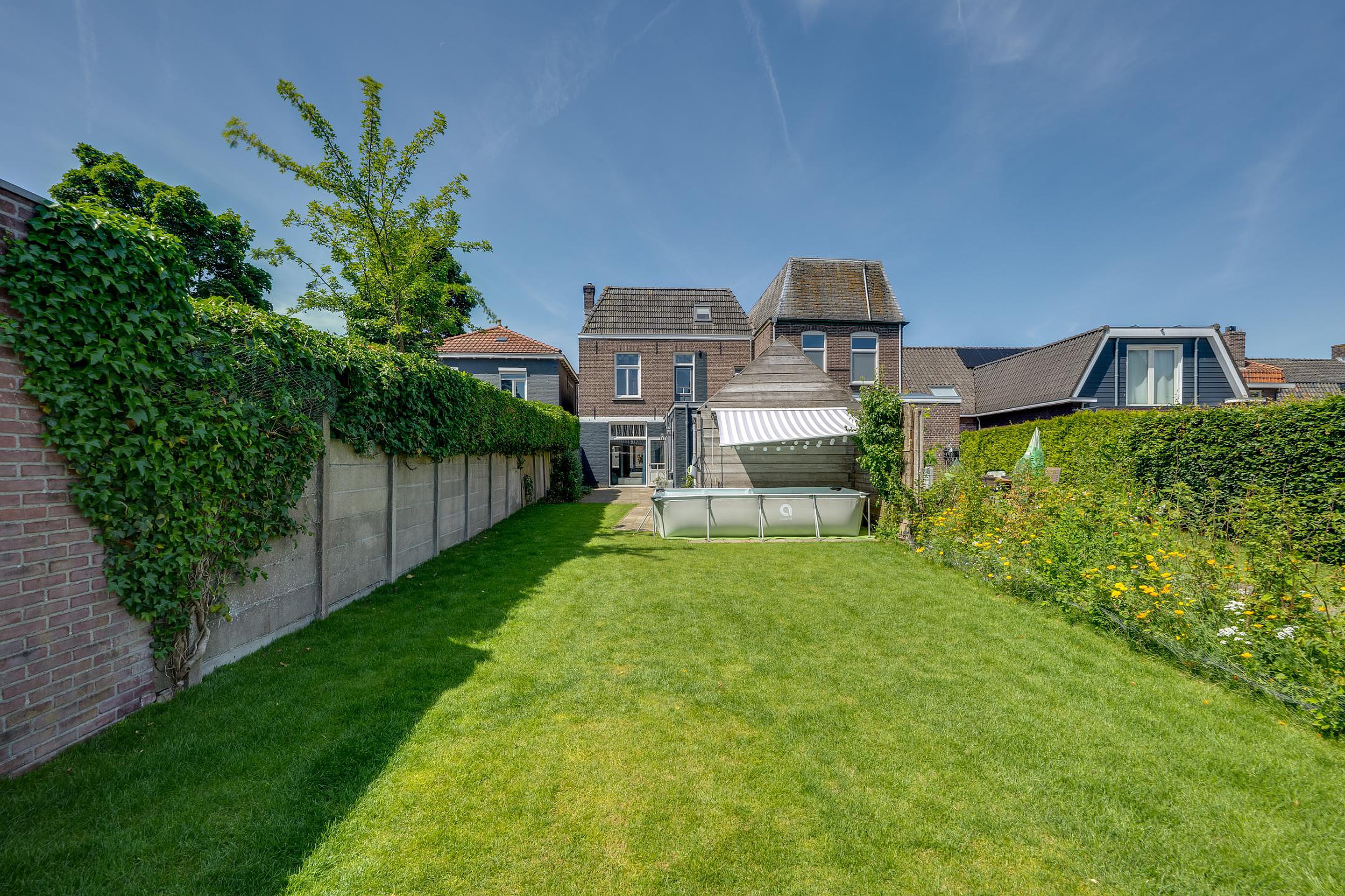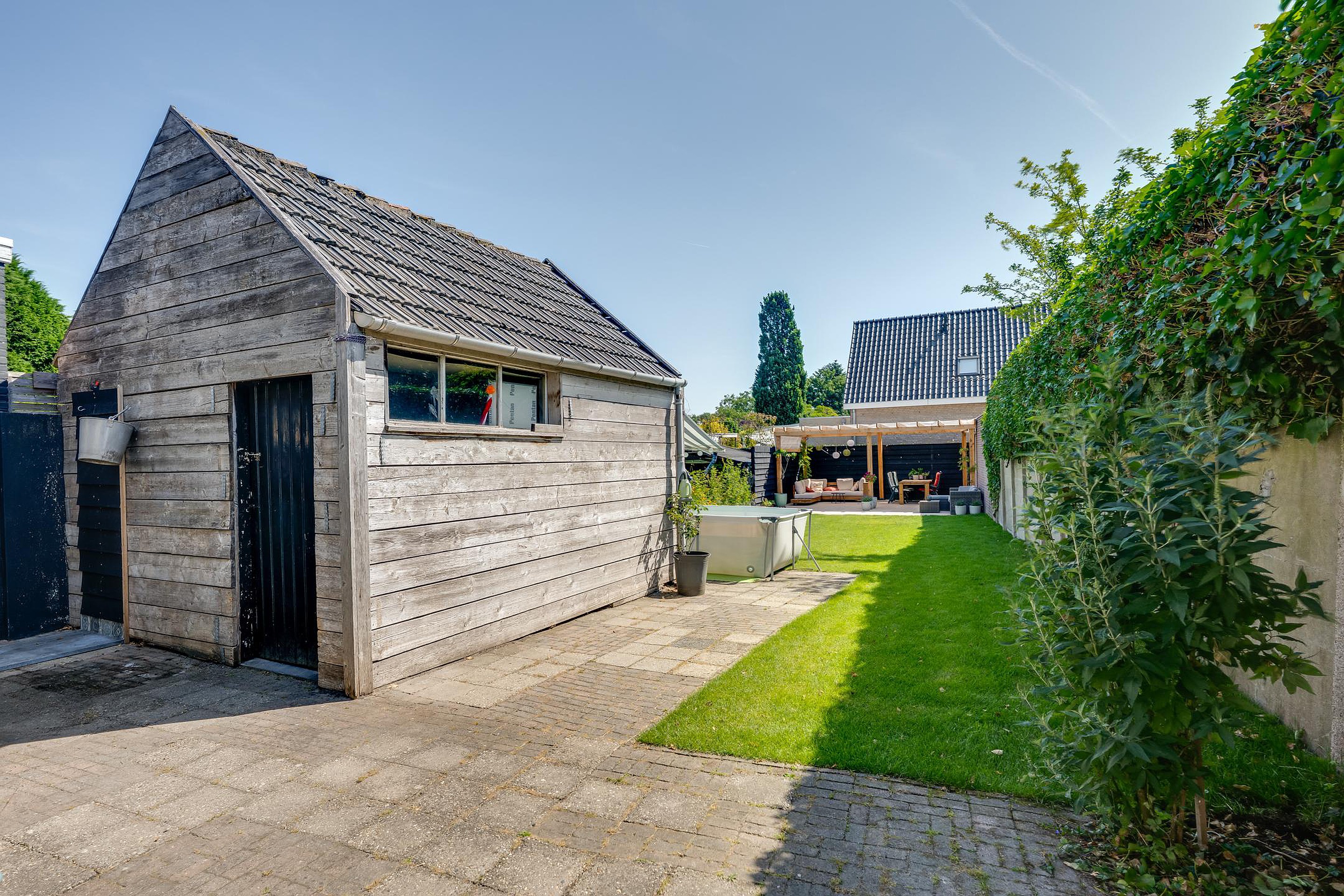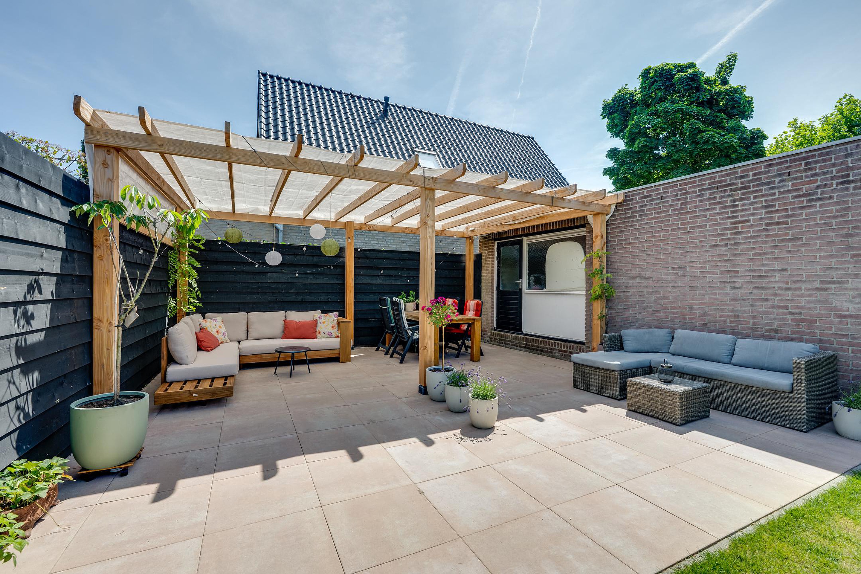 Tuin De achtertuin (ca. 32,5 m. diep en gemiddeld 7 m. breed) ligt op het zuidoosten en is in 2025 grotendeels opnieuw aangelegd. U vindt er naast de woning oude klinkers, terwijl u verder in de tuin een ruim terras met grote, moderne plavuizen vindt. Met het 90 m2 gazon, vaste beplanting en de houten pergola (6,36 m. x 3,60 m.) met eventueel spandoek een heerlijke plek. Heel praktisch zijn de berging (4,20 m. x 3,32 m.; v.v. elektra en vliering) en de garage aan de achterzijde van de tuin. Ook is de tuin recent v.v. elektrapunten. U kunt de tuin betreden via een zijpoort aan straatzijde of via de garage aan de achterzijde van deze gezellige tuin.
