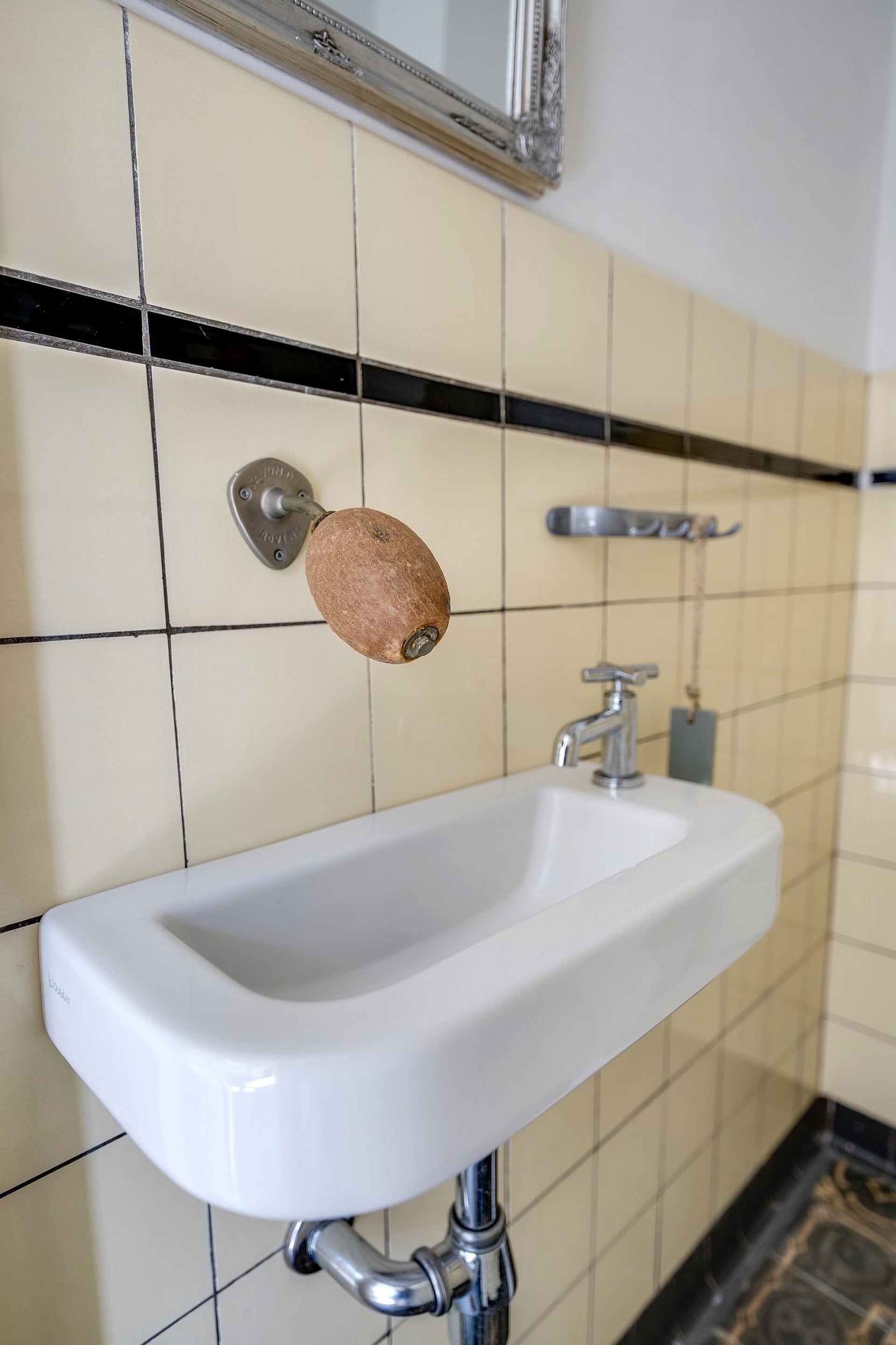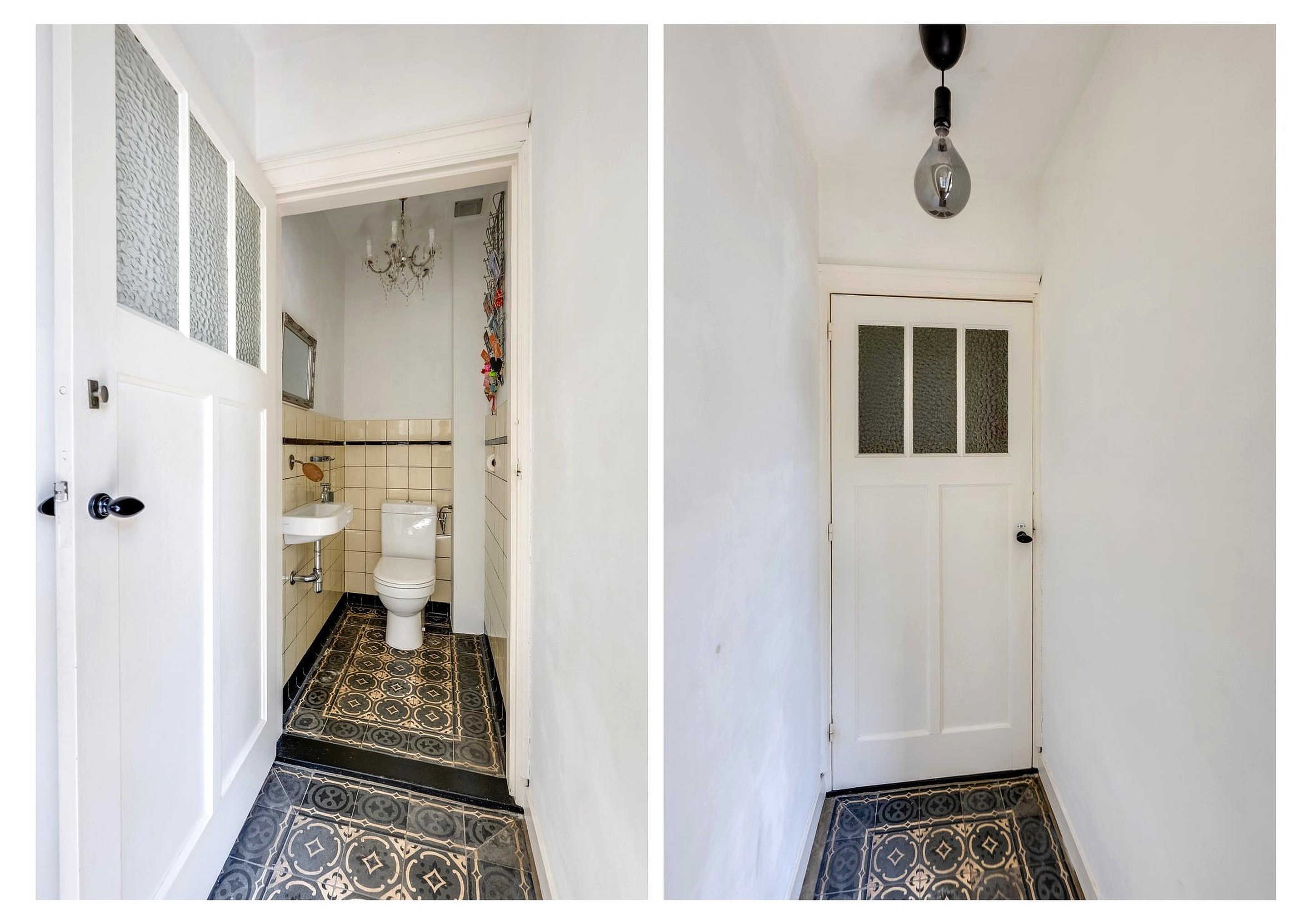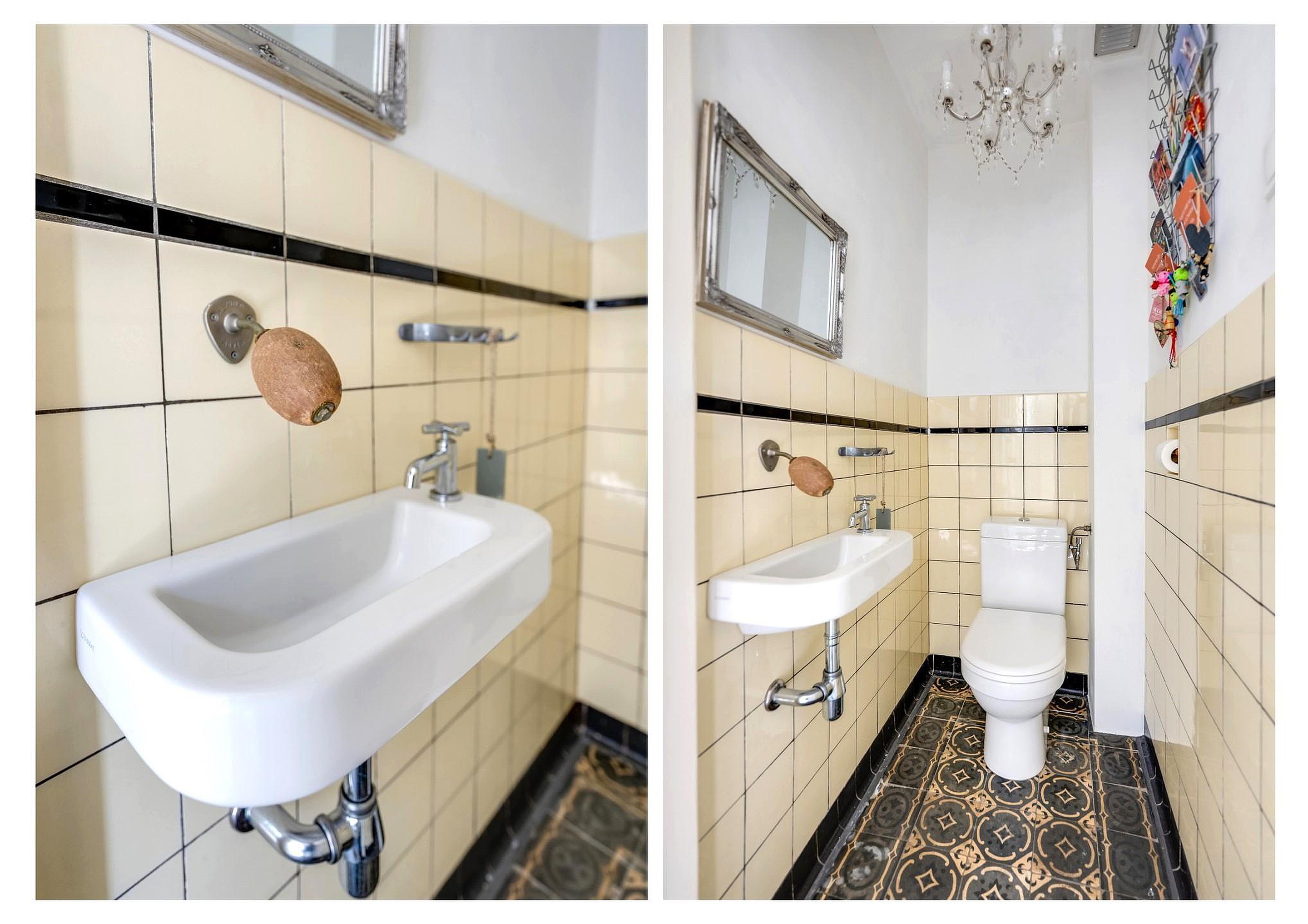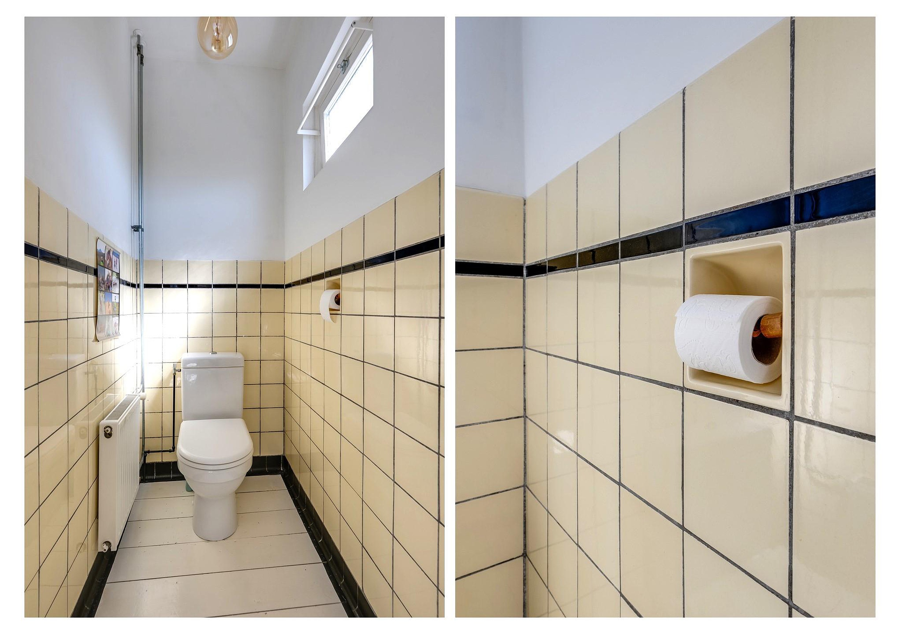 Het toilet vindt u los van de badkamer. De ruimte is deels betegeld en v.v. glad stucwerk. Er zijn originele wandtegels, inclusief toiletrolhouder.