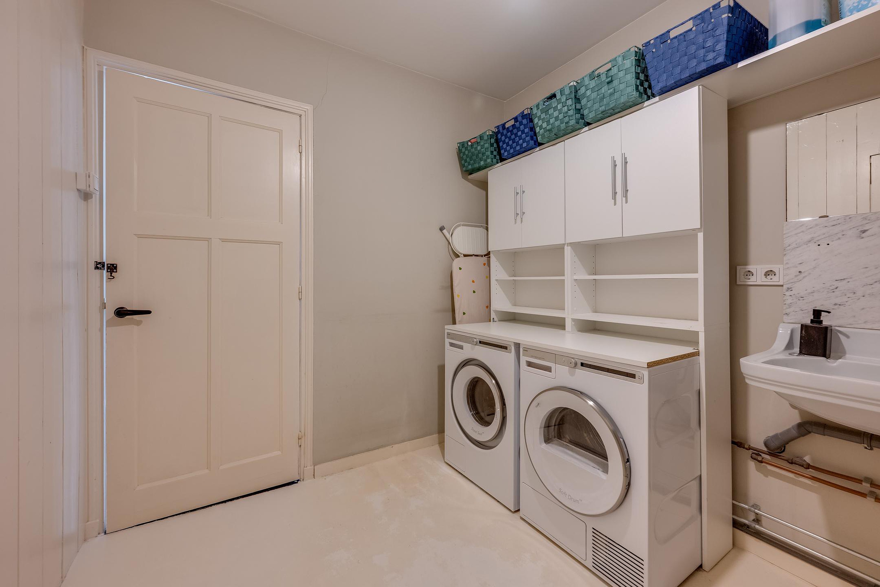 In een aparte kamer (2,78 m. x 2,44 m.) vindt u de wasaansluitingen en een praktische wastafel. Ook hangt hier de cv-ketel (Nefit uit 2005) en staat er een groot boilervat van 120 liter. Verder vindt u hier de omvormer van de zonnepanelen, die helpt om zonne-energie om te zetten in stroom voor het huis. In de vaste kast heeft u ook extra bergruimte.