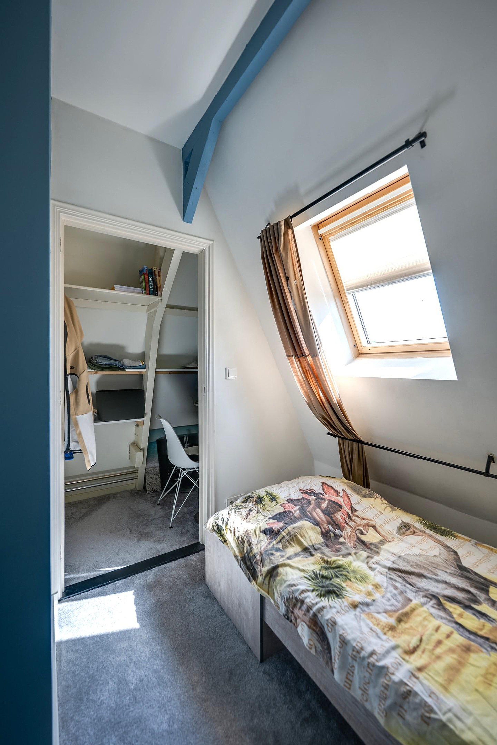 Deze kamer ligt linksachter (2,44 m. x 2,90/1,90 m.) en heeft een inbouwkast.