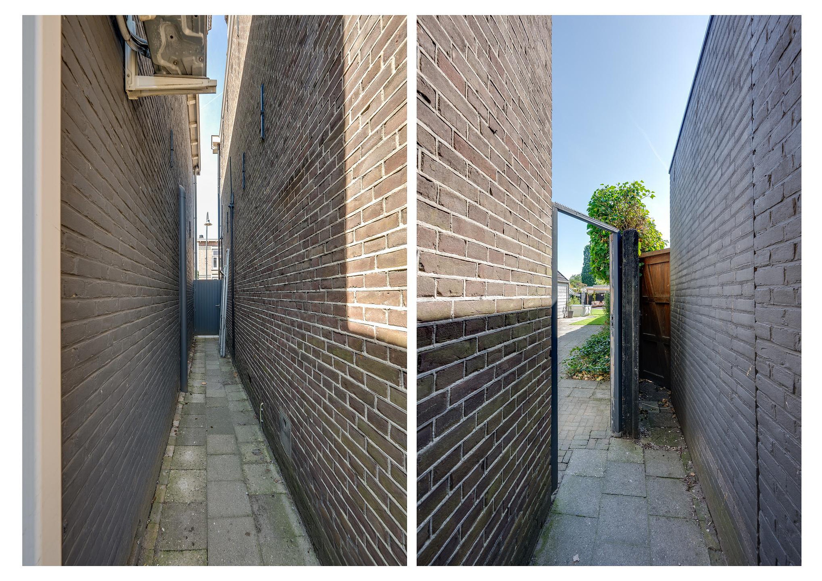 - brandgang rechts van de woning heeft (en geeft) recht van overpad