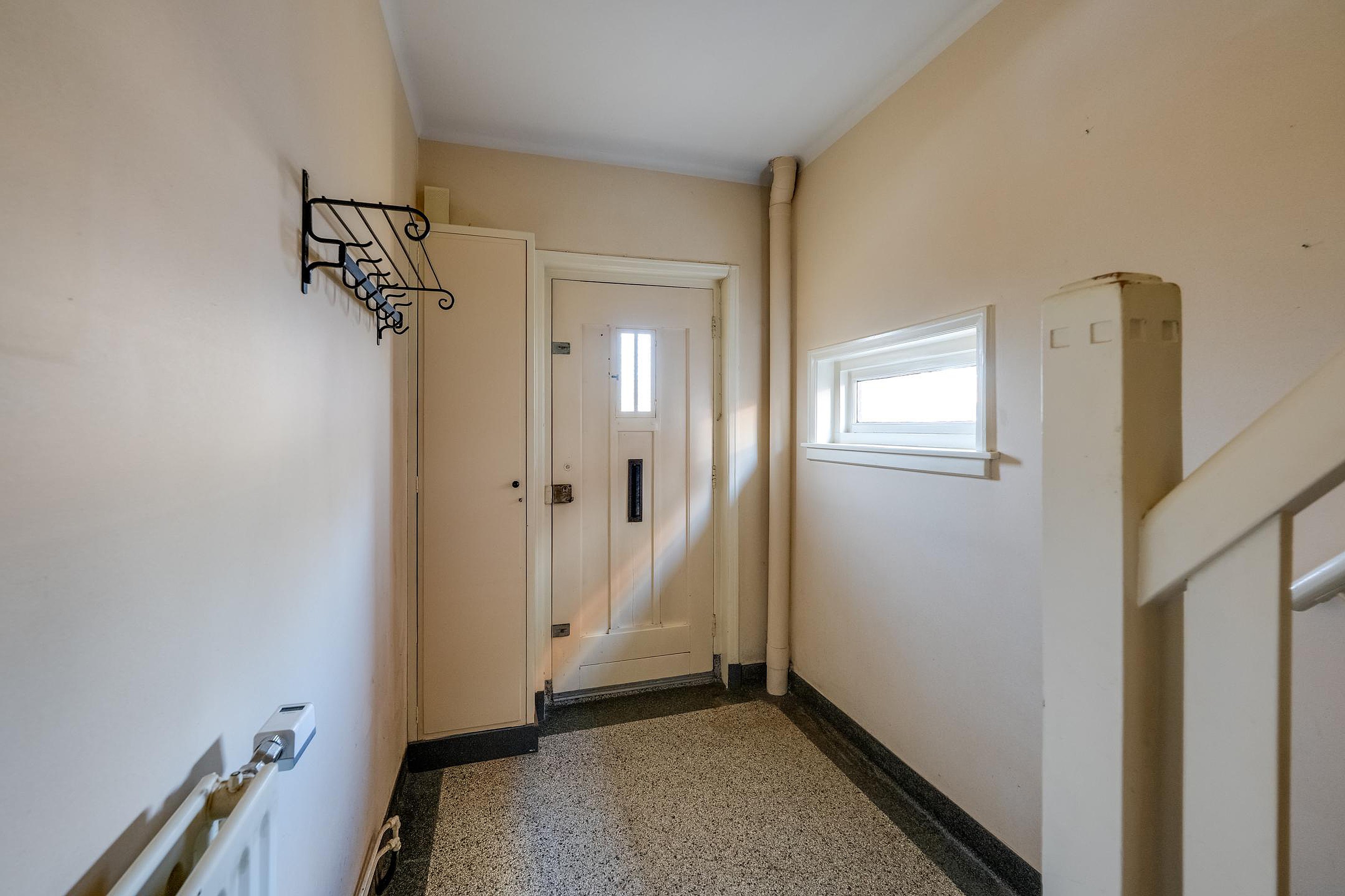 Begane grond De entree (5 m. x 1,88 m.) met originele voordeur voorzien van een te openen raampje brengt u meteen in de juiste sfeer van de woning. Er ligt een originele granitovloer met sierrand. De klassieke jaren ‘30 trap brengt u naar de eerste verdieping. Verder vindt u hier de meterkast (7 groepen), de garderobe en de loopdeuren naar de woonkamer, de keuken en de ruime kelder.