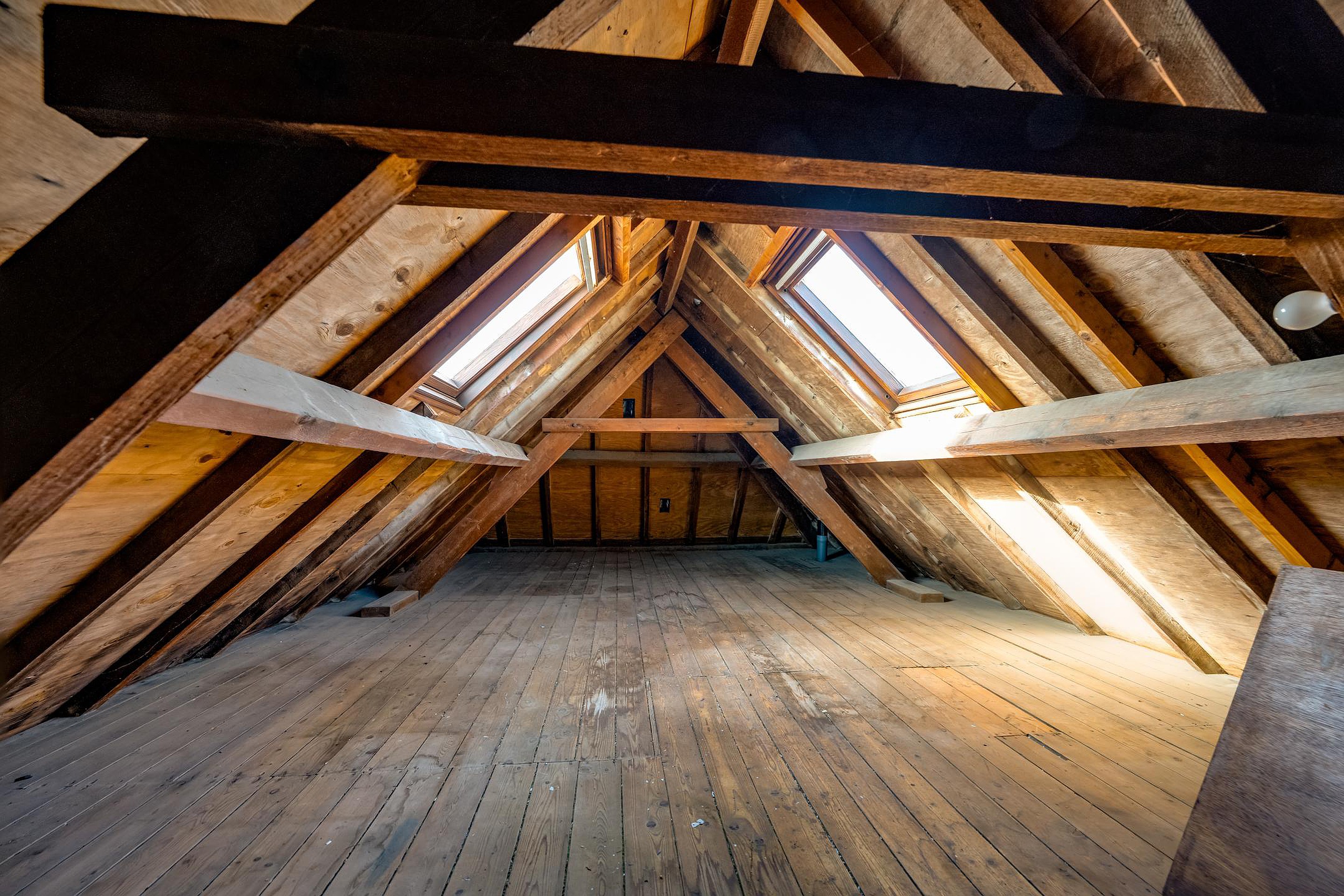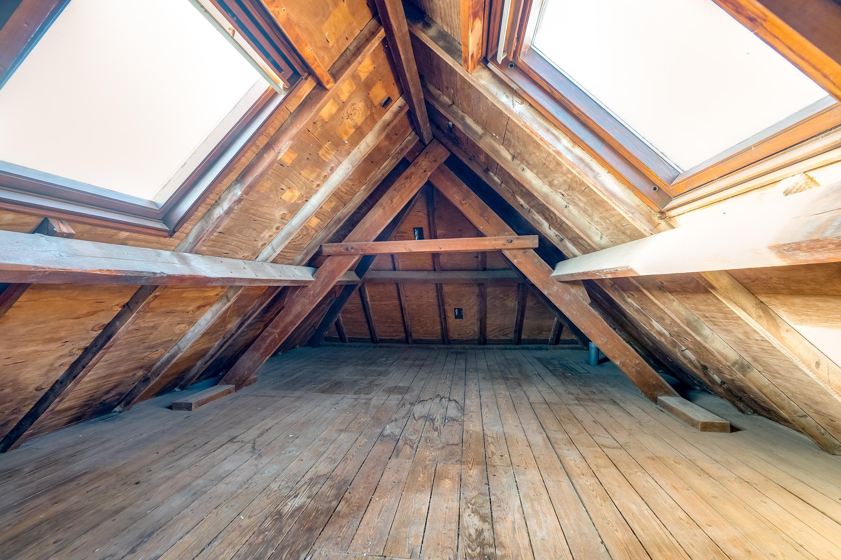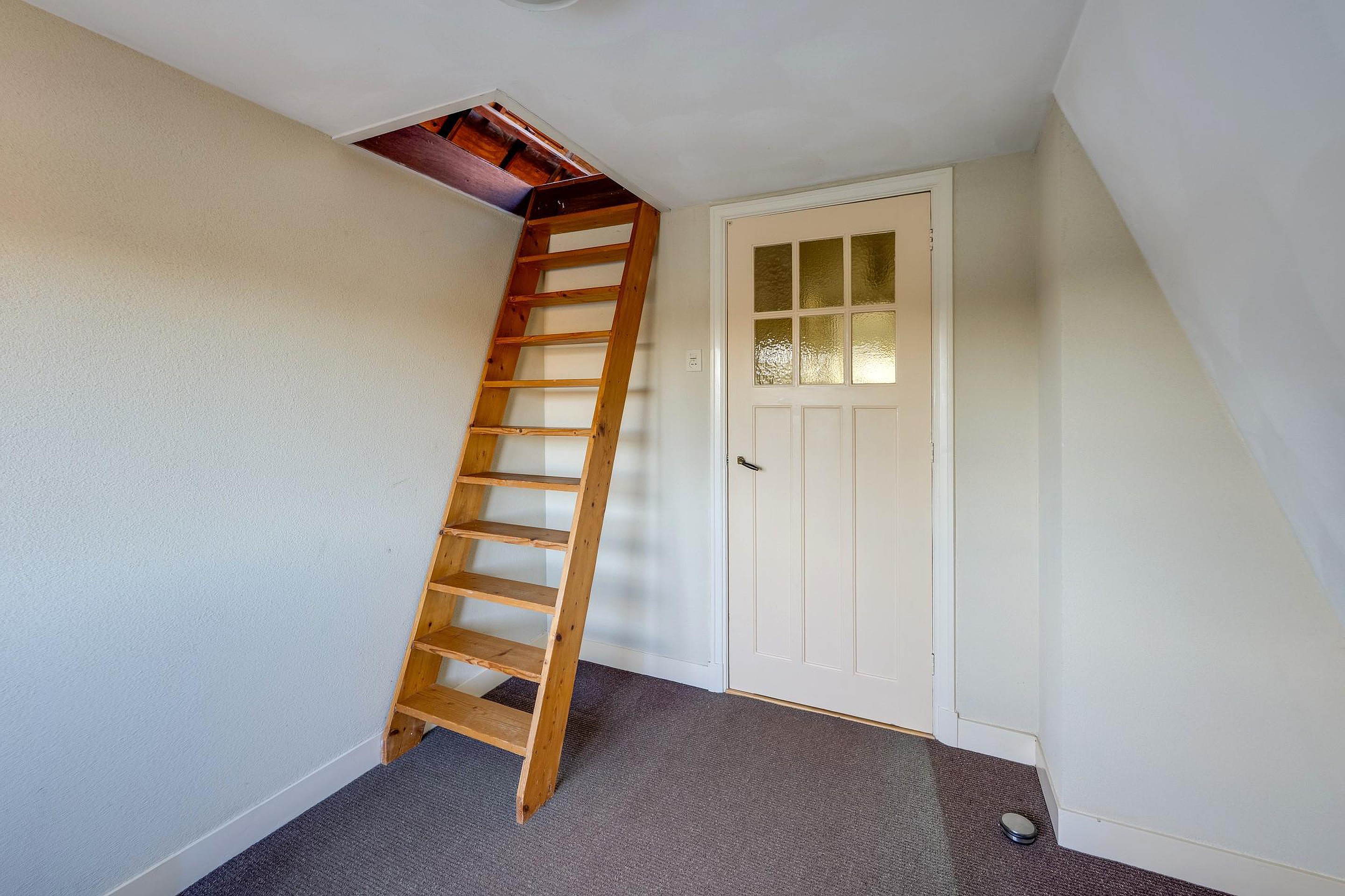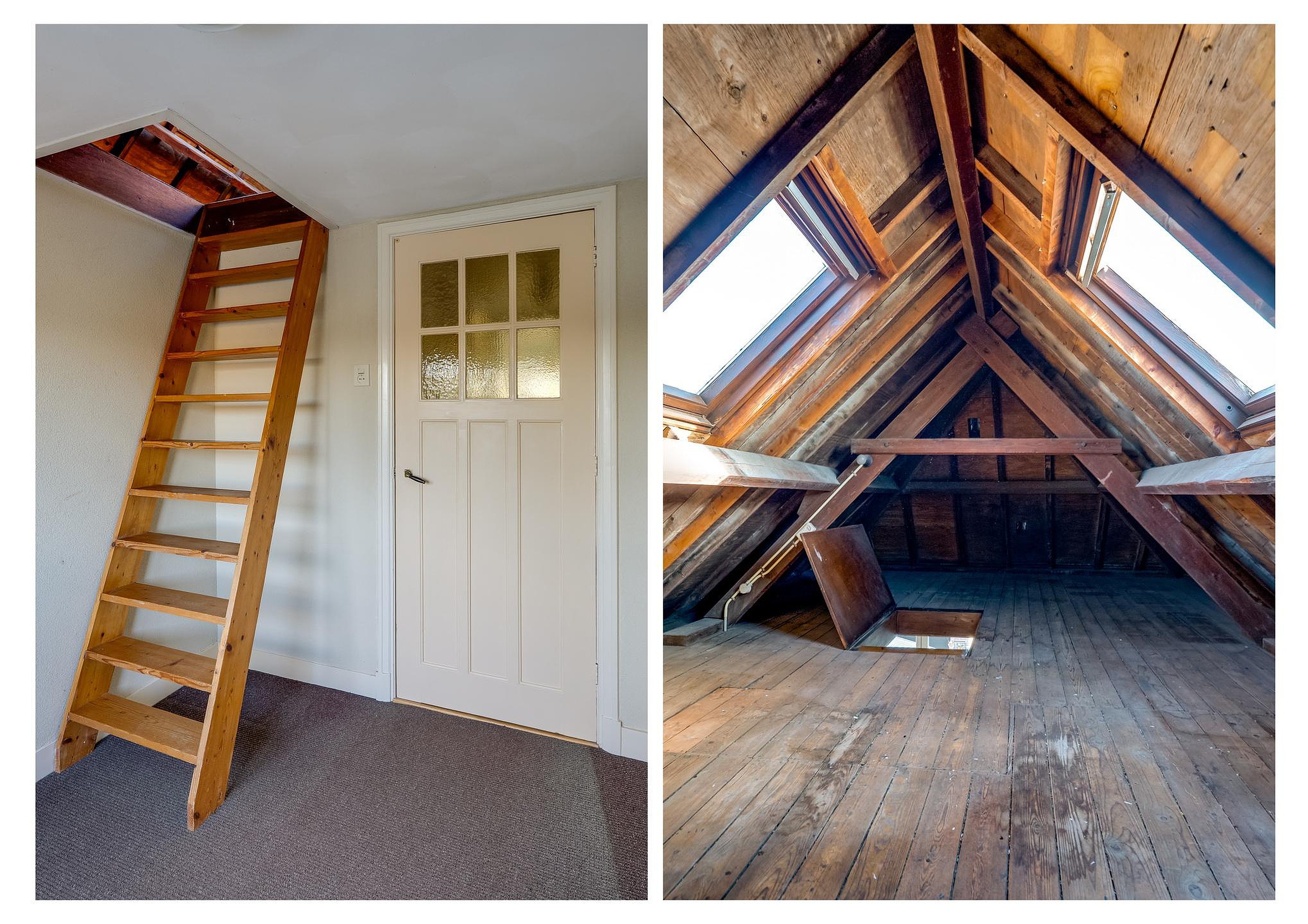 Tweede verdieping De zolder (6,3 m2 is 1,50 m. of hoger) is via een vaste trap te bereiken vanuit de derde slaapkamer. De vloer tussen de eerste verdieping en de zolder is geïsoleerd. Het dak van de zolder is van binnenuit eenvoudig te isoleren. Er zijn 2 Velux dakramen v.v. dubbel glas.