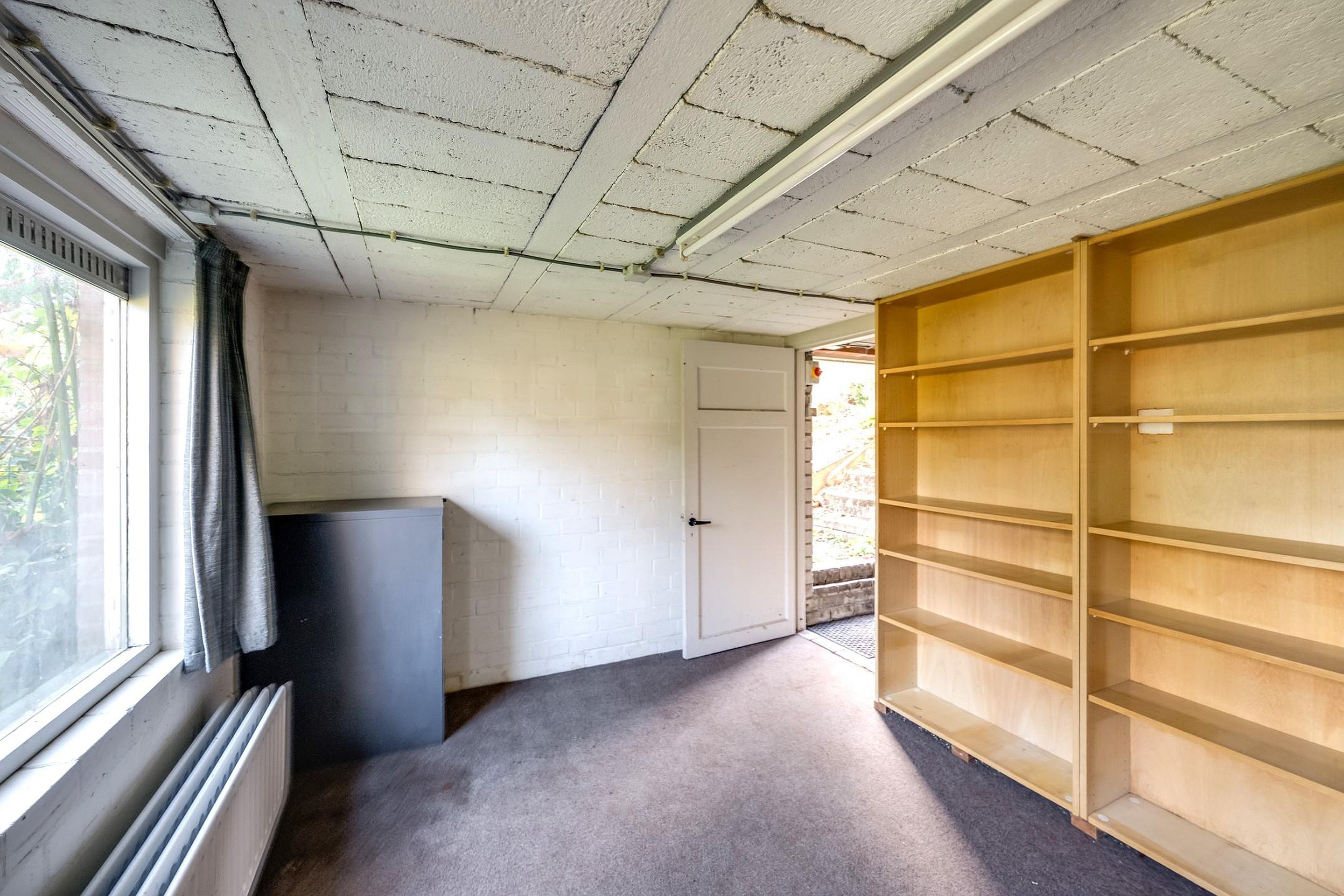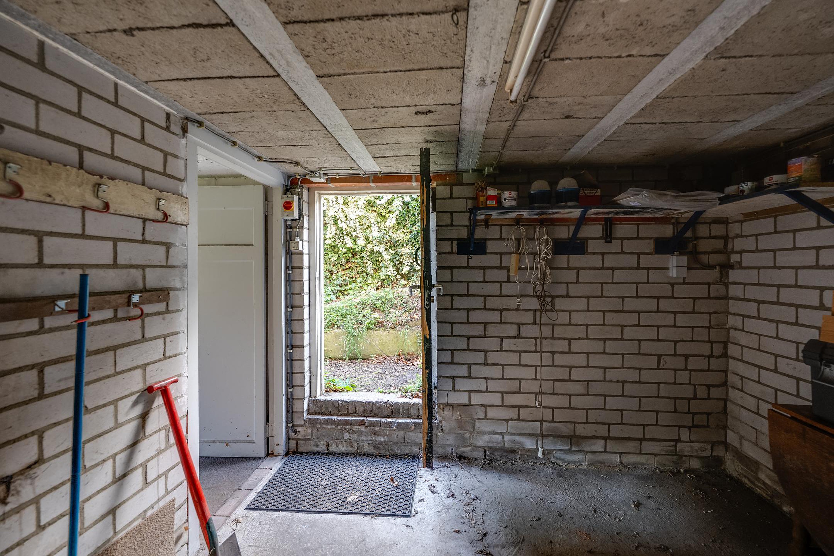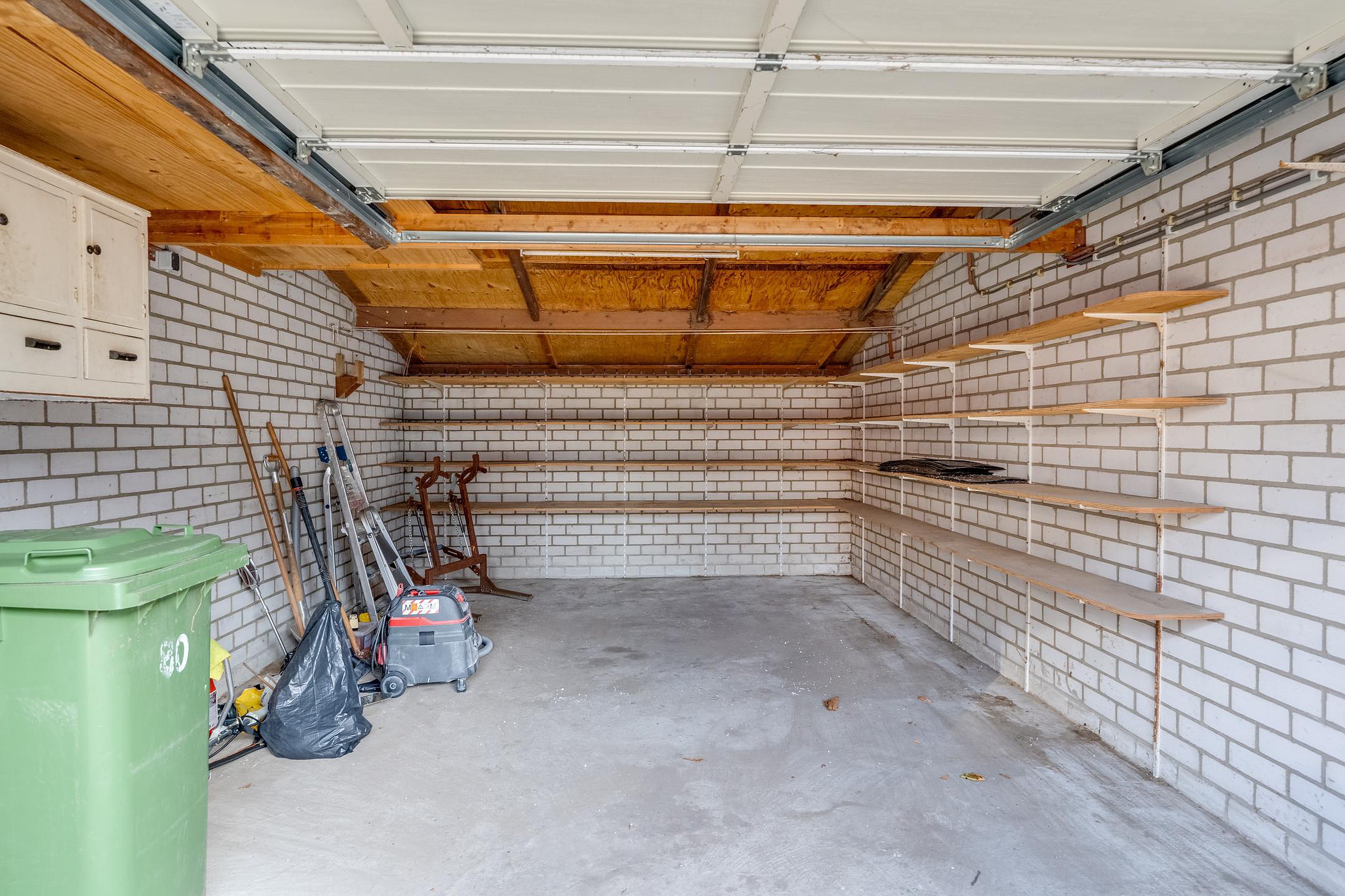 Onder de garage, via een loopdeur aan de rechterzijde te bereiken, vindt u toegang tot de bergruimtes. De voorste (4 m. x 2,97 m.) wordt momenteel gebruikt als klusruimte en de achterste (4 m. x 2,93 m.) heeft twee houten kozijnen v.v. dubbel glas en er hangt een radiator. Beiden ruimtes zijn v.v. elektra.