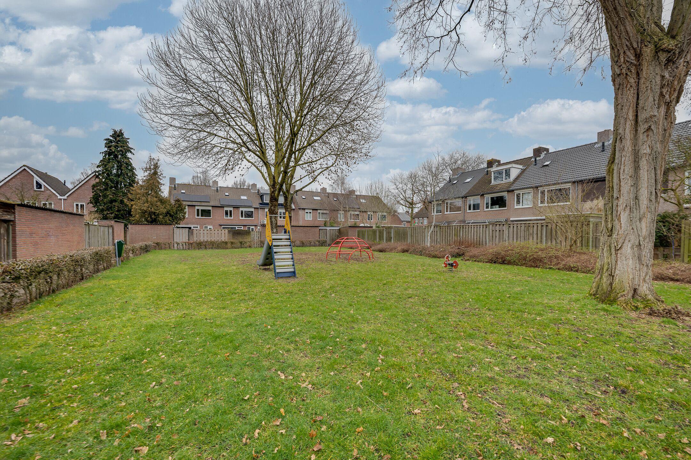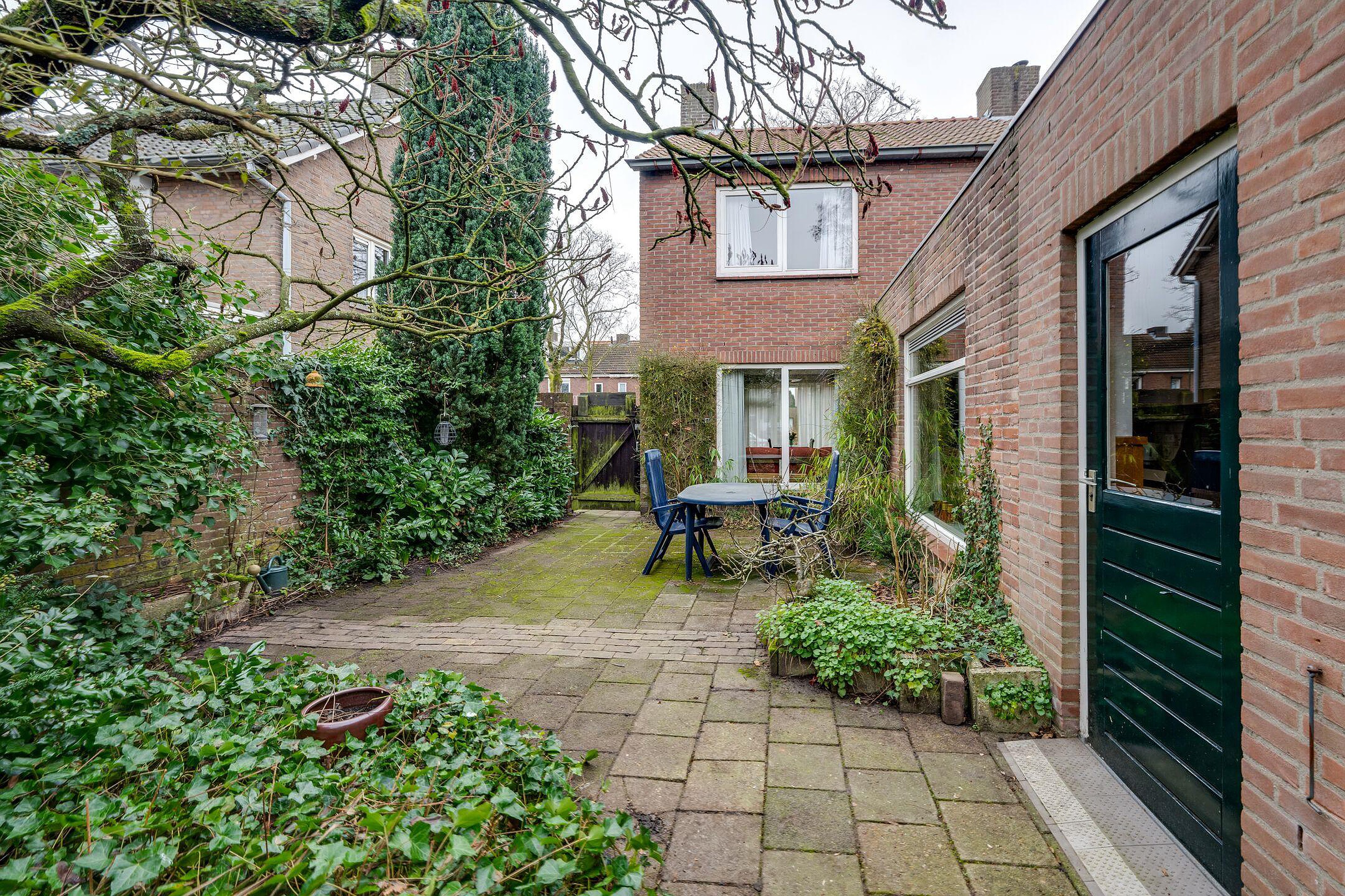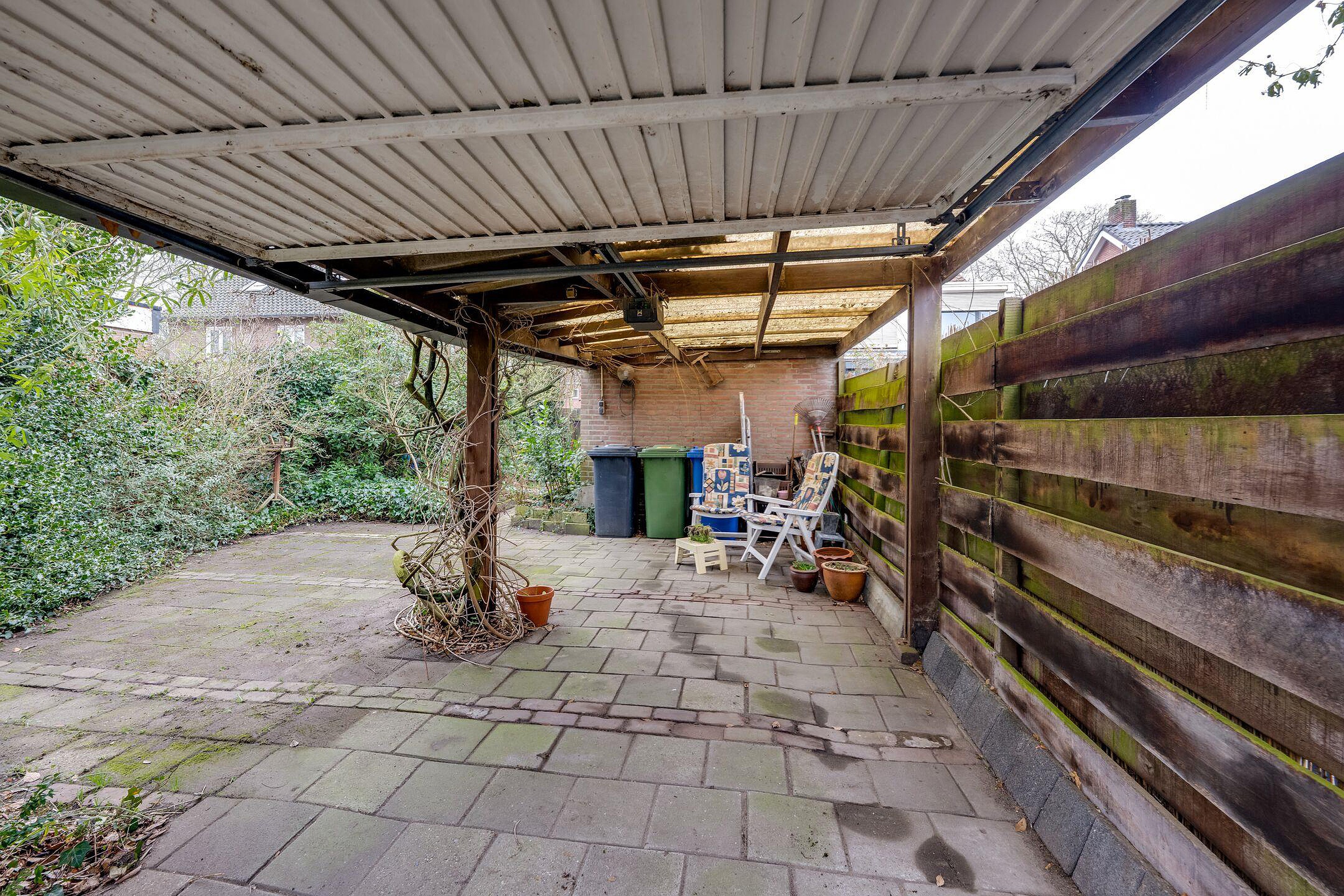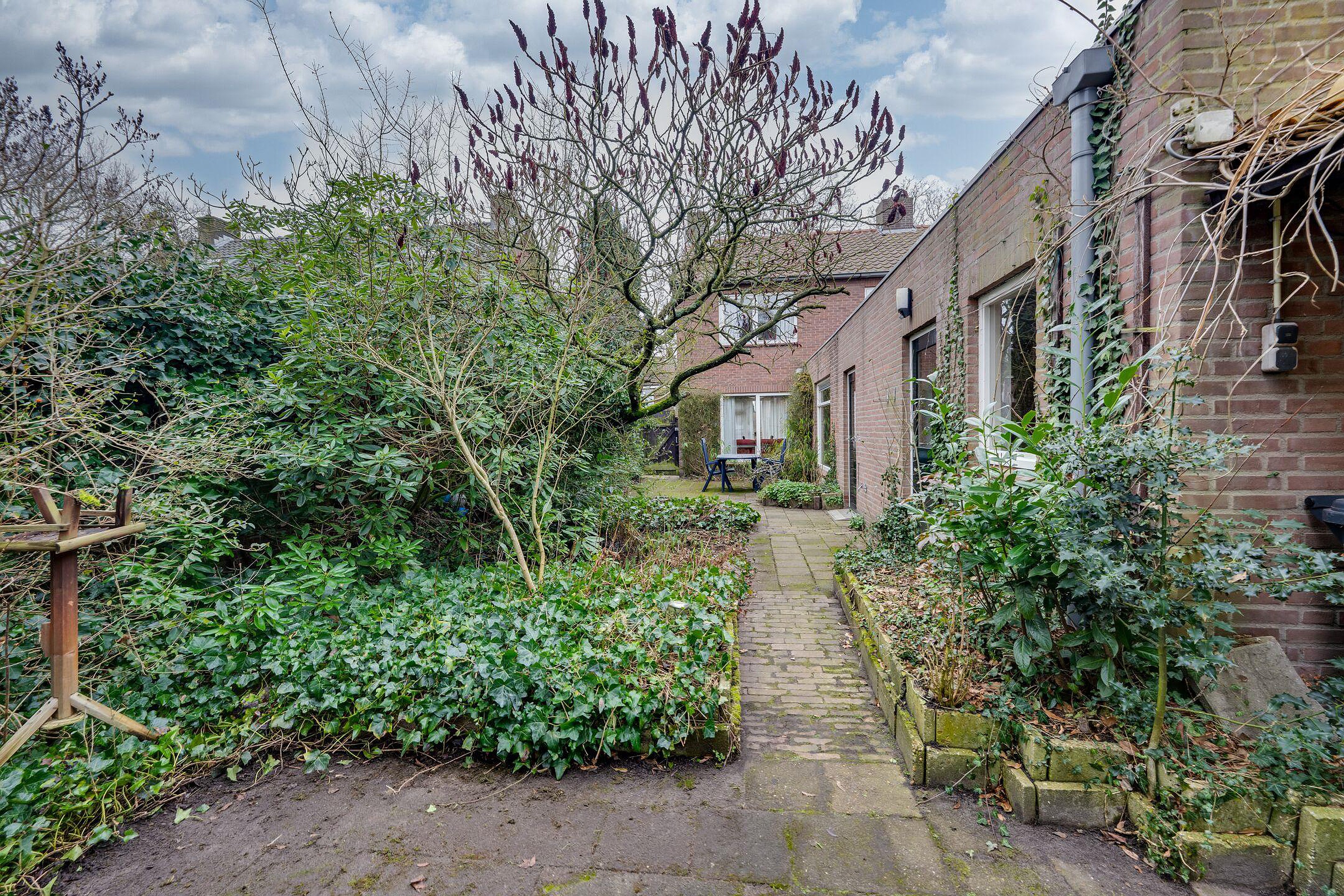 Tuin De diepe achtertuin (18,50 m. x 7,90/5,10 m.) is v.v. bestrating ,diverse bomen en vaste beplanting. Aan de straatzijde vindt u een looppoort en aan de achterzijde van de tuin is een carport met een stalen kanteldeur. Voor de kanteldeur heeft u een eigen parkeerplaats.