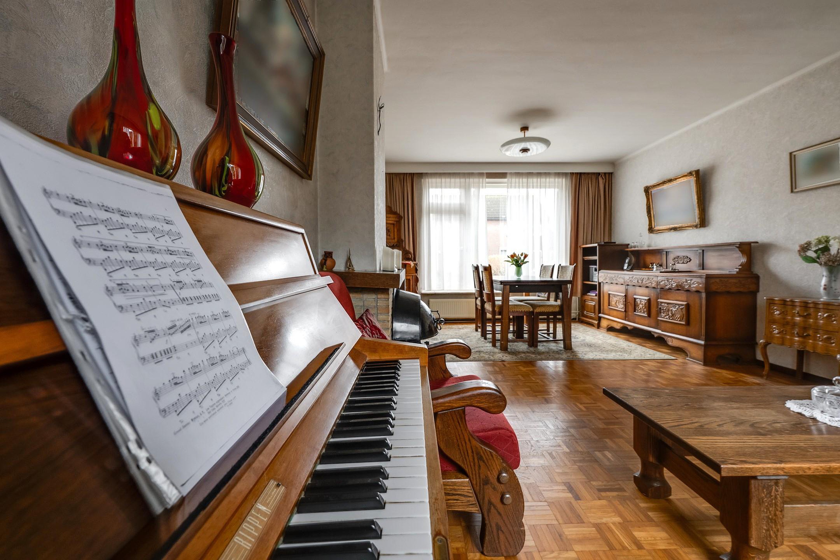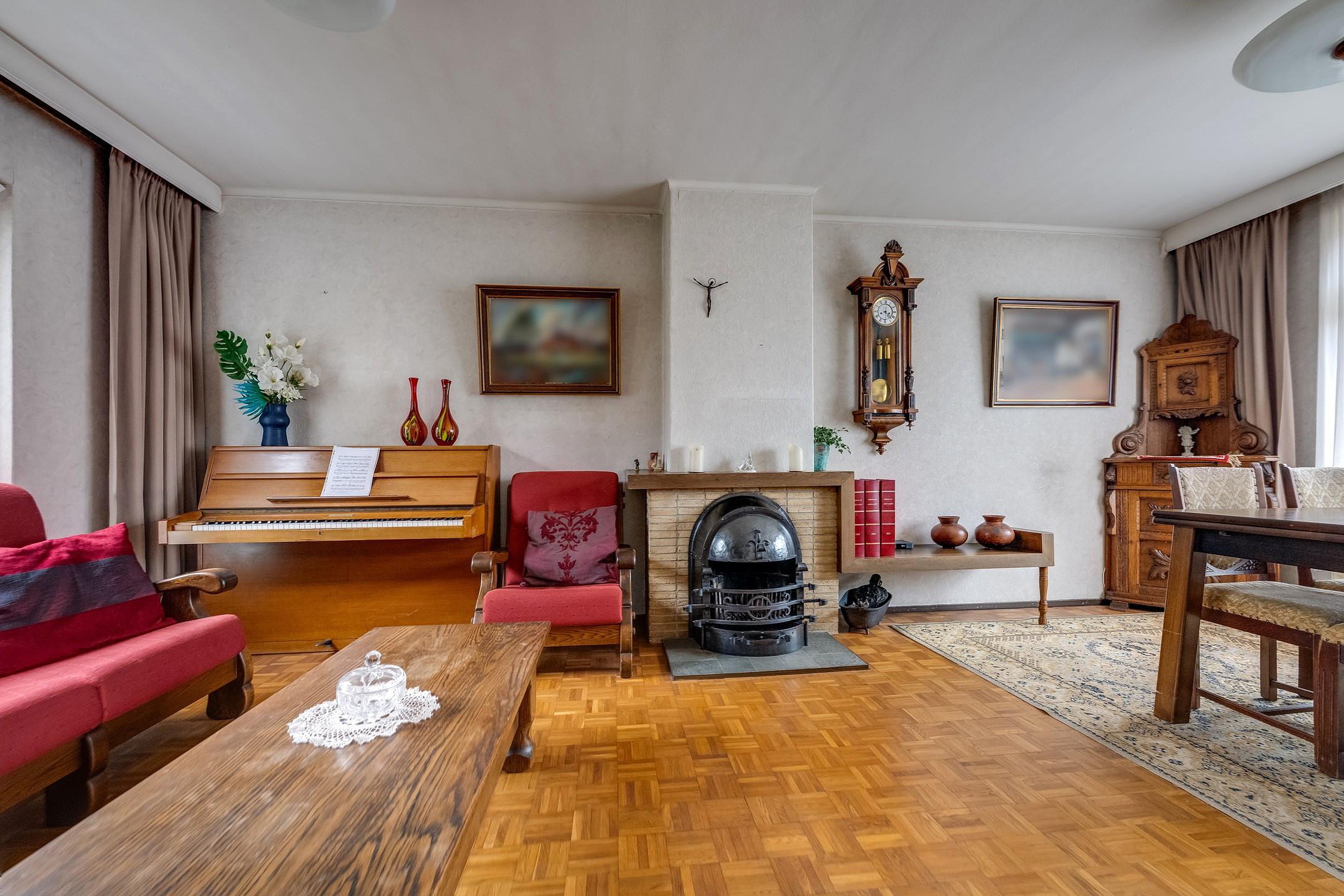 De woonkamer (6,44 m. x 6,02/3,79 m.) heeft een houtkachel en er ligt een parketvloer. De wanden zijn v.v. behang en het plafond is glad afgewerkt. Het hardhouten kozijn aan de voorzijde is v.v. HR++ glas en het kozijn aan de achterzijde is v.v. dubbel glas. Er is een open verbinding naar de keuken.