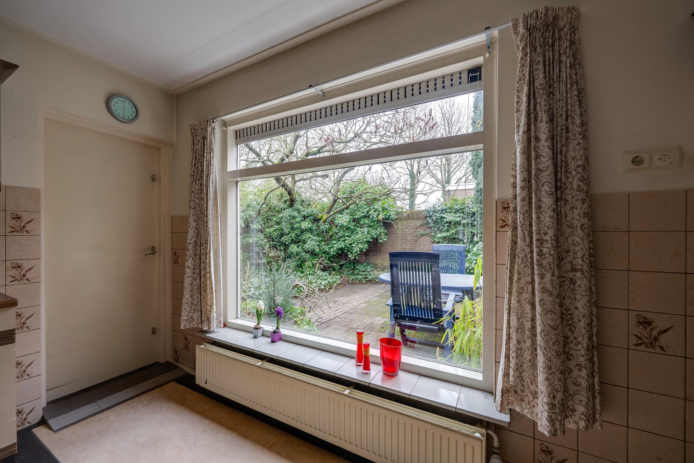 De aangebouwde keuken (4,80 m. x 2,70 m.) heeft een keukenblok v.v. een koelkast, 4 pits gaskookplaat, afzuigkap, oven, een vaatwasser (2025) en een dubbele spoelbak. De hardhouten kozijnen zijn v.v. dubbel glas. Op de vloer ligt een vinylvloer en de wanden zijn deels betegeld. U kunt vanuit de keuken naar de bijkeuken.