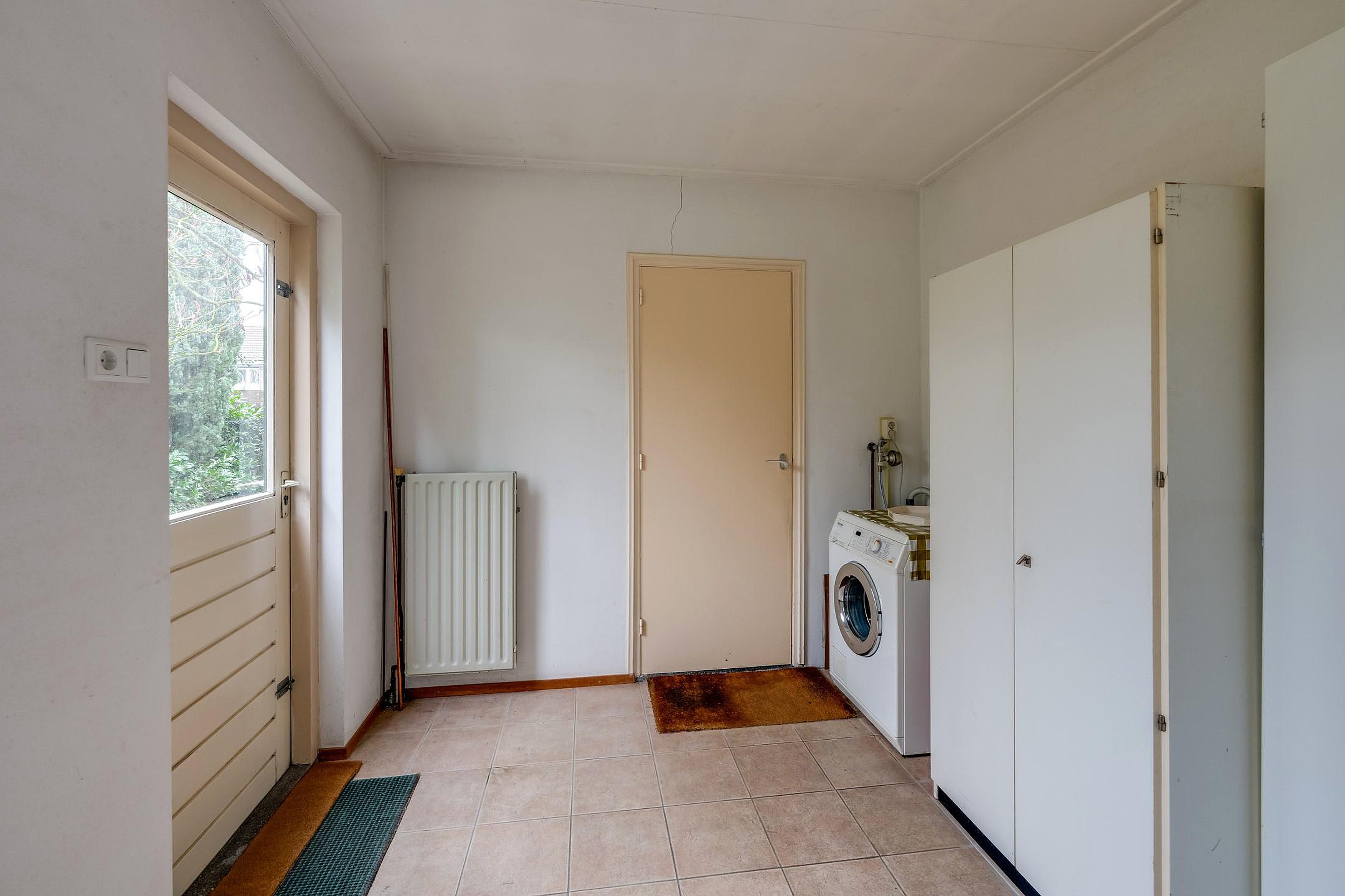 Deze ruimte (3,49 m. x 2,70 m.) is als kantoor, berging of speelruimte in te richten. U vindt hier extra wasaansluitingen. Er ligt een tegelvloer en het hardhouten kozijn is v.v. enkel glas. Via een deur is de achtertuin te bereiken.