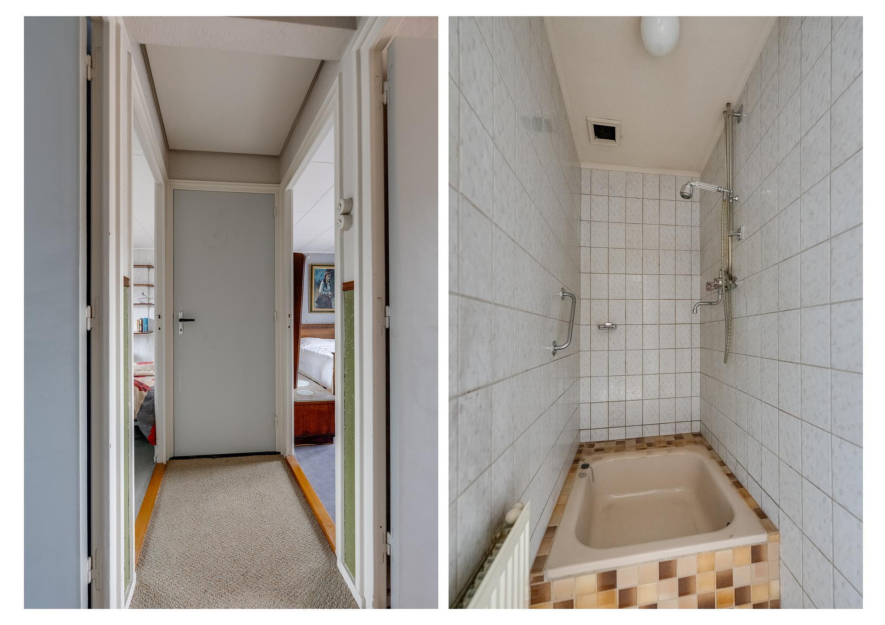 Deze geheel betegelde ruimte (ca. 2 m2) is v.v. een douche.