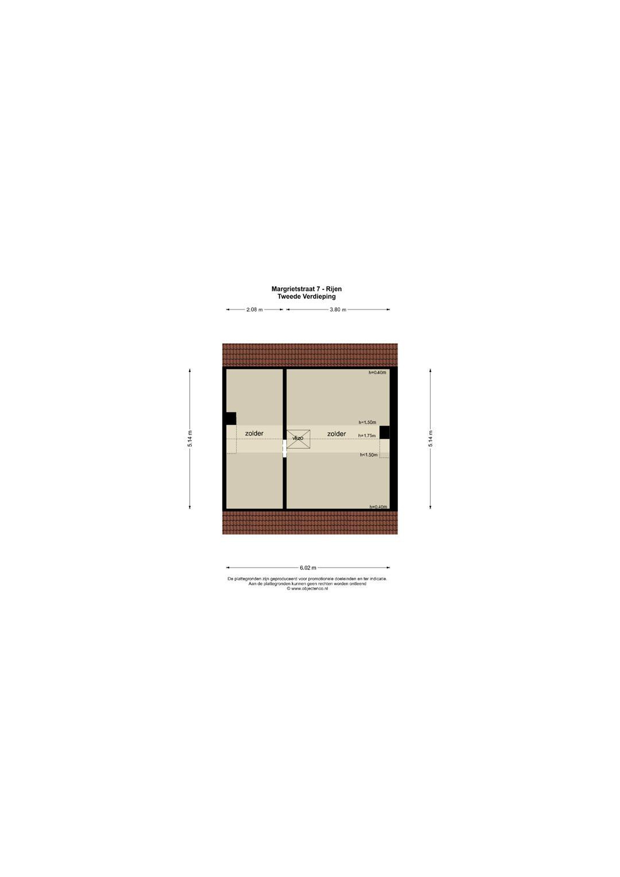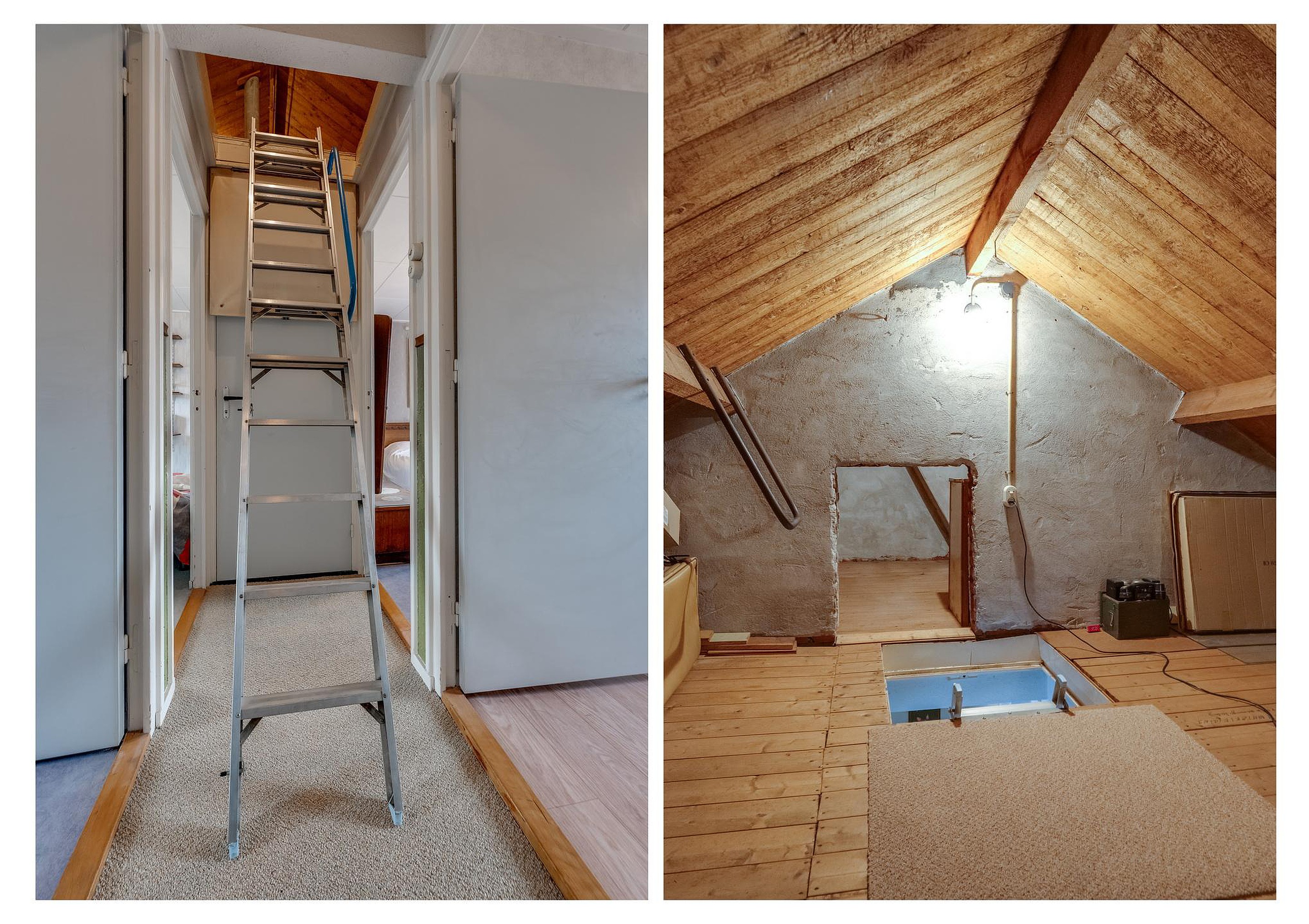 Tweede verdieping Deze ruimte (nokhoogte 1,75 m, zie plattegrond) is in gebruik als bergruimte.