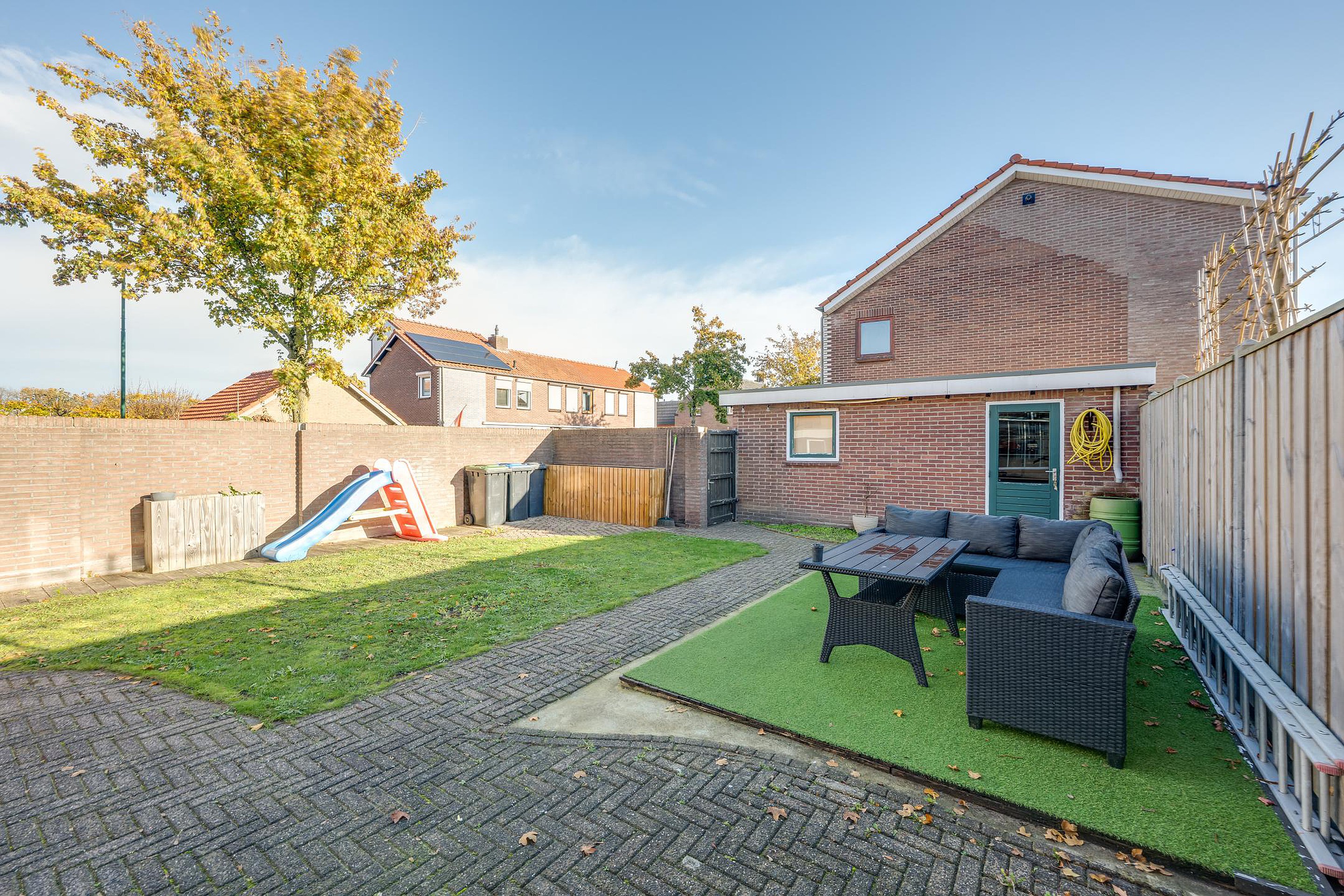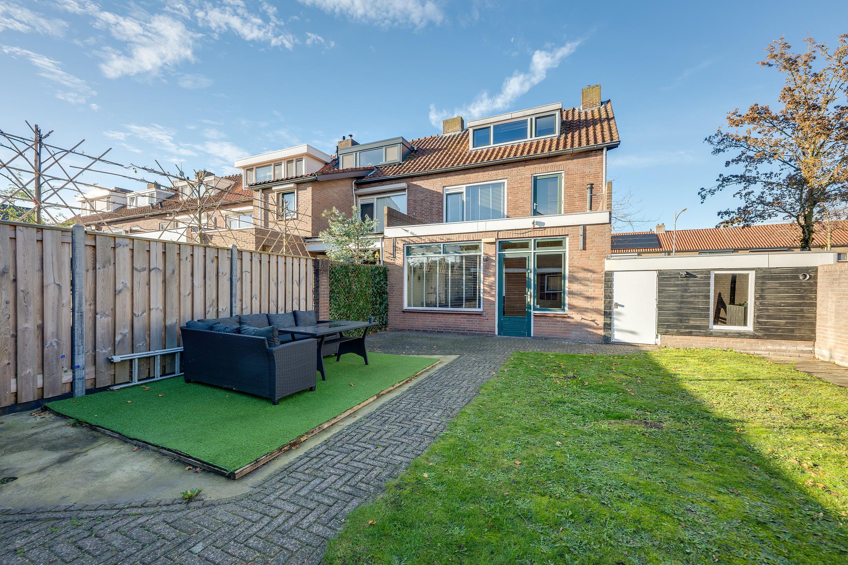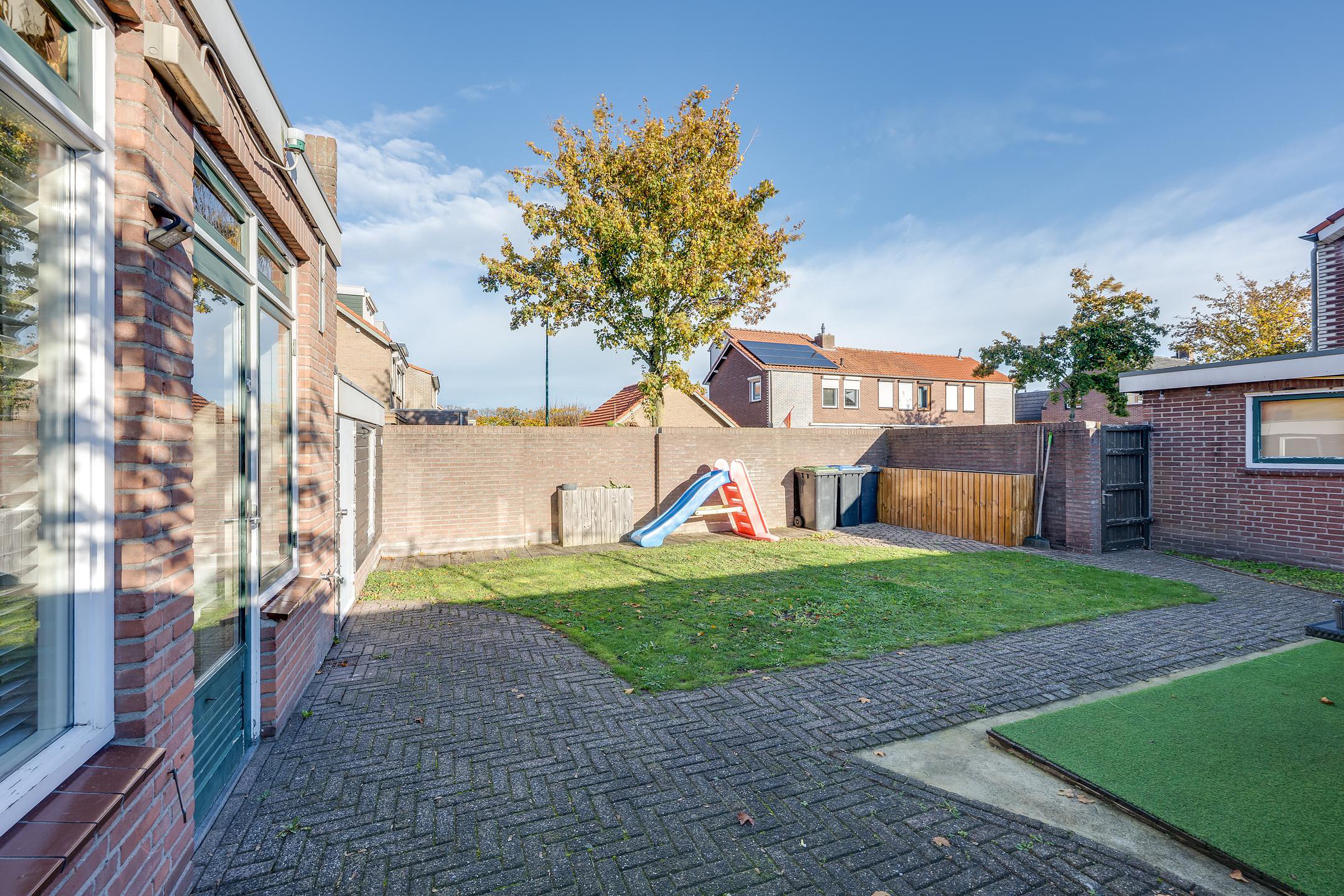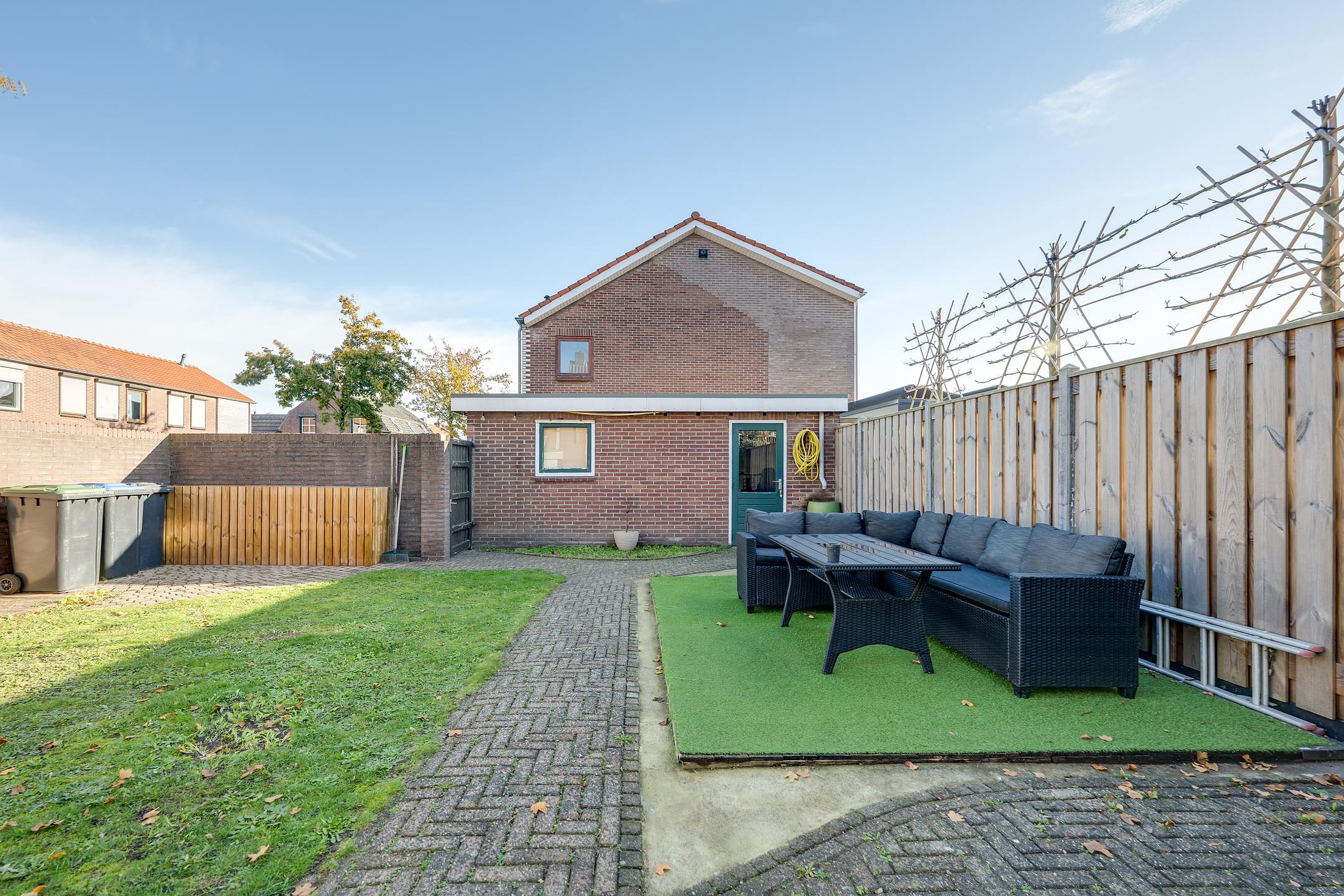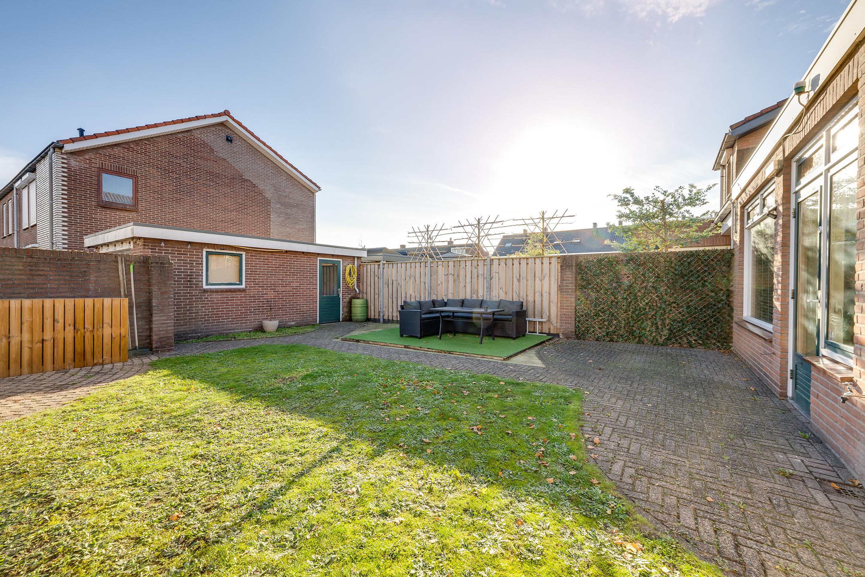 Tuin De achtertuin (9,84 m. x 9.52 m.) ligt op het zuidoosten. Er is een gazon, sierbestrating, een buitenkraan en vaste beplanting. Naast de woning staat een berging en achterin de tuin staat de garage en vindt u een brede poort.