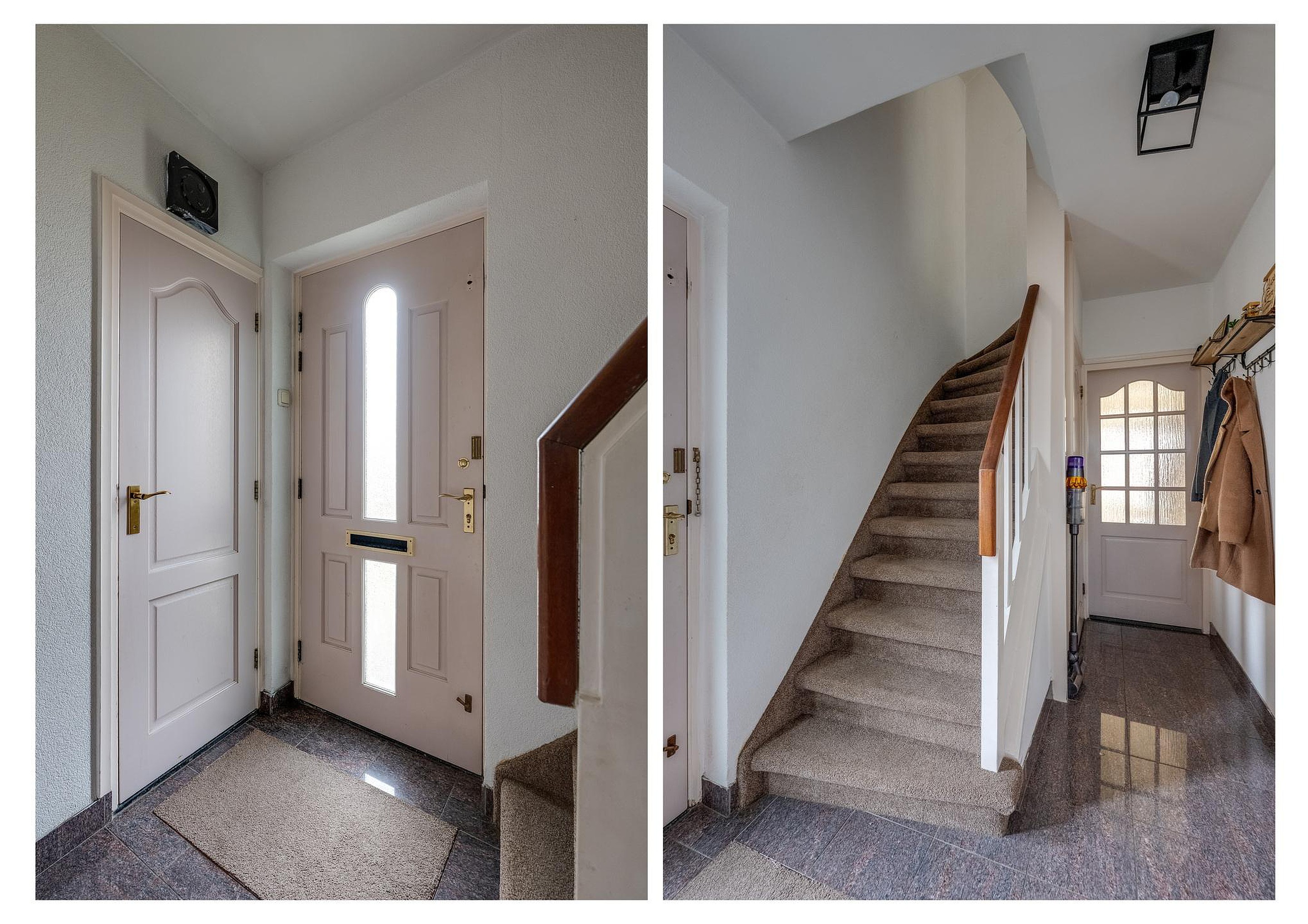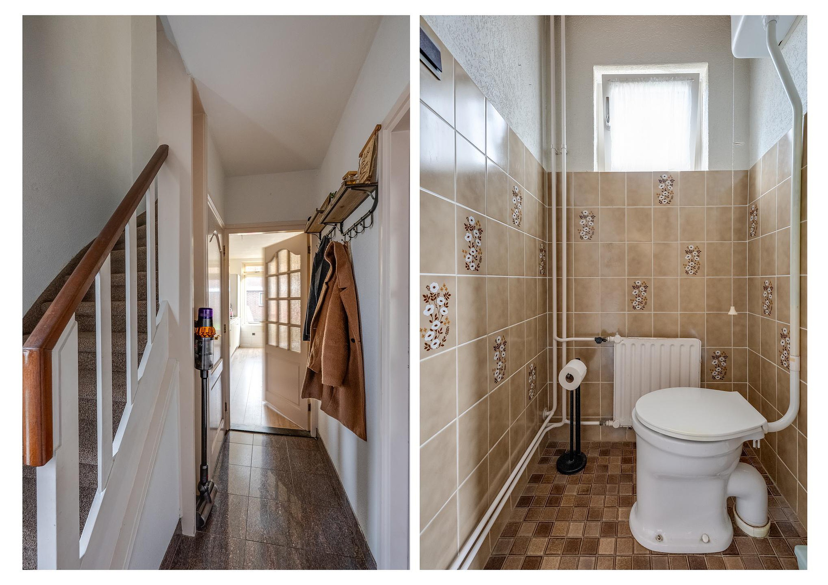 Begane grond Entree/hal met meterkast (5 groepen, 1 aardlekschakelaar), toilet, kelderkast en loopdeuren naar de woonkamer en keuken. De hal is voorzien van plavuizen.