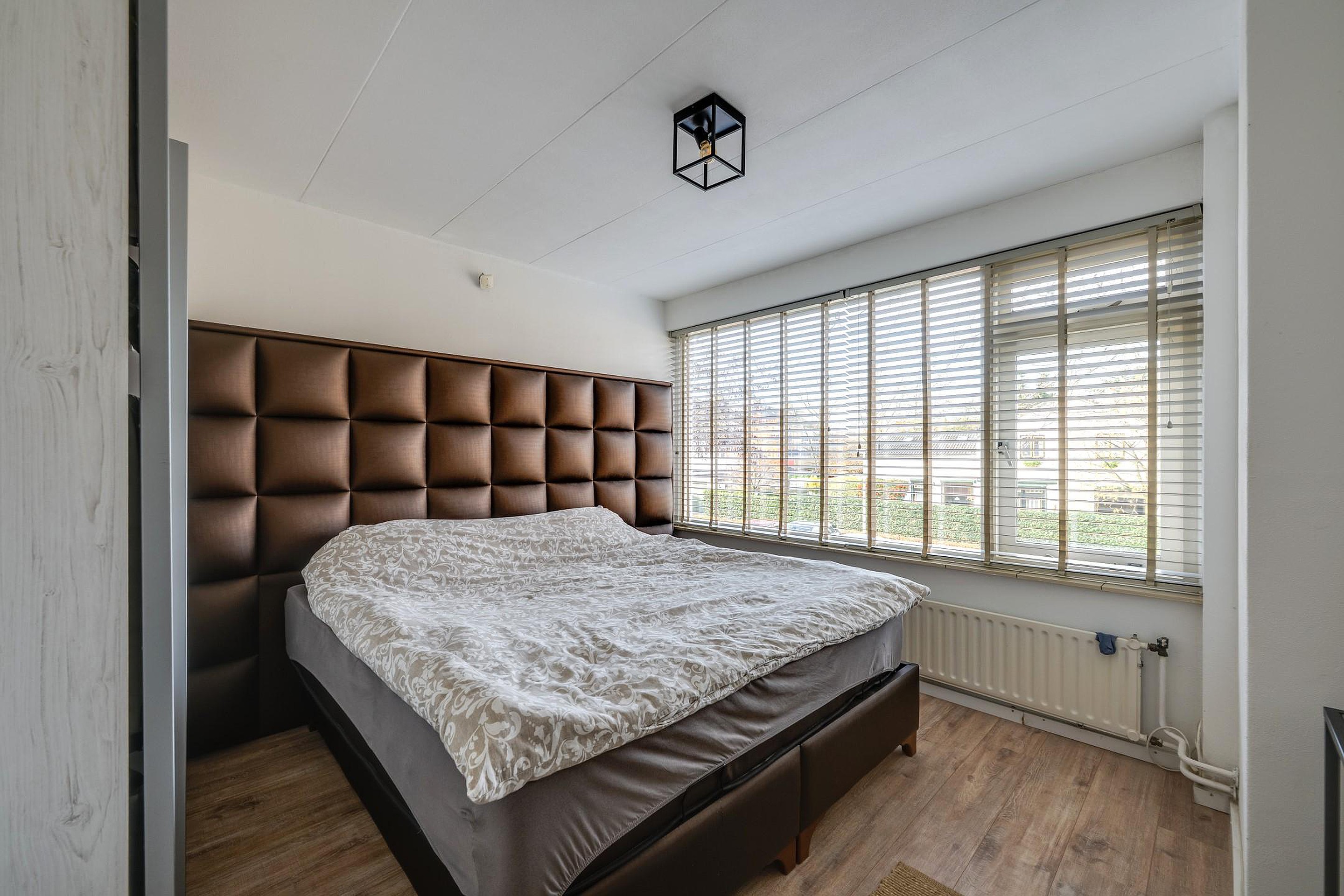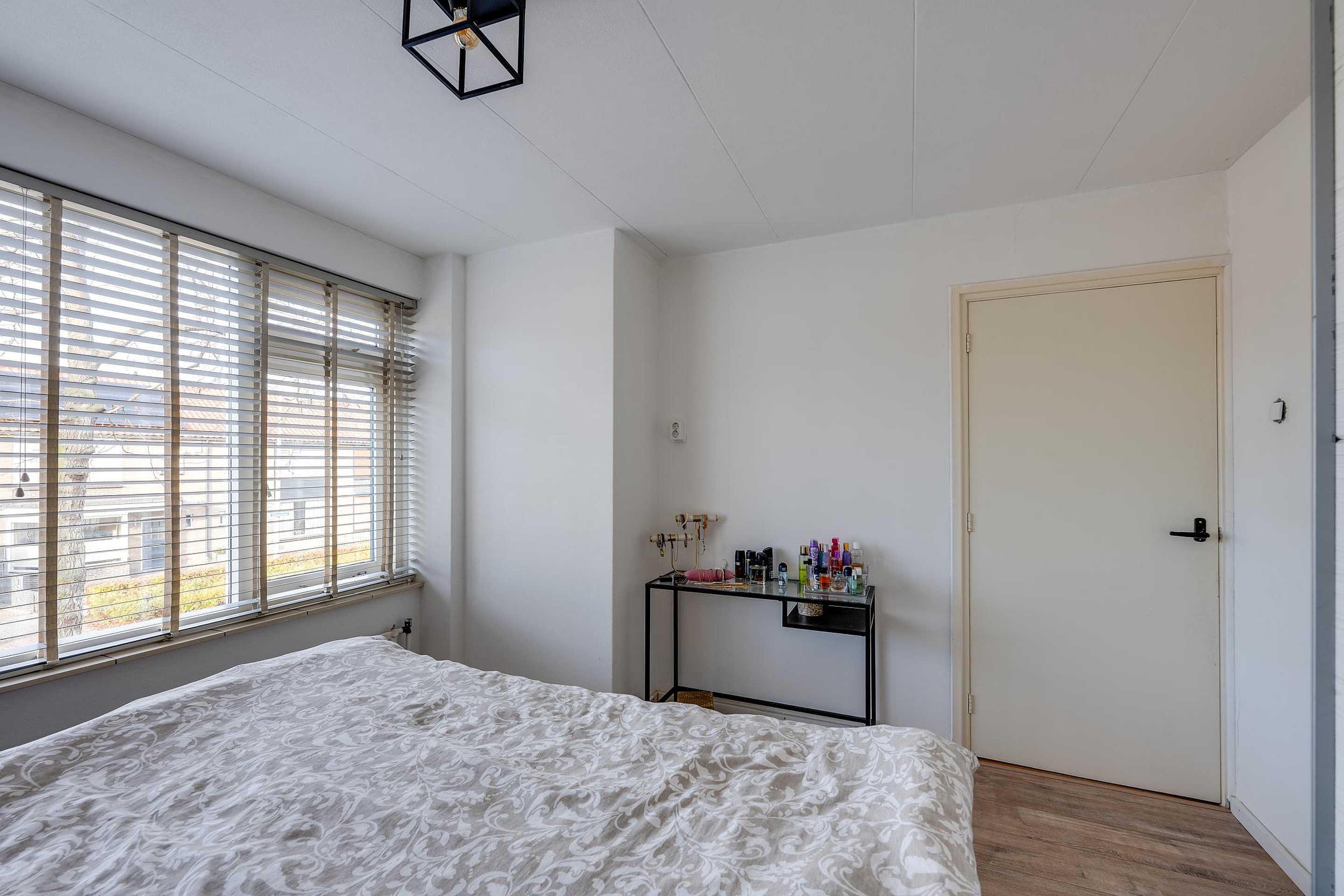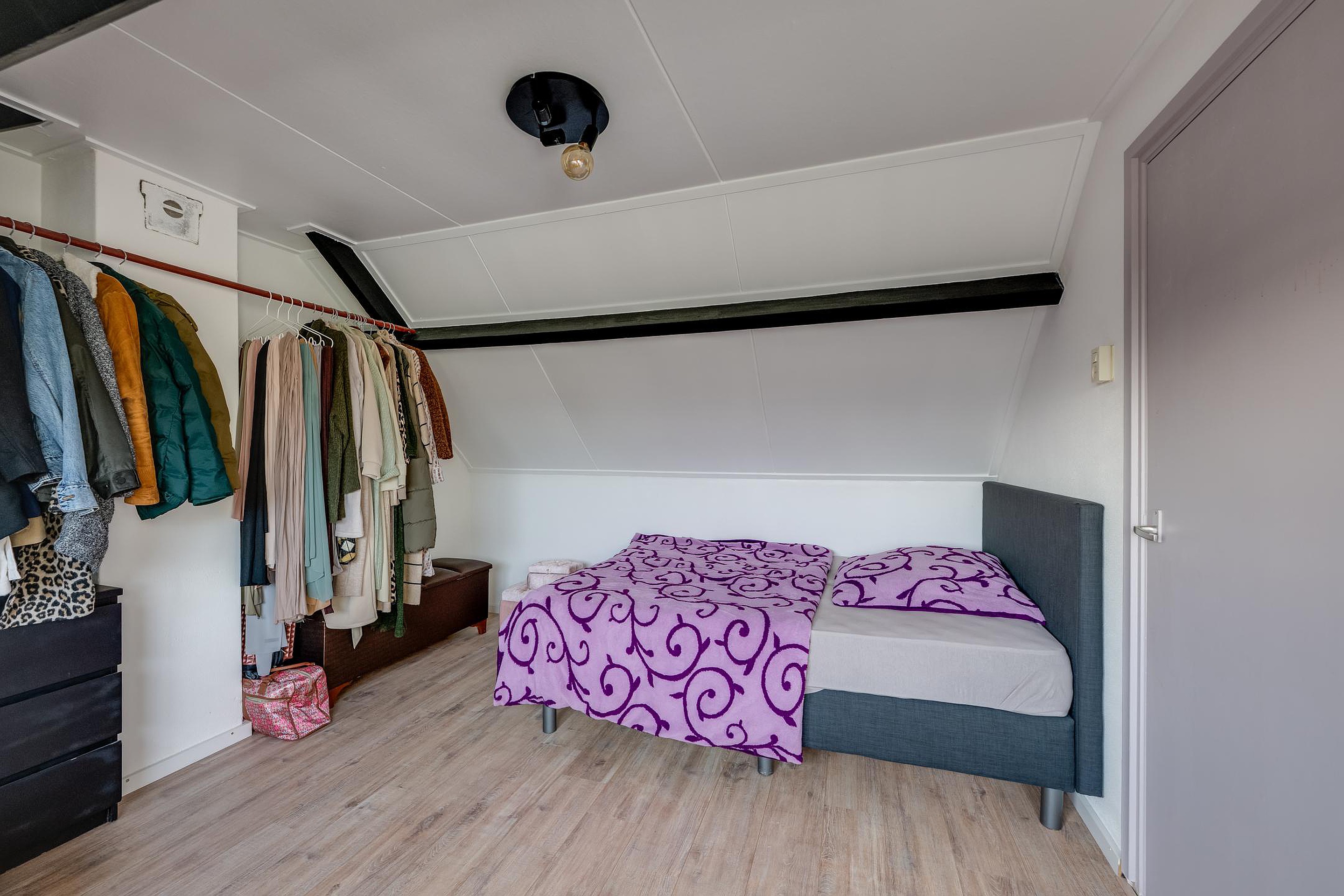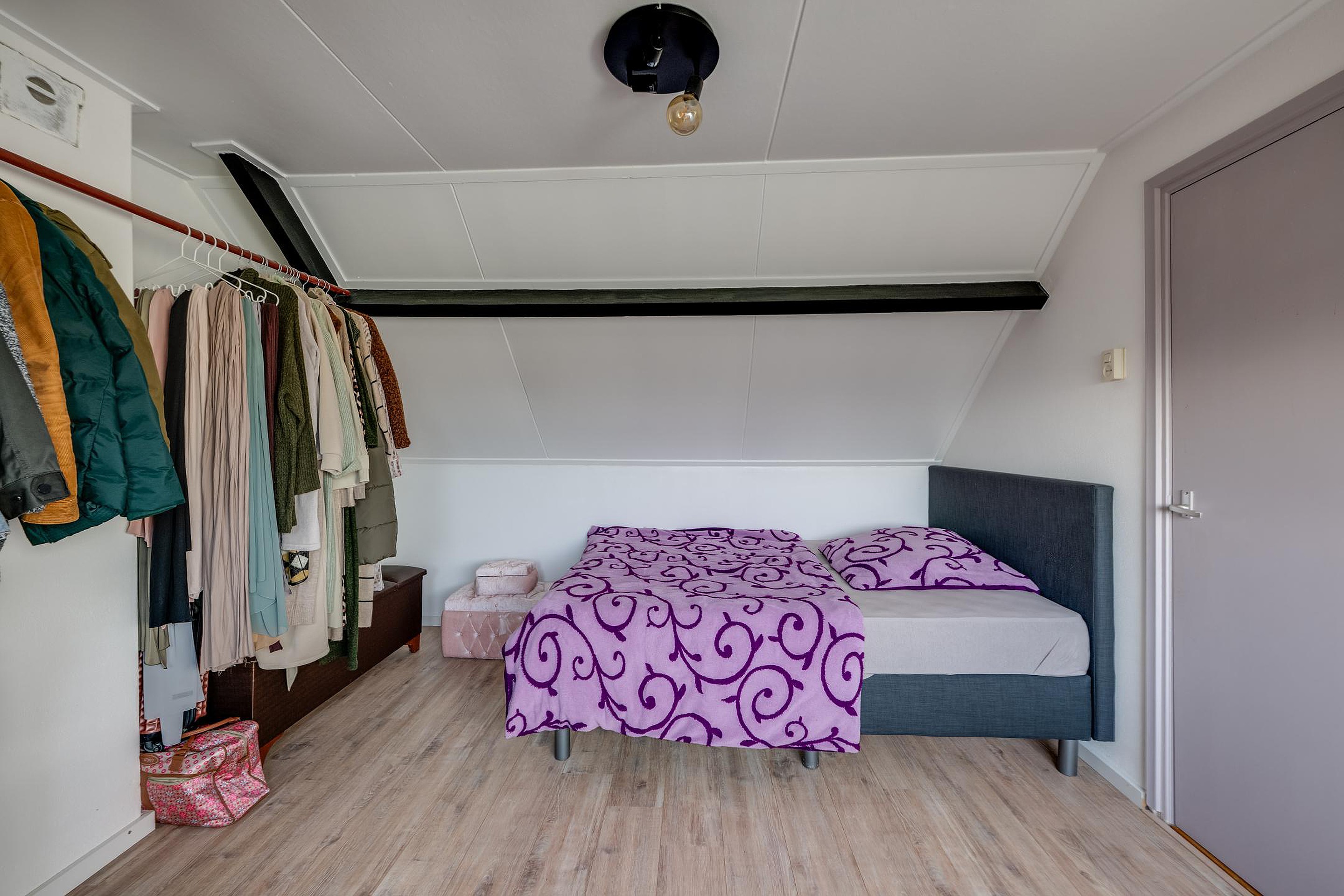 Deze slaapkamer (2,30 m. x 2 m.) ligt aan de voorzijde van de woning. U vindt hier een praktische inbouwkast. De kamer heeft een laminaatvloer en kunststof kozijn v.v. dubbel glas.