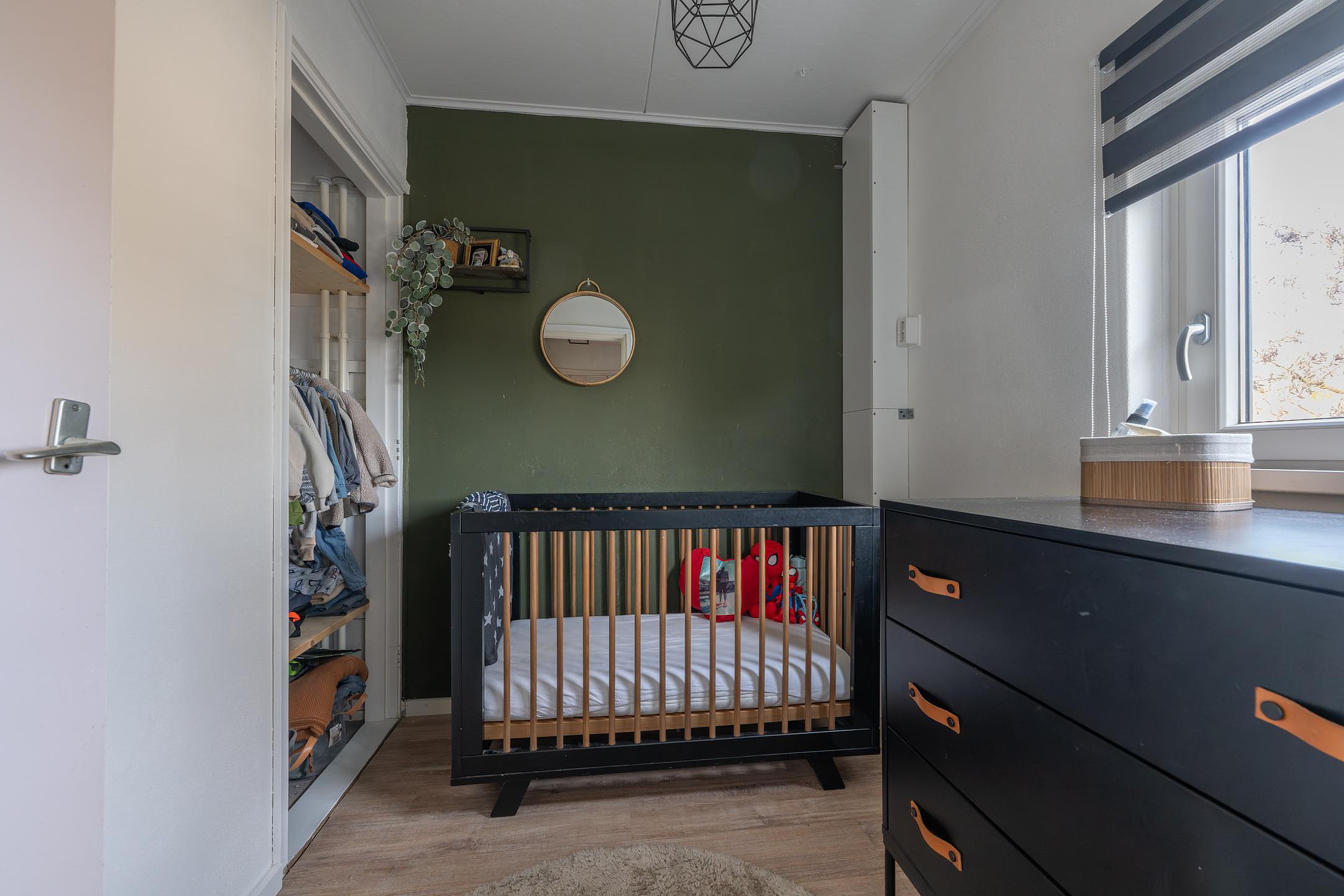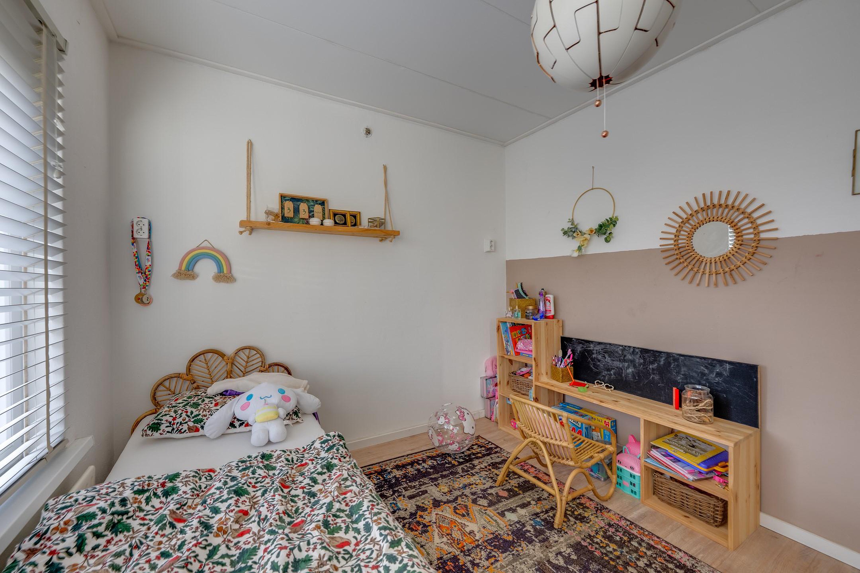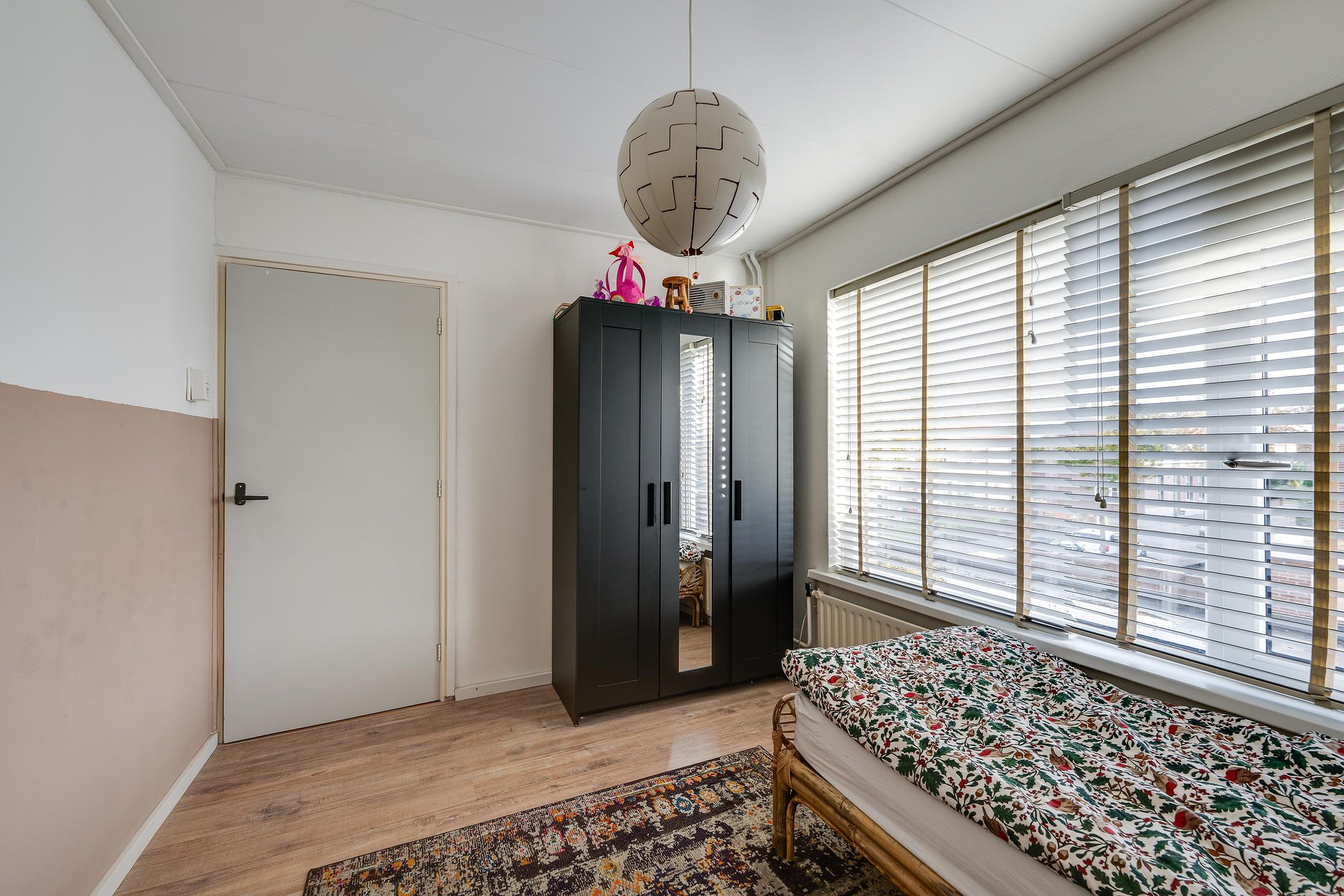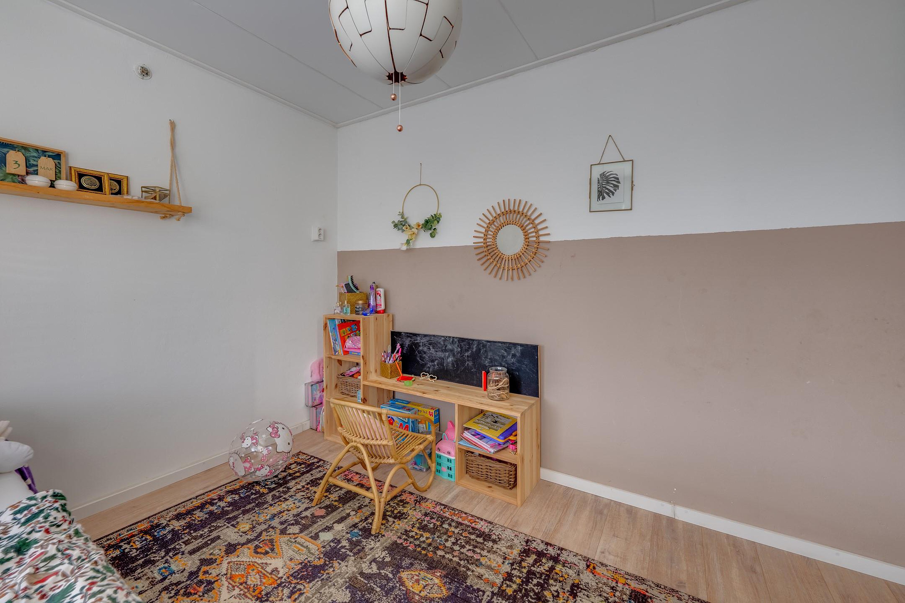 Deze slaapkamer (2,30 m. x 2 m.) ligt aan de voorzijde van de woning. U vindt hier een praktische inbouwkast. De kamer heeft een laminaatvloer en kunststof kozijn v.v. dubbel glas.
