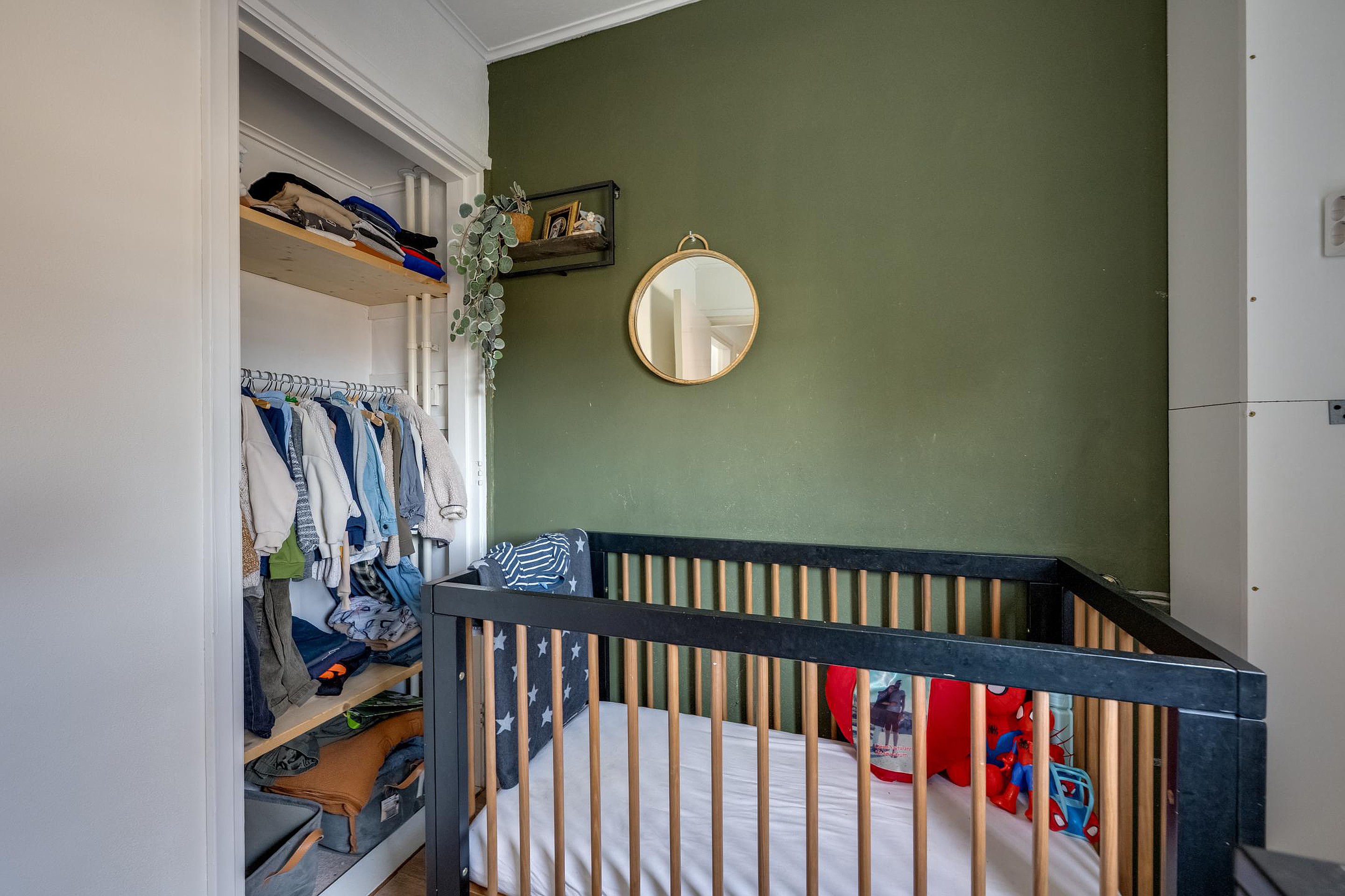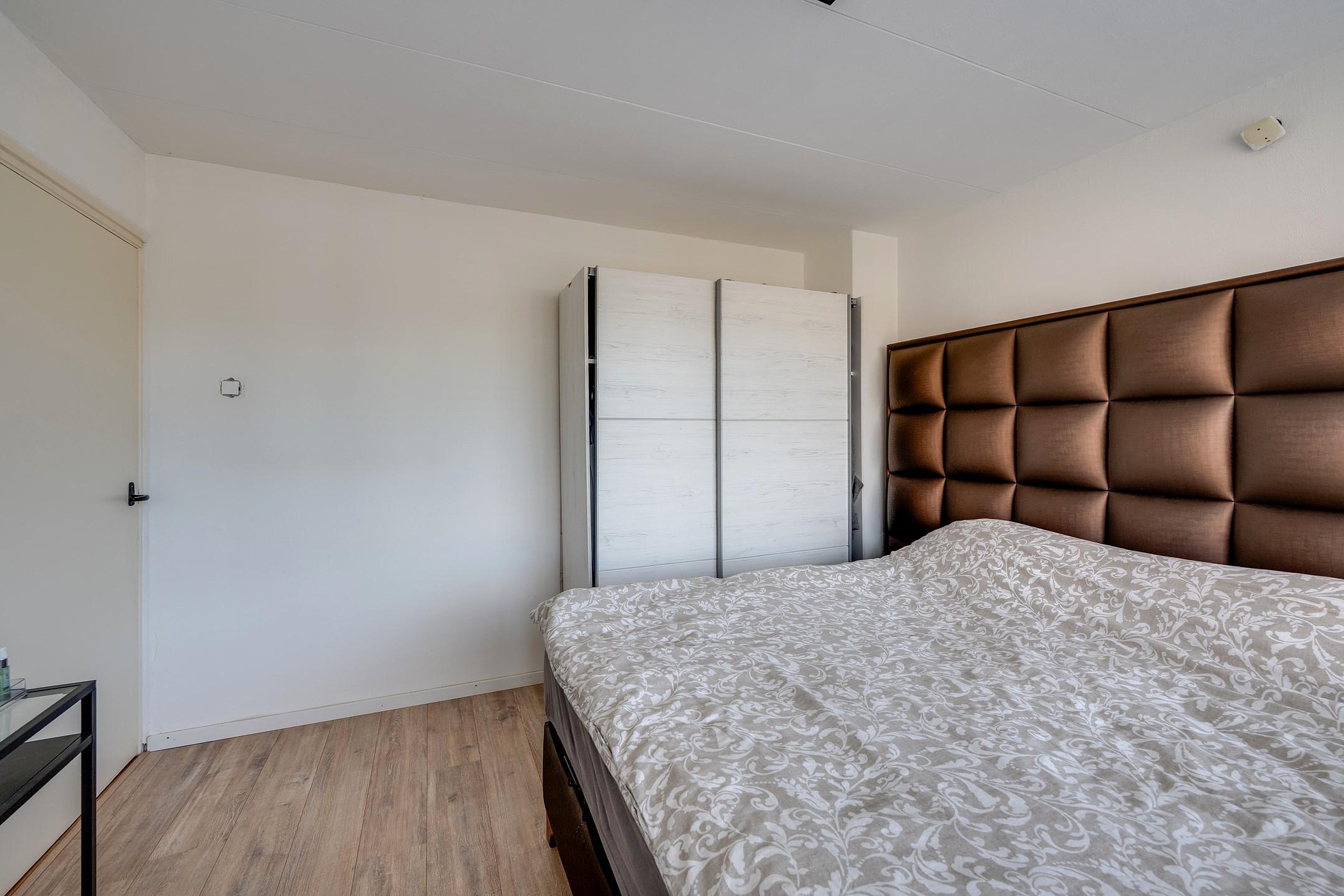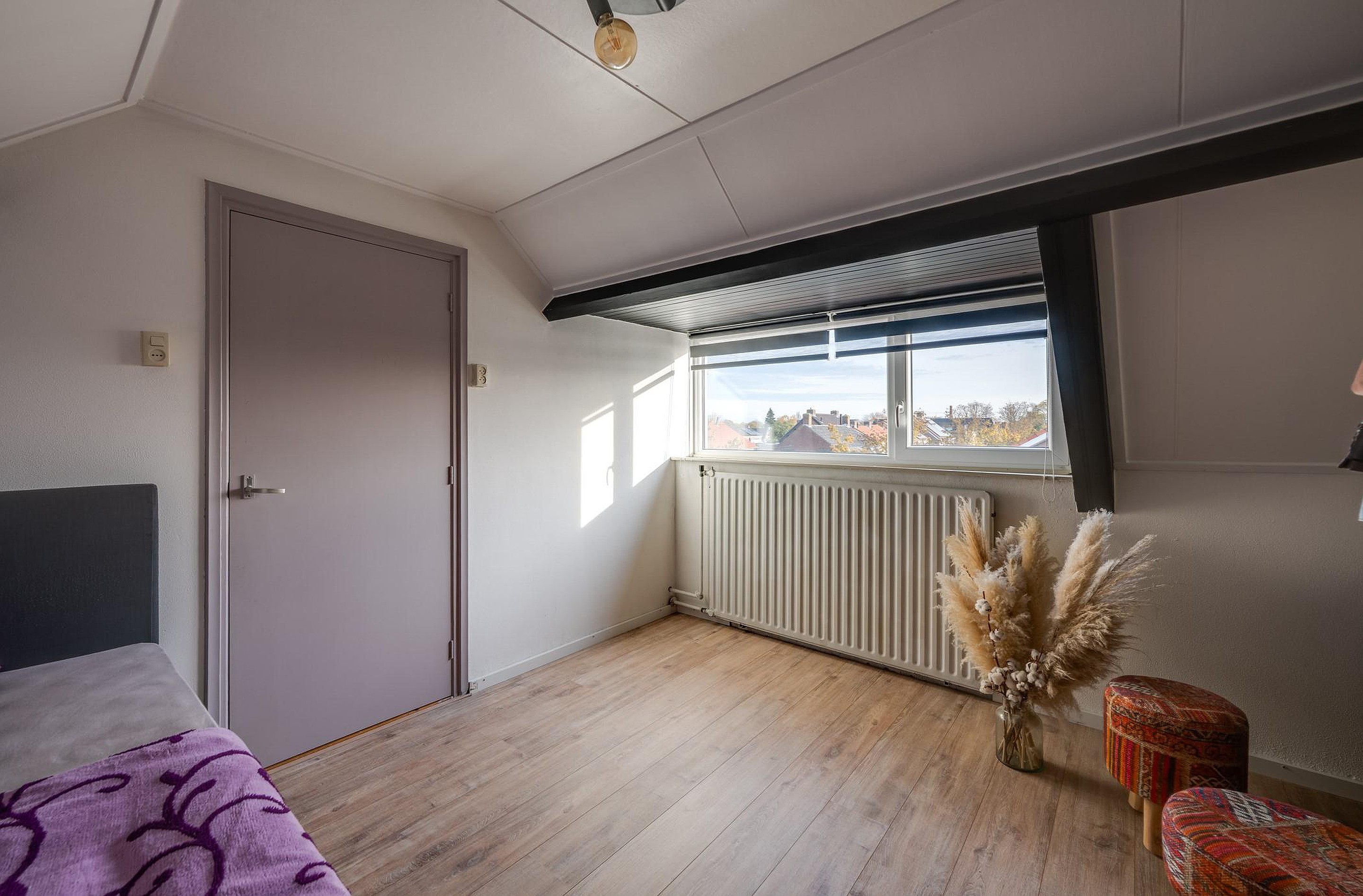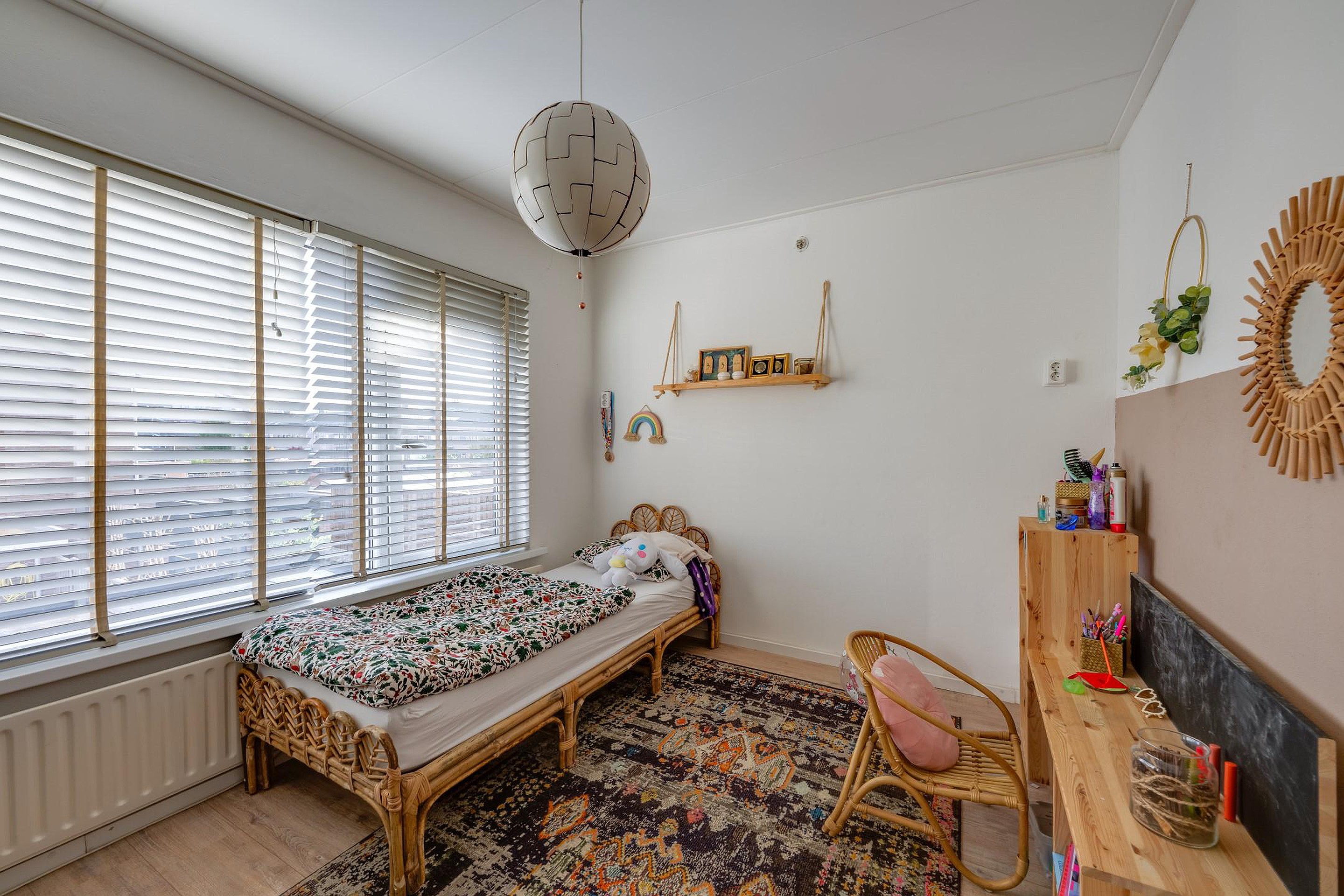 Deze slaapkamer (2,30 m. x 2 m.) ligt aan de voorzijde van de woning. U vindt hier een praktische inbouwkast. De kamer heeft een laminaatvloer en kunststof kozijn v.v. dubbel glas.