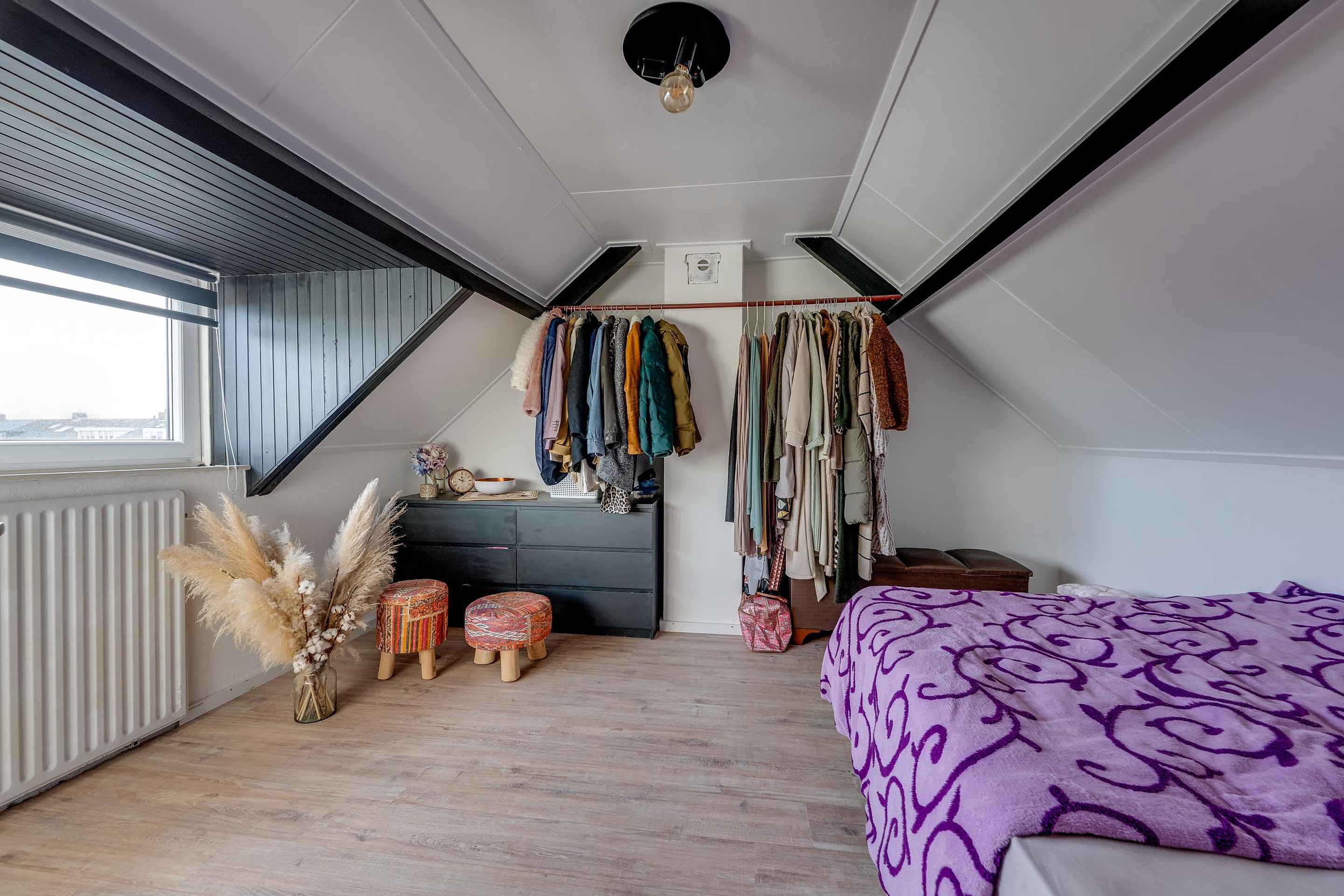 Deze slaapkamer (4,08 m. x 3,54 m.) is v.v. stucwerk en een laminaatvloer. De dakkapel heeft een kunststof kozijn v.v. dubbel glas.