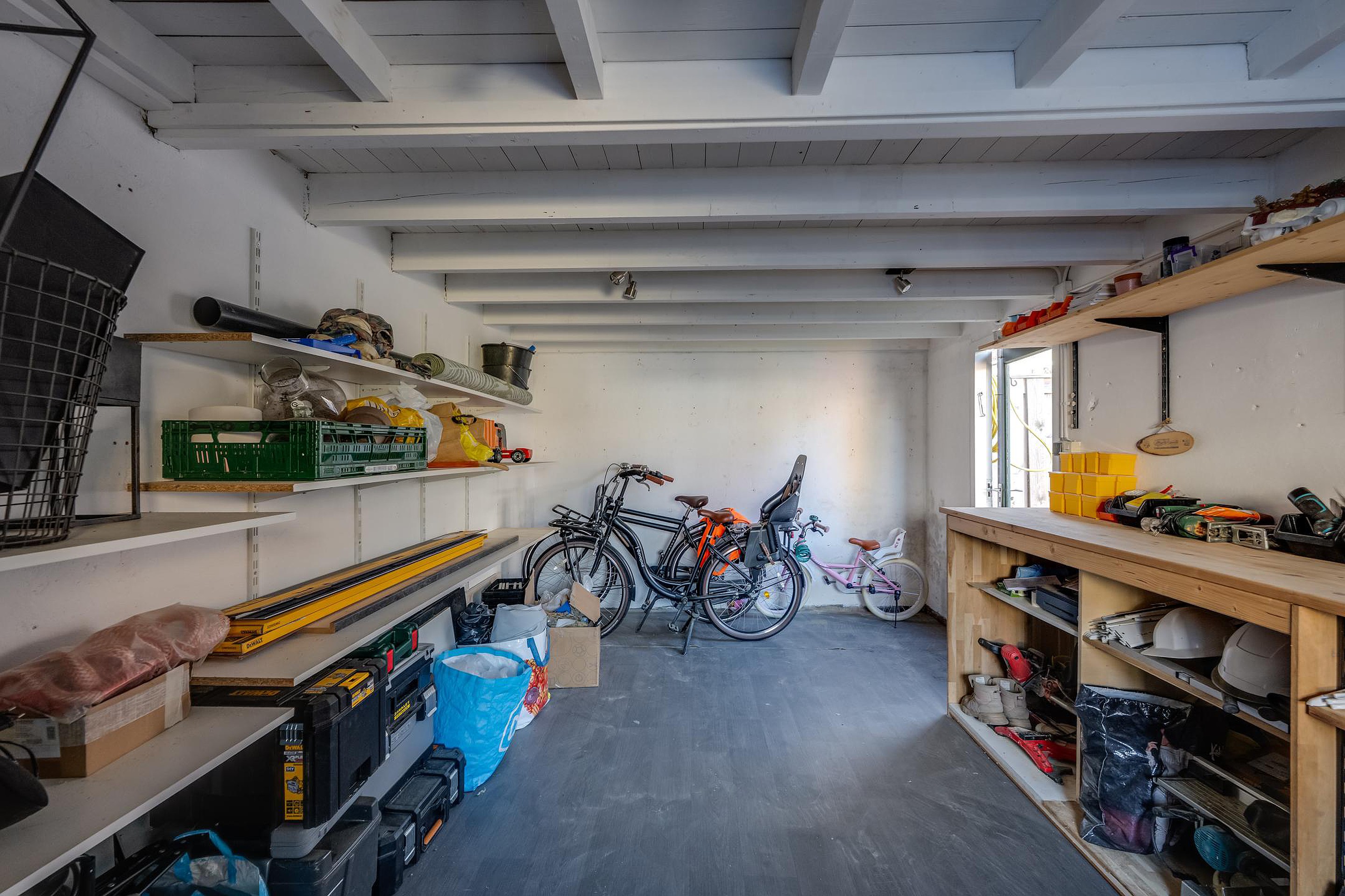 Achter in de tuin staat een vrijstaande stenen garage (5,75 m. x 3,22 m. x 2,15 m. hoog) v.v. elektra en een twee openslaande deuren. Voor de garage heeft u ook parkeerruimte op eigen oprit.