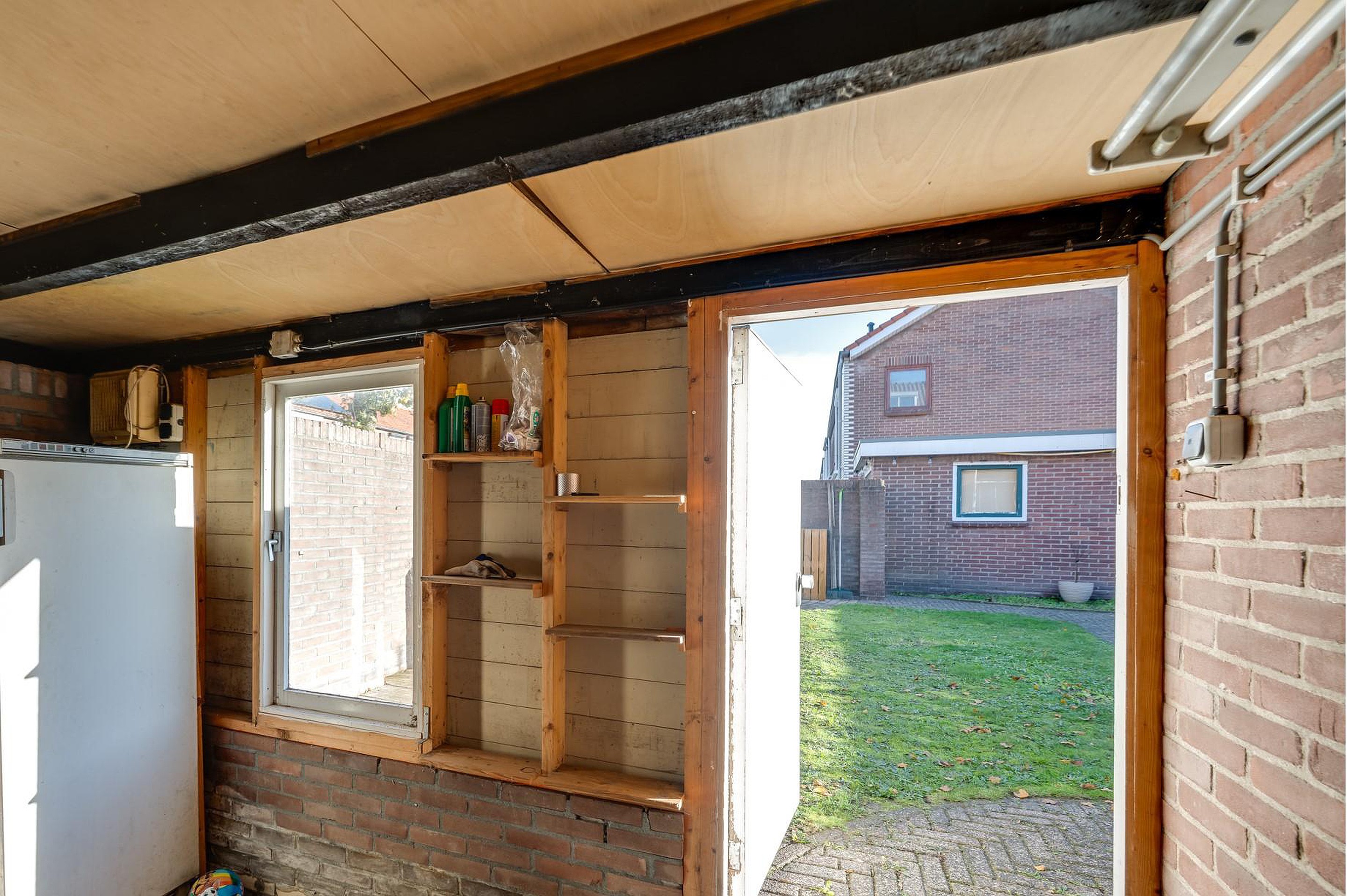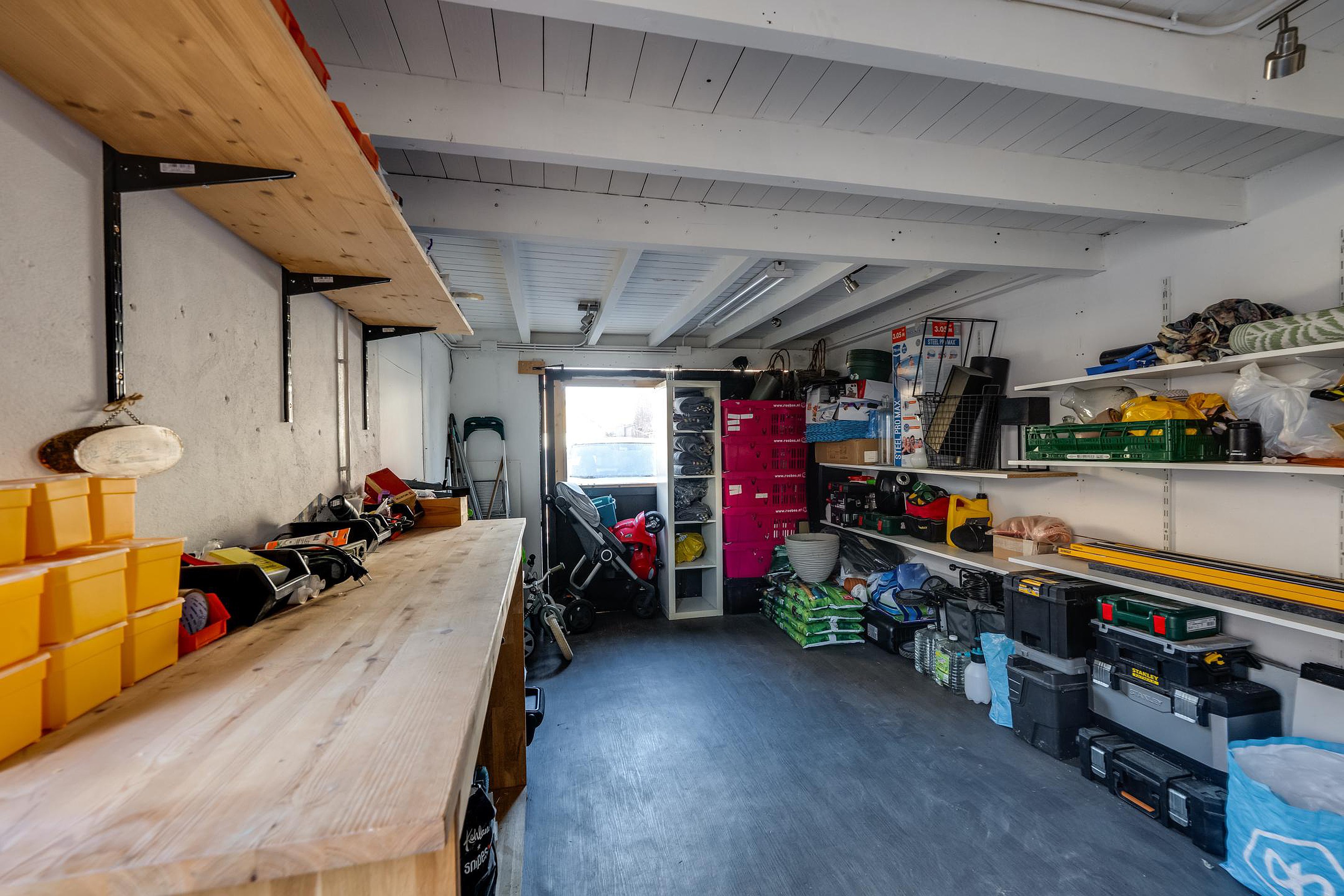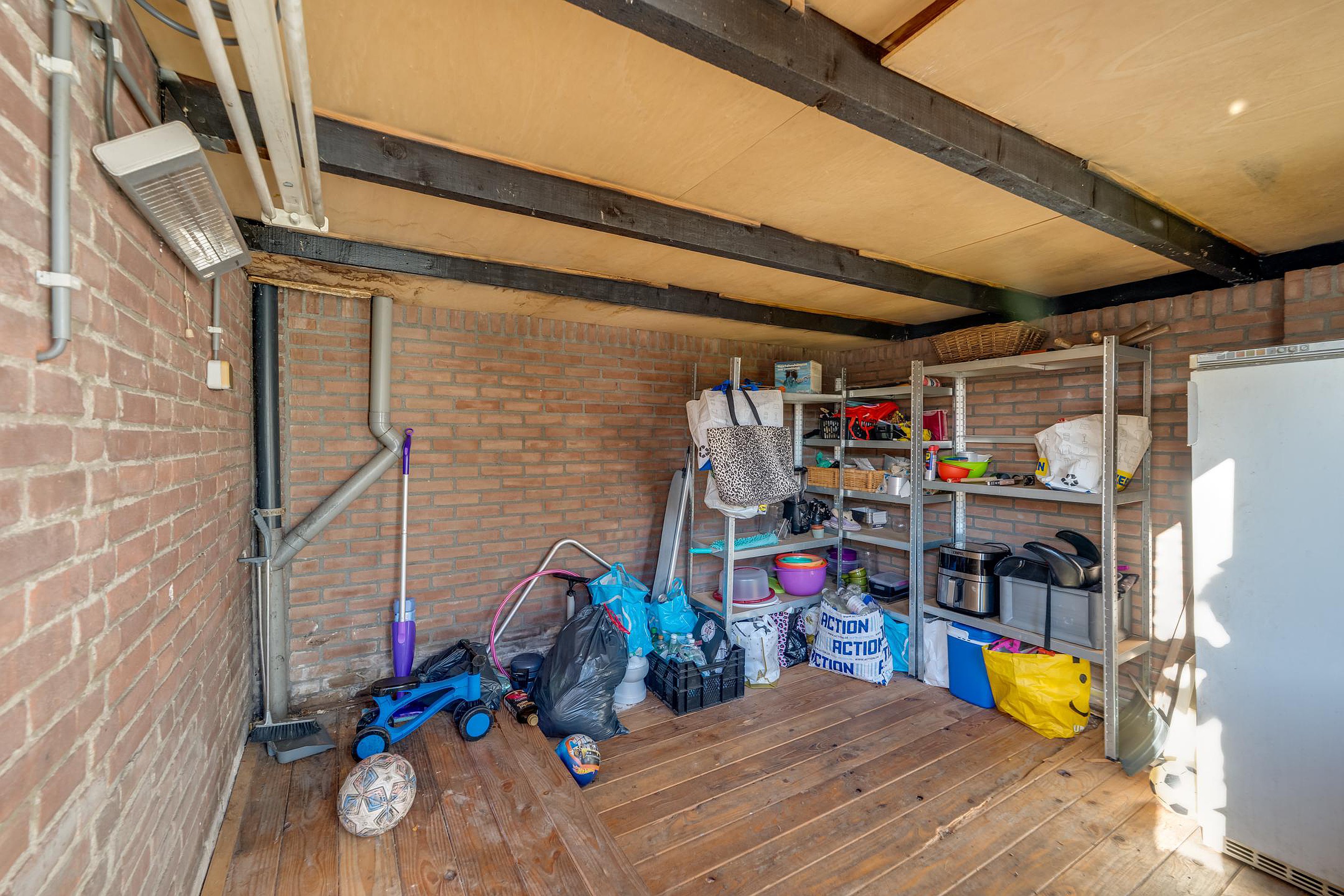 De berging (3,47 m. x 2,84 m. x 1,80/1,96 m. hoog) staat naast de woning en is v.v. elektra.