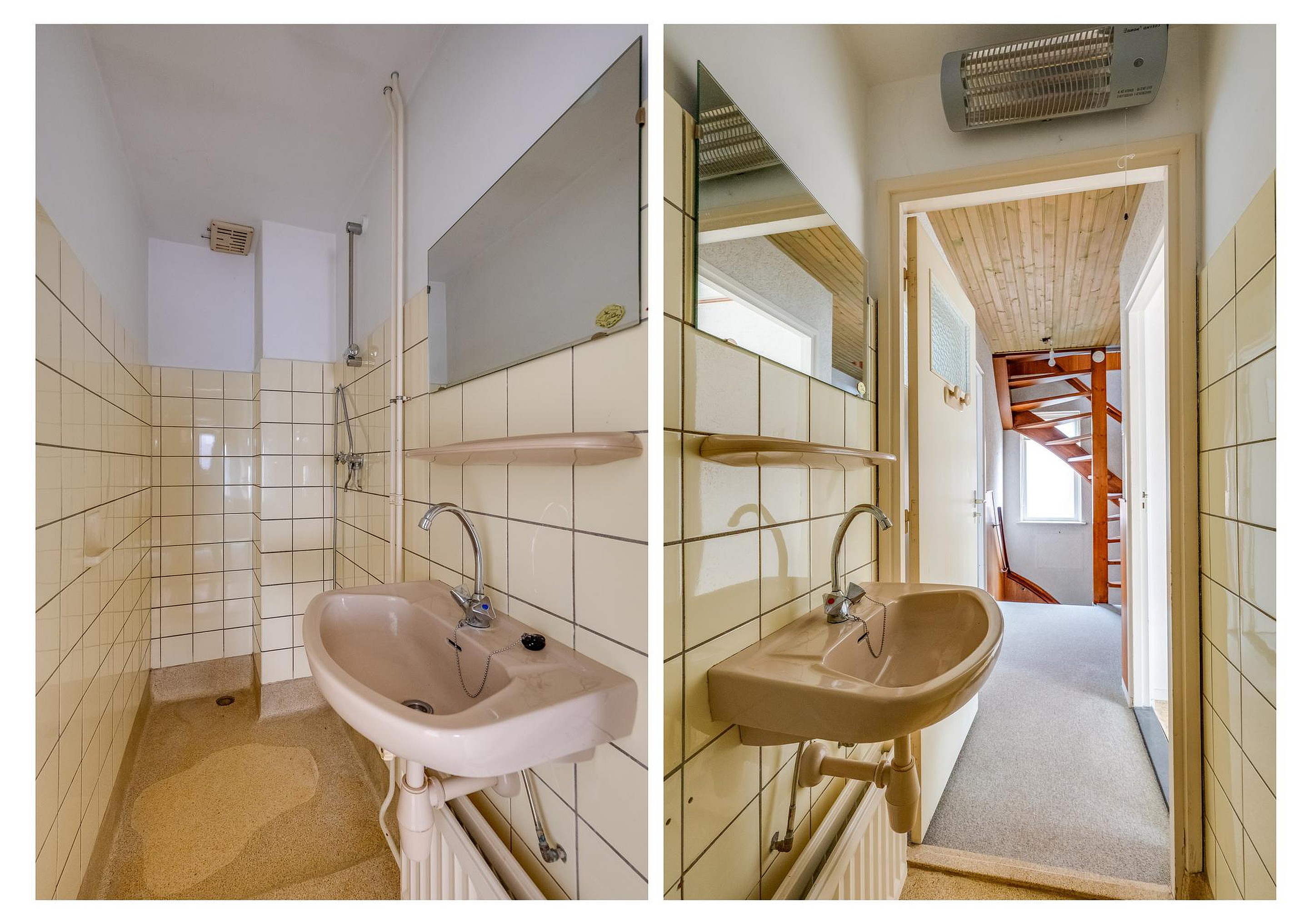 Deze ruimte (2,50 m. x 1,60 m.) ligt aan de voorzijde van de woning. U vindt hier de wasaansluitingen en een staand toilet.