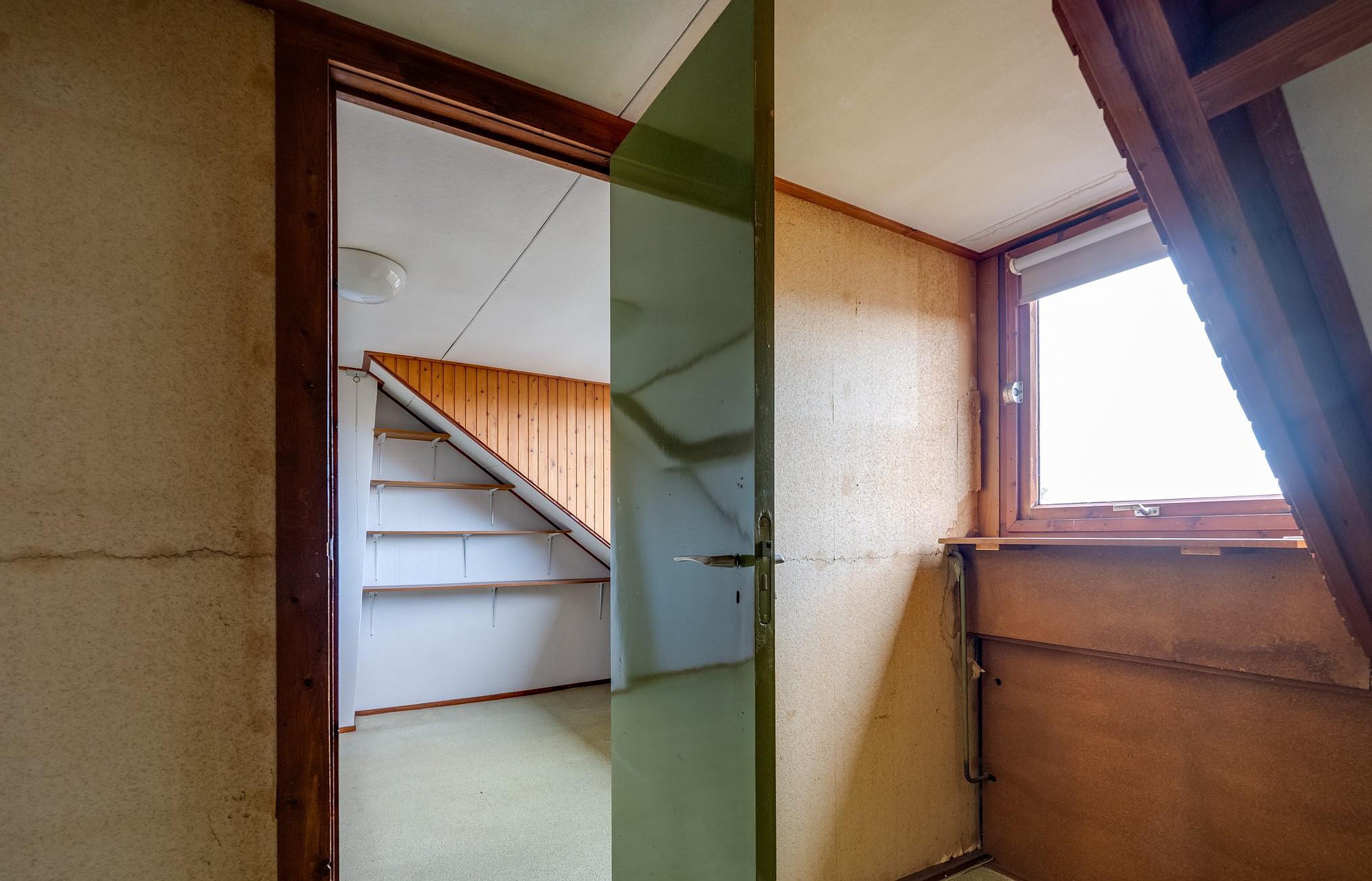 Eerste verdieping Vanuit de overloop heeft u toegang tot 2 slaapkamers (voorheen 3), een wasruimte met toilet en doucheruimte met wastafel. Er is een vaste trap naar de tweede verdieping. Alle houten kozijnen op deze verdieping zijn v.v. enkel glas.