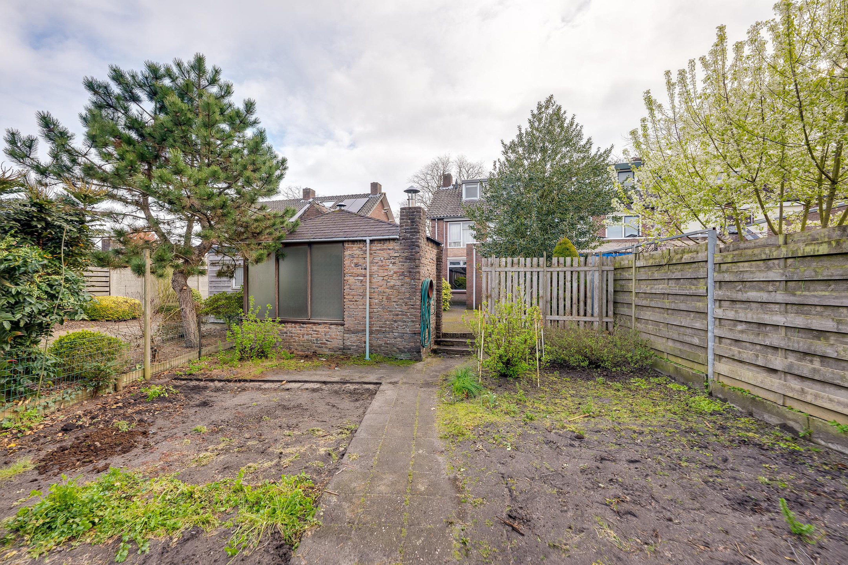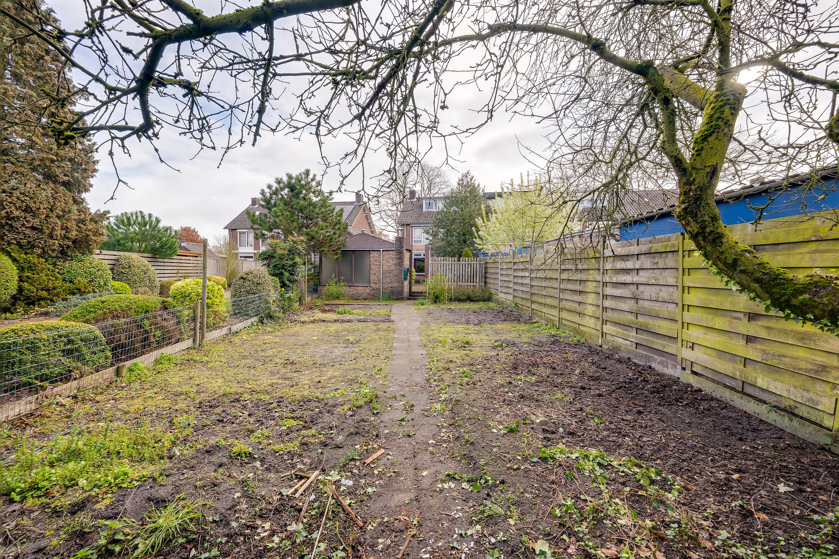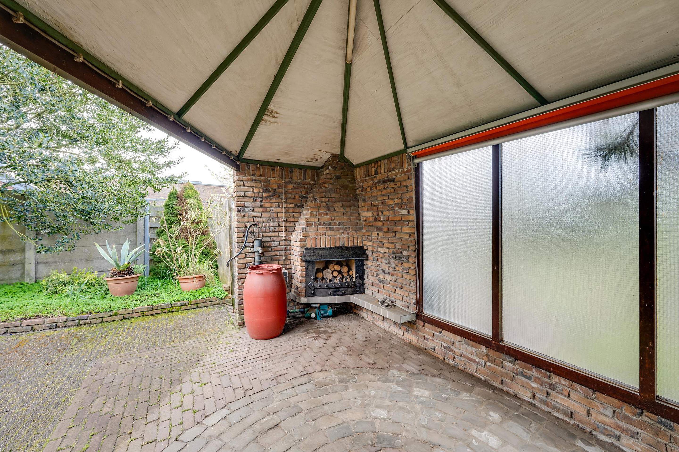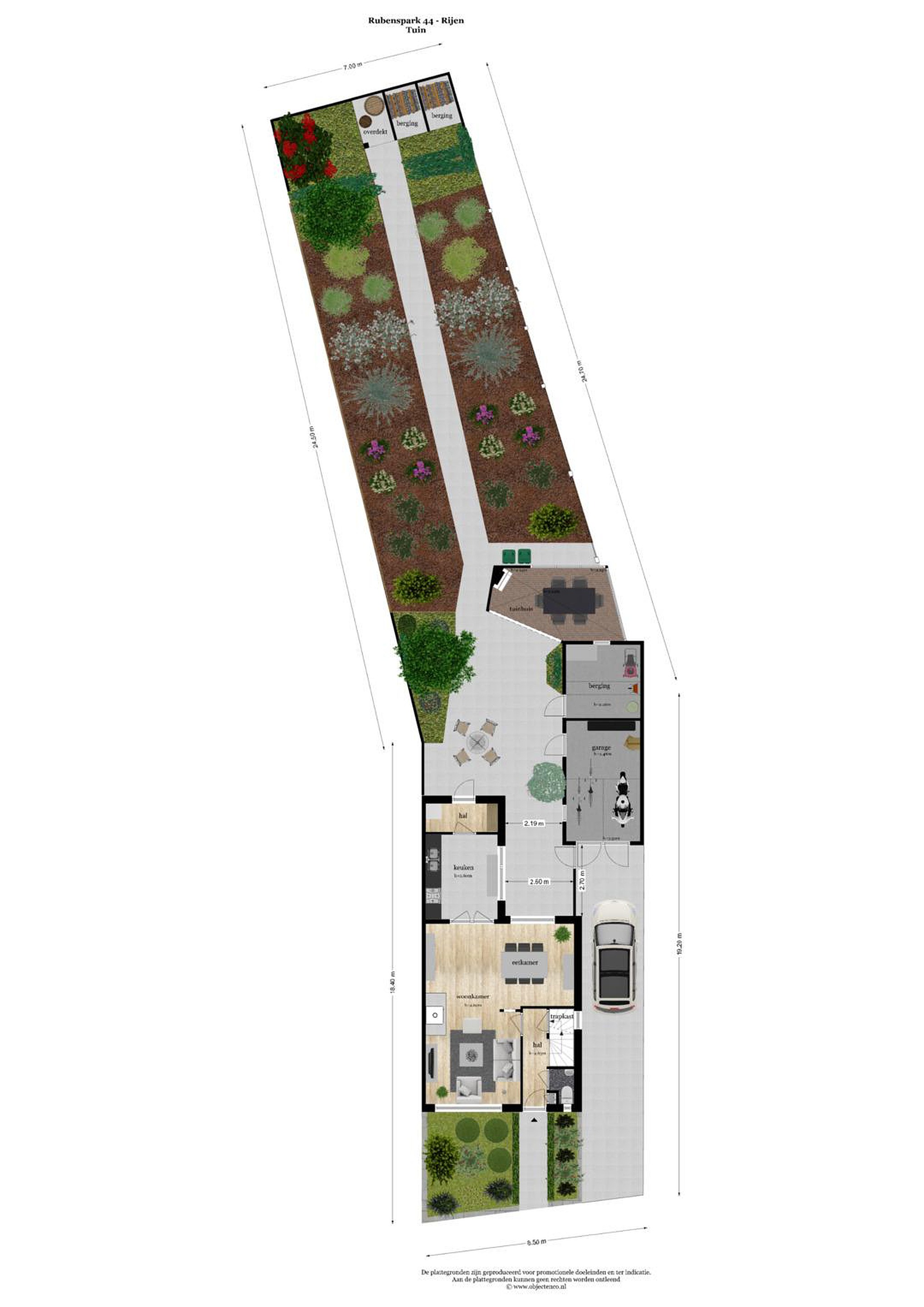 Tuin De tuin (ca, 25 m. x 7 m.) ligt op het zuidwesten. U vindt hier sierbestrating, vaste beplanting en een overkapping met haard. Er is een buitenkraan, elektra en een grondpomp aanwezig. In de tuin staan een garage en berging. Achterin de tuin was vroeger de moestuin.