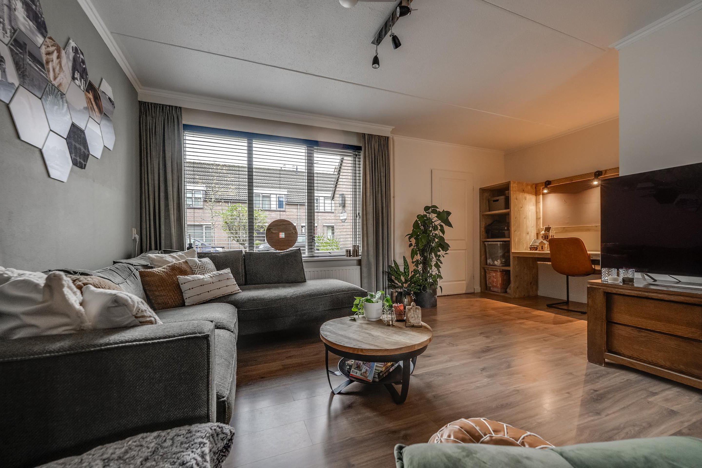 Vanuit de entree loopt u de woonkamer (8,12 m. x 5,40/3,81 m.) in, met aan de voorzijde een zitgedeelte. Aan de achterzijde is momenteel het eetgedeelte, wat naast de keuken ligt. De aluminium schuifpui v.v. dubbel glas geeft toegang tot de achtertuin. Vanuit de woonkamer kunt u naar de keuken. Het hardhouten kozijn aan de voorzijde is v.v. dubbel glas. Er hangt een moderne radiator. Achter een deur vindt u de trapopgang.