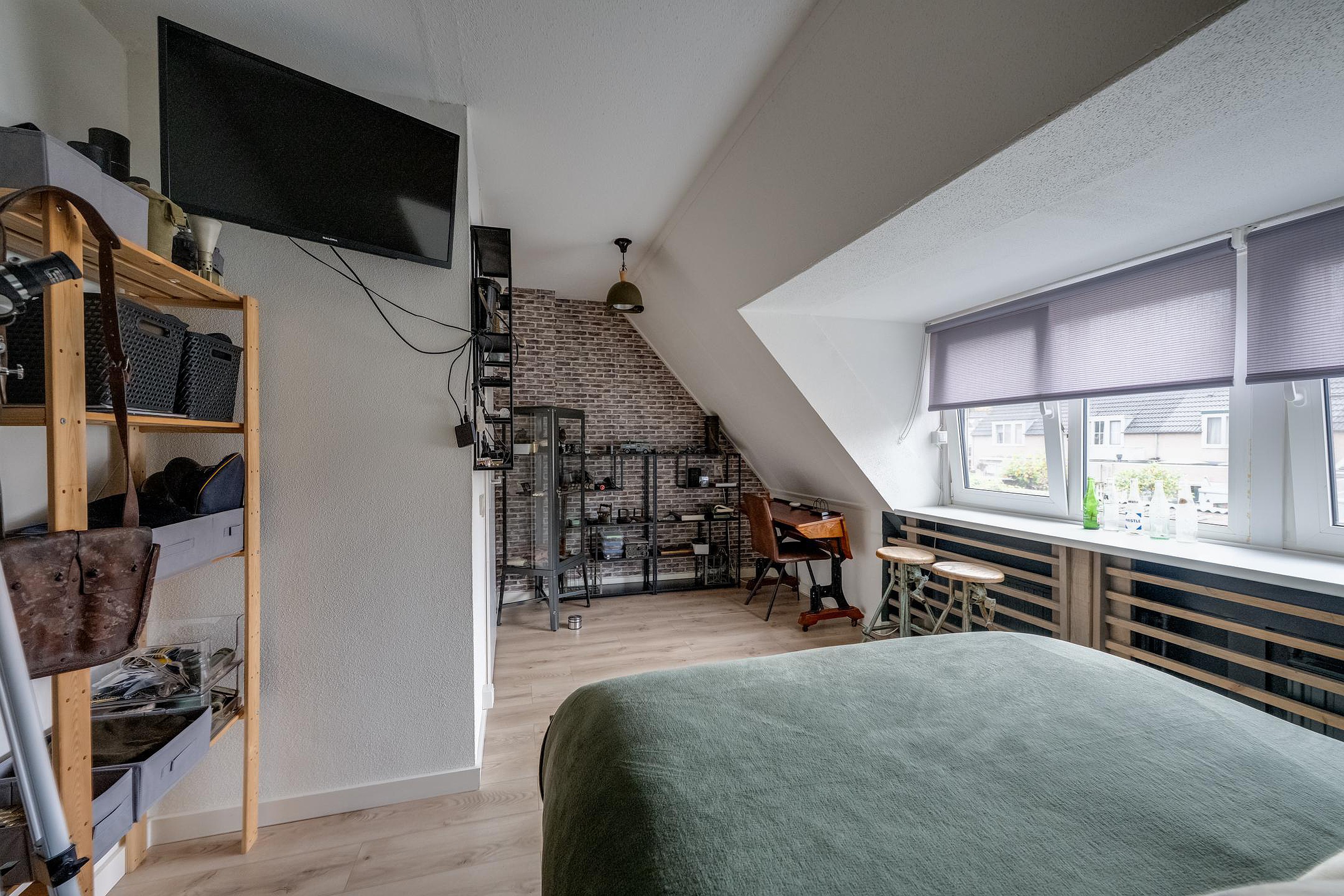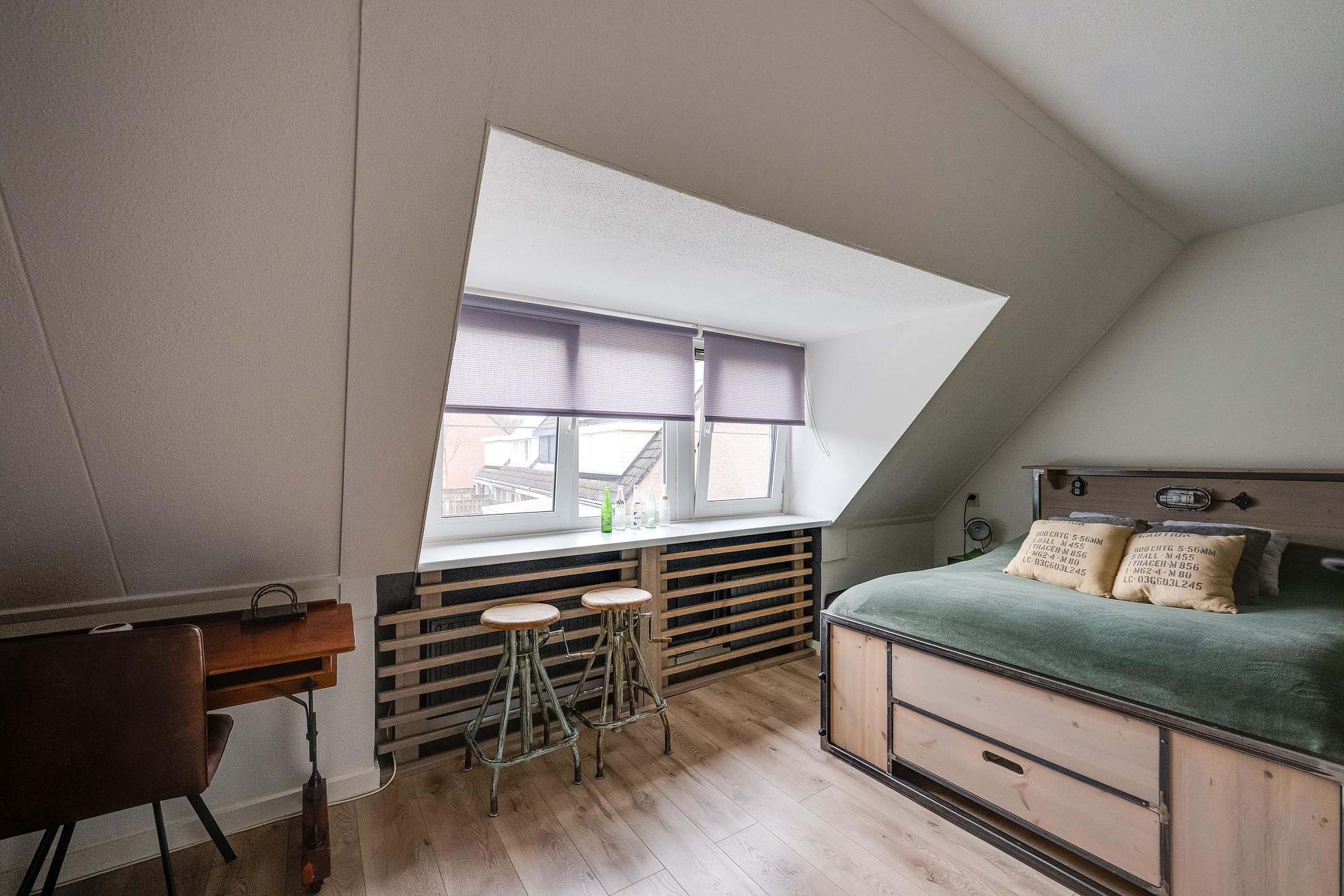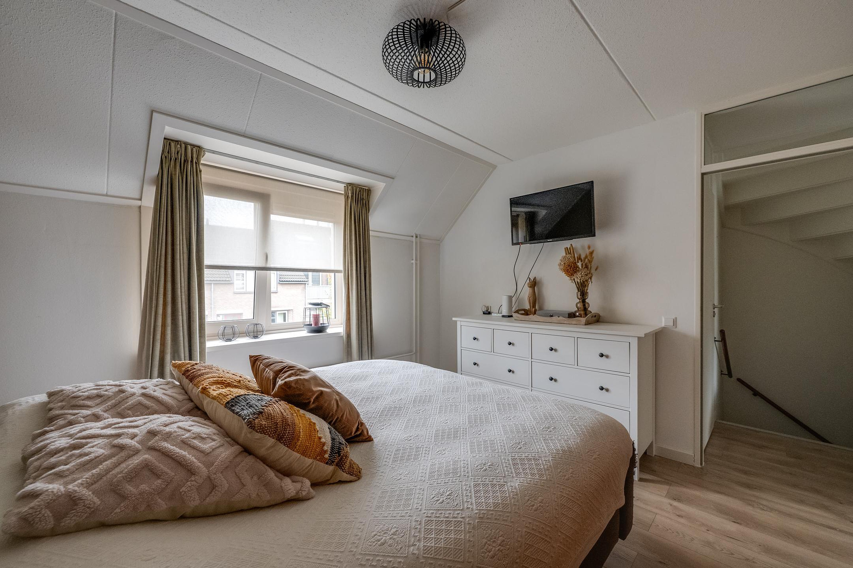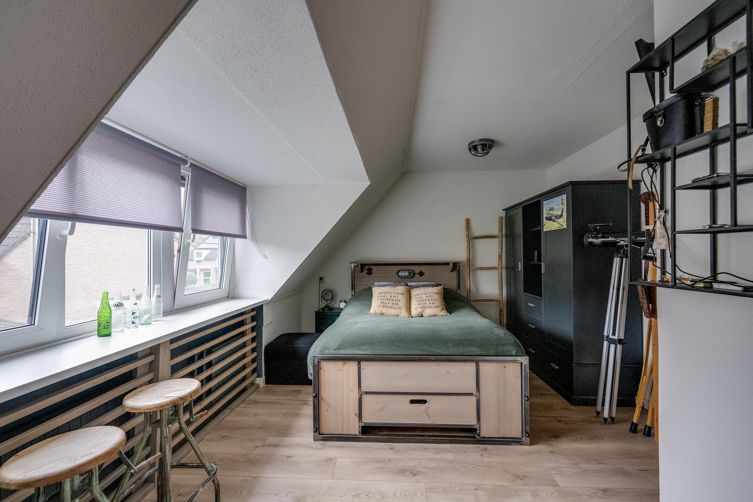 Deze ruime, lichte slaapkamer (5,32 m. x 3,44/2,47 m.) ligt aan de achterzijde van de woning. Er is een dakkapel geplaatst v.v. kunststof kozijnen met dubbel glas. Er is een tv-aansluiting aanwezig.