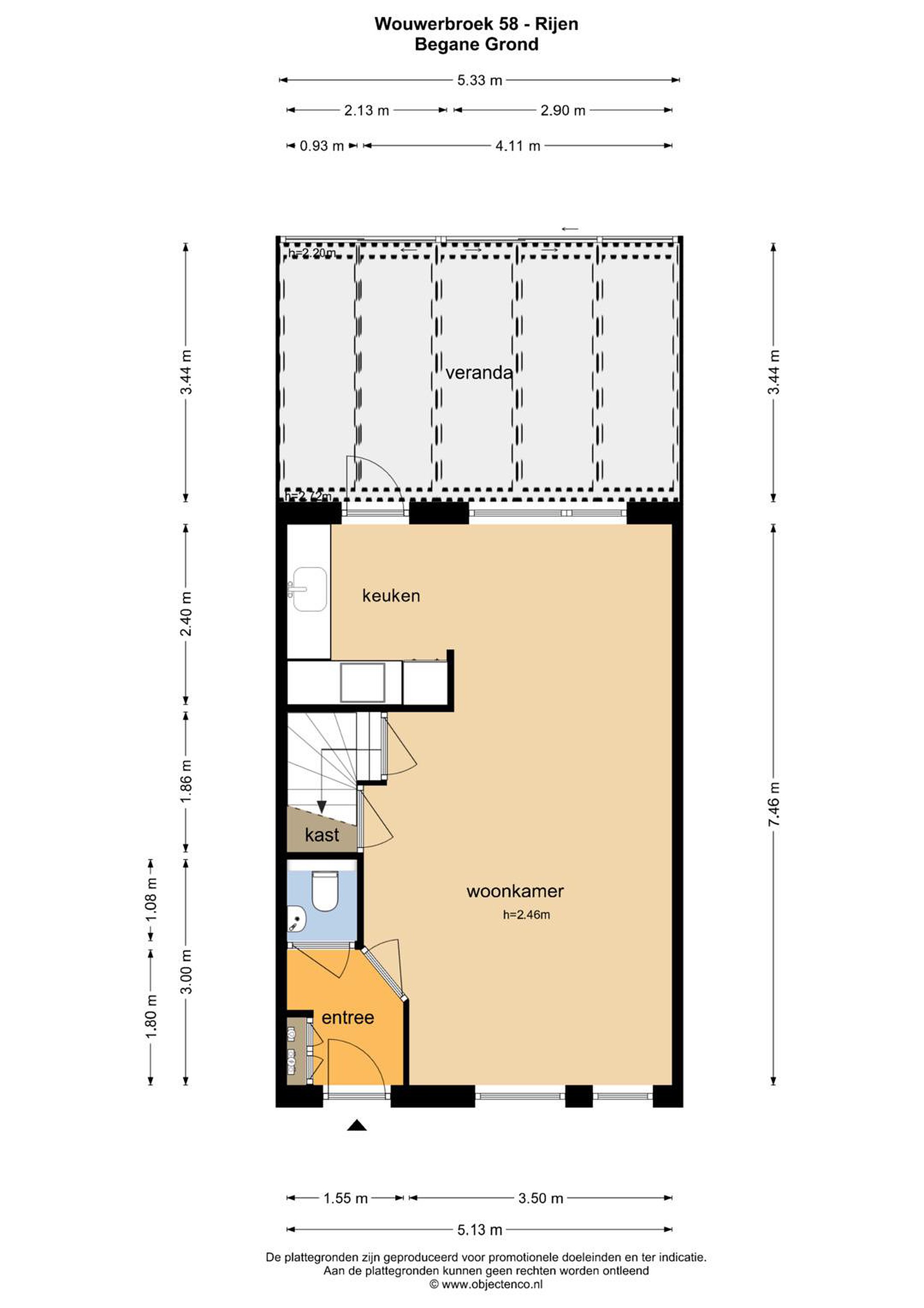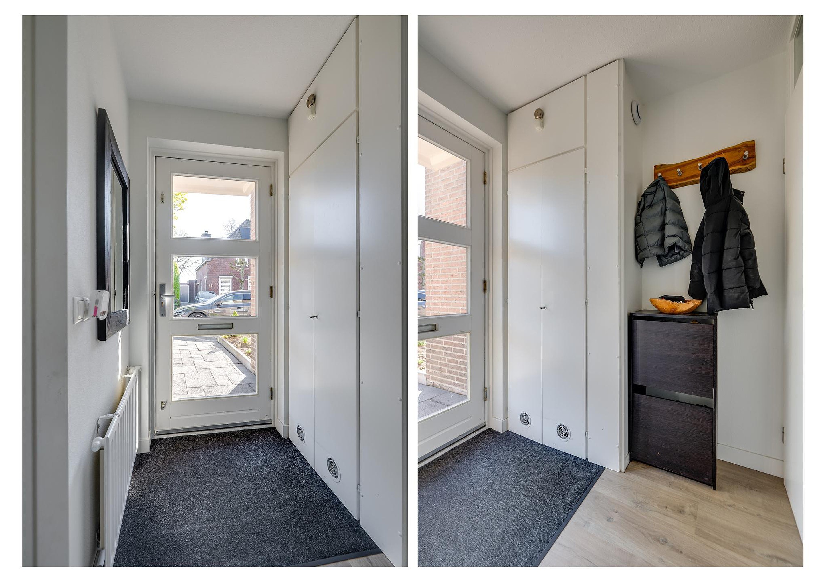 Begane grond Entree met garderobe, modern, zwevend toilet met fonteintje, meterkast (6 groepen, 2 aardlekschakelaars en glasvezel) en loopdeur naar woonkamer. In de entree ligt een laminaatvloer, welke doorgetrokken ligt over de gehele begane grond. Er is een ingang naar de kruipruimte.
