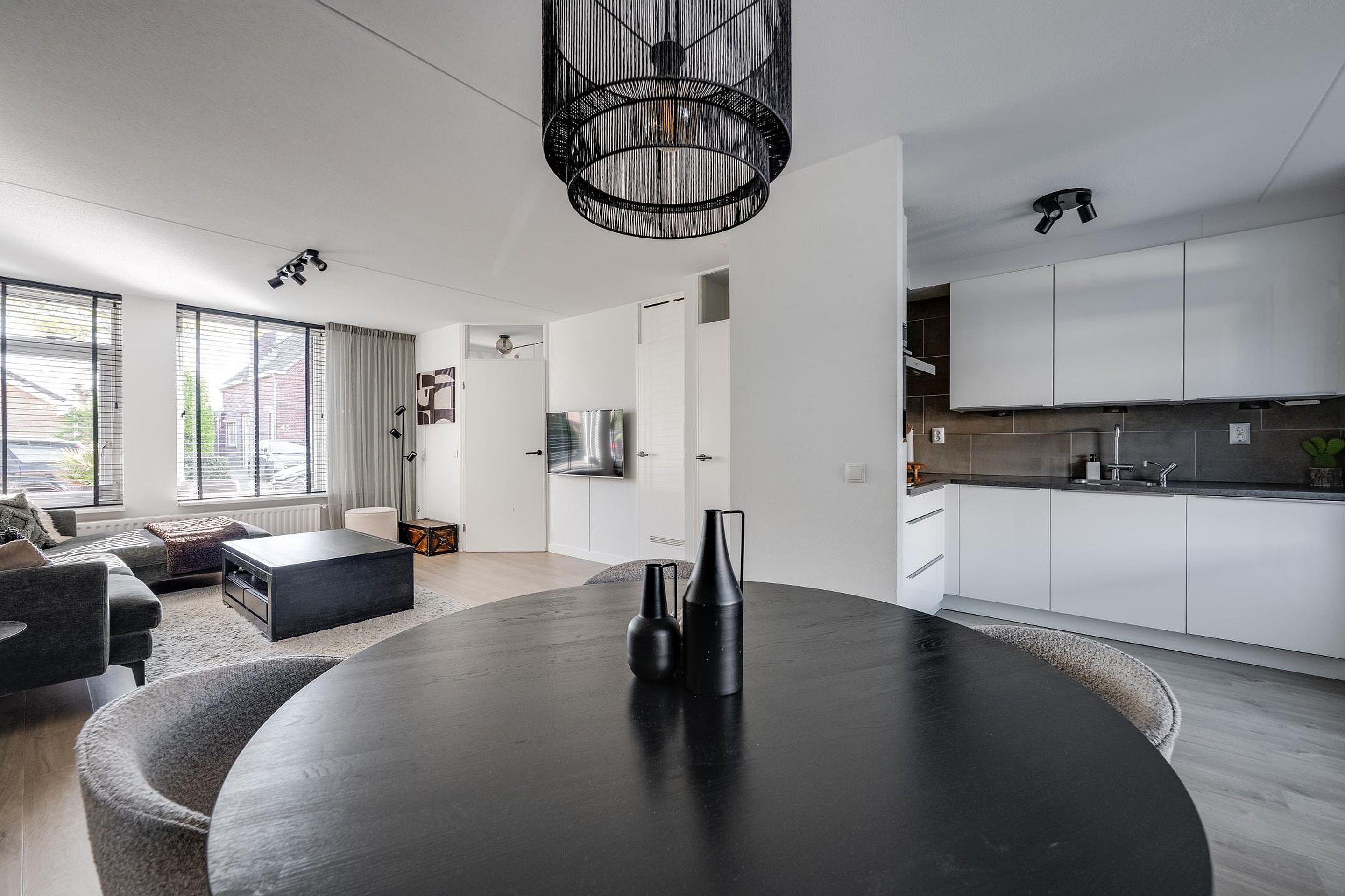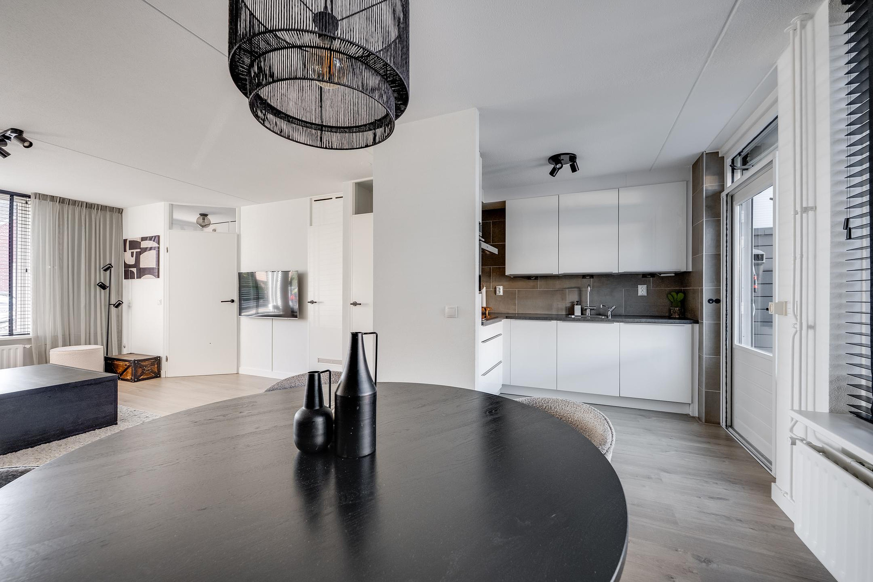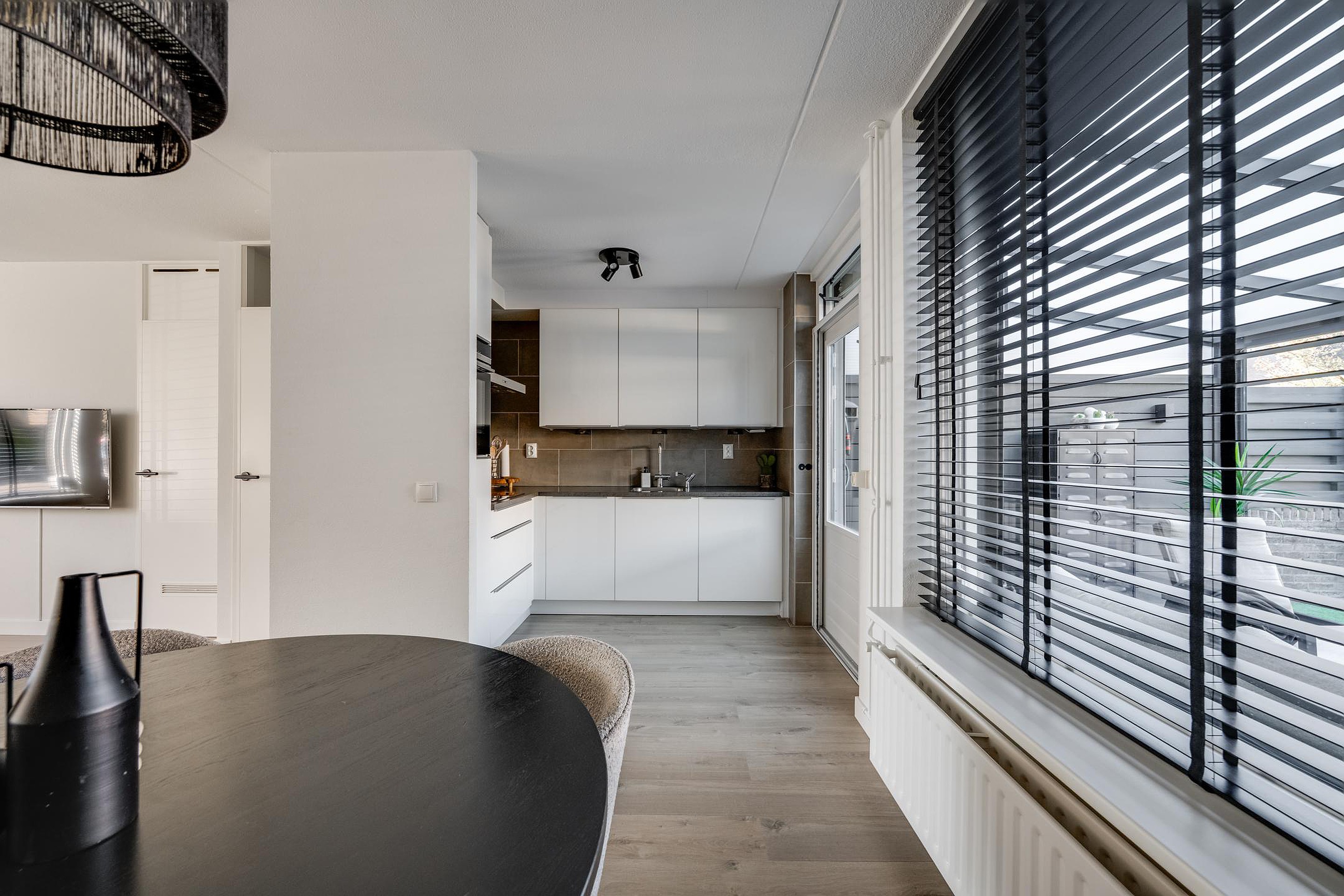 De keuken (2,40 m. x 2,13 m.) bevindt zich aan de achterzijde van de woning. Er staat een modern keukenblok in hoekopstelling. Er zijn zowel onder- als bovenkasten. De witte keuken is v.v. een koelkast, een vaatwasser, een combimagnetron, een 4-pits inductie kookplaat en een rvs afzuigkap. Er is een loopdeur (met schuifhor) naar de tuinserre.