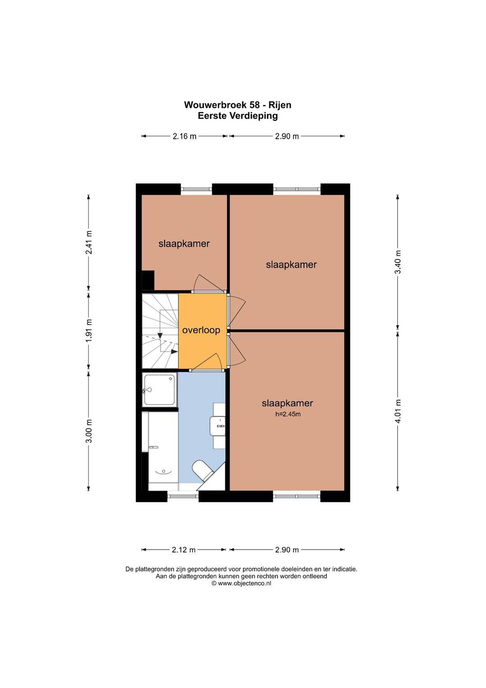Deze slaapkamer (3,40 m. x 2,90 m.) ligt aan de achterzijde van de woning.