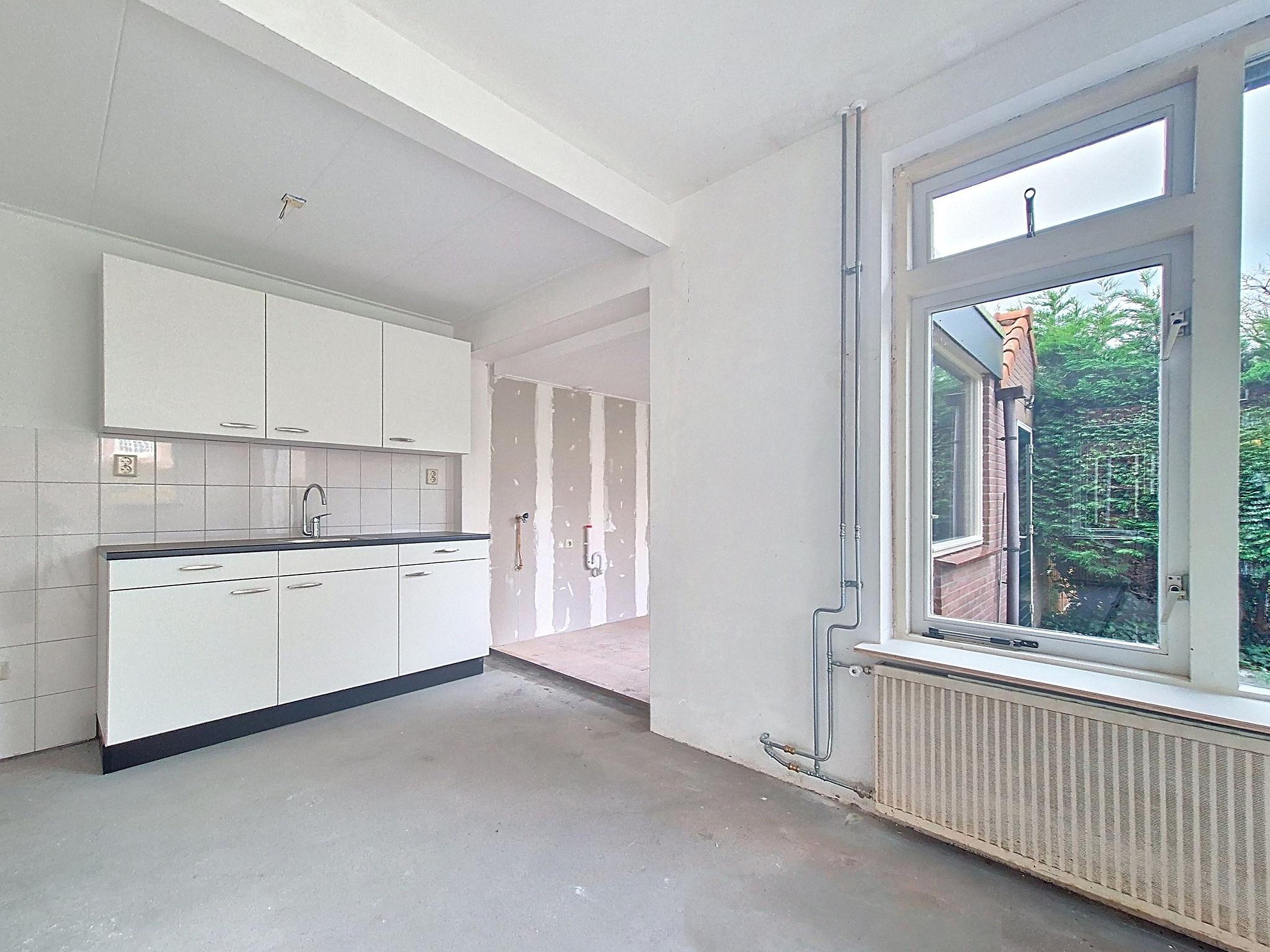 Begane grond Bij binnenkomst valt direct de lichte en ruime woonkamer op, dankzij de grote ramen aan de voor- én achterzijde geniet je hier van veel daglicht. De open keuken in rechte opstelling is recent vernieuwd. Aan de achterzijde van de woning is ruimte voor een praktische eethoek of misschien juist wel voor de keuken. Hier is ook de deur naar de tuin. Er is een nieuwe cement dekvloer aangebracht en de woonruimte is voorzien van nieuw HR++ glas.