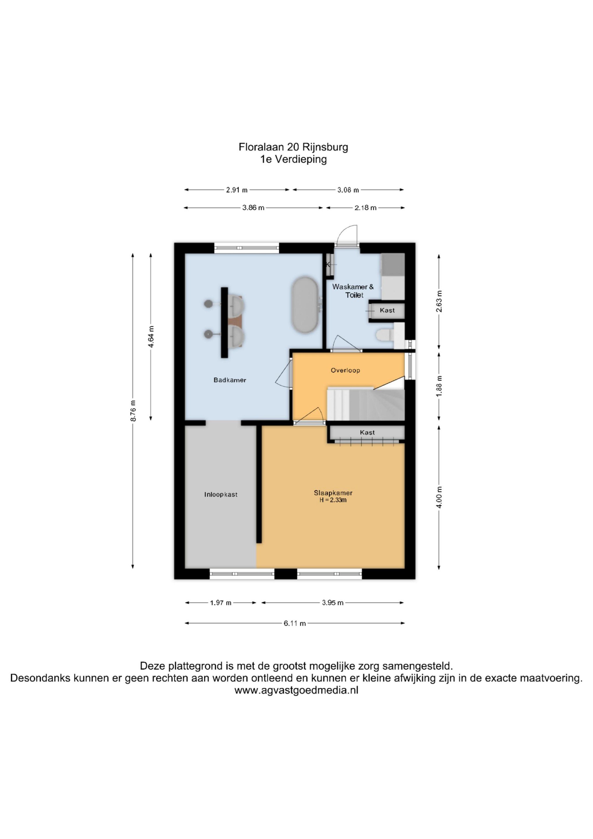 Aan de voorzijde ligt de slaapkamer, opgezet als een echte privésuite. Een slimme scheidingswand met ruimte voor televisie creëert geborgenheid en comfort. Aansluitend bevindt zich een prachtige walk-in closet, bereikbaar vanuit zowel de slaapkamer als de badkamer, slim afgescheiden en perfect geïntegreerd. De badkamer zelf voelt als een luxe spa: een vrijstaand ligbad, een royaal dubbel wastafelmeubel en een dubbele inloopdouche waar je zo binnenstapt. Hoogwaardige materialen, royale afmetingen en een perfecte indeling maken dit tot een ruimte die dagelijks voelt als een verwenmoment.