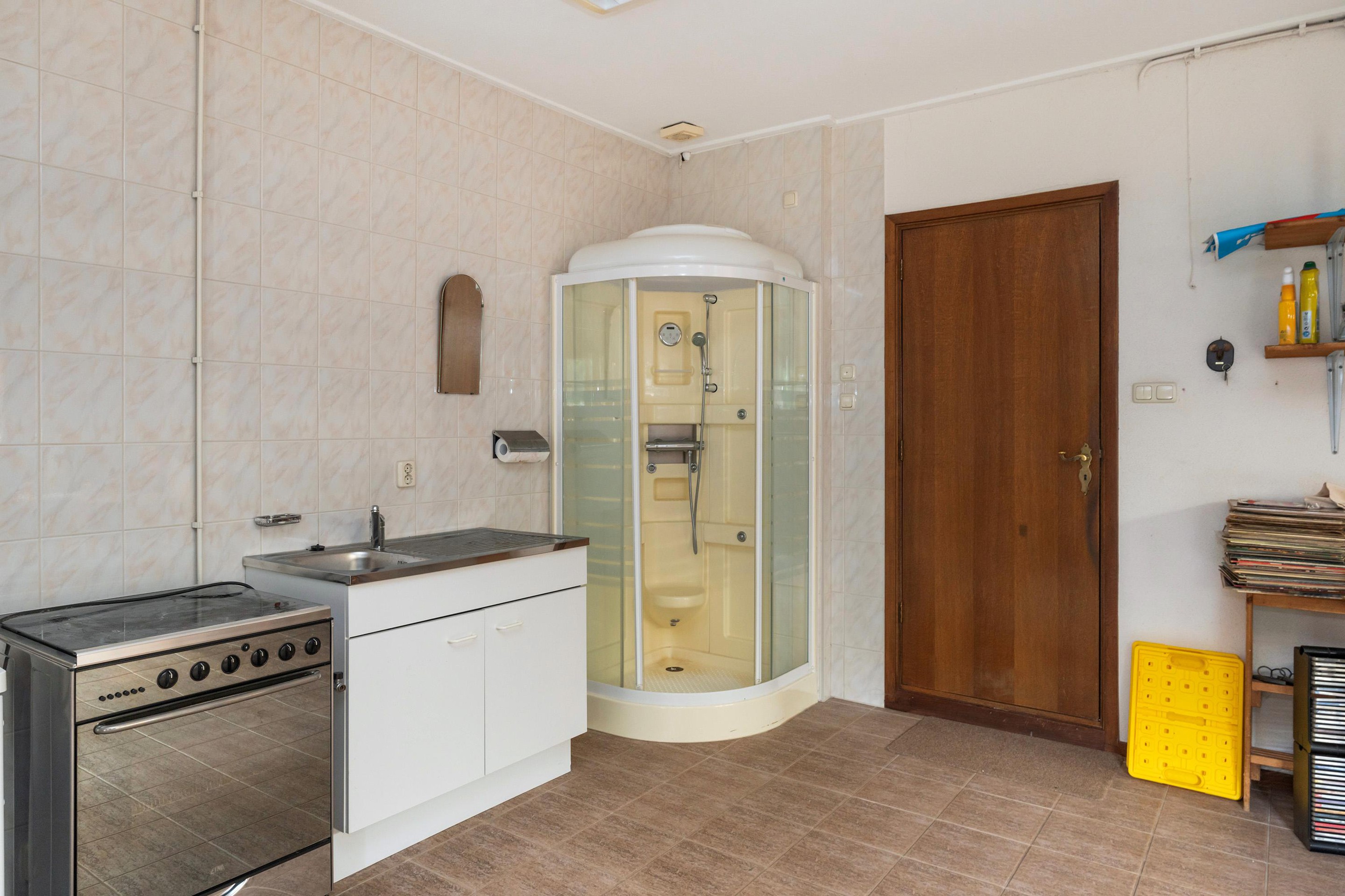 De ruime woonkeuken is functioneel opgezet in een hoekopstelling en beschikt over diverse inbouwapparatuur en voldoende ruimte voor een eethoek. De keuken heeft directe toegang tot de aangebouwde garage/berging, voorheen in gebruik als bollenschuur (ca. 46 m2). Hier vindt u een keukenblok, douchegelegenheid, opstelling CV en toegang tot de bovenliggende zolderverdieping.