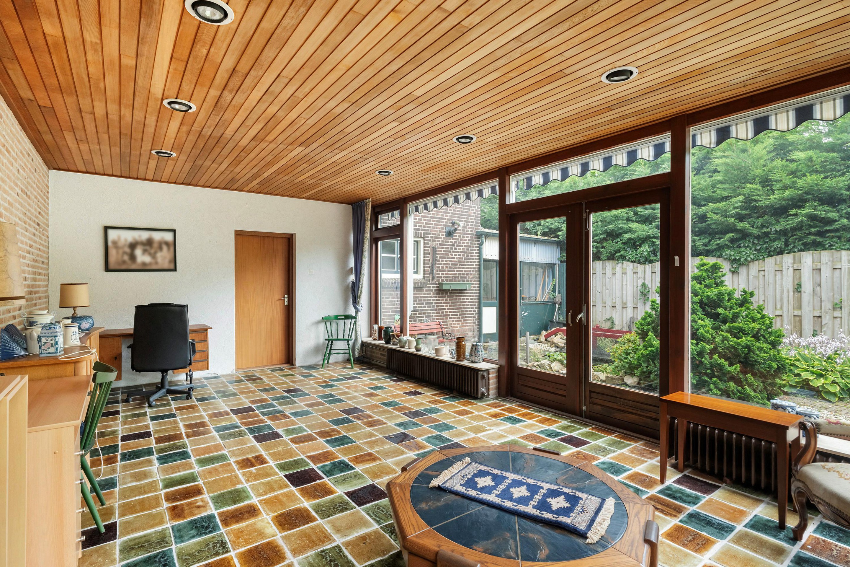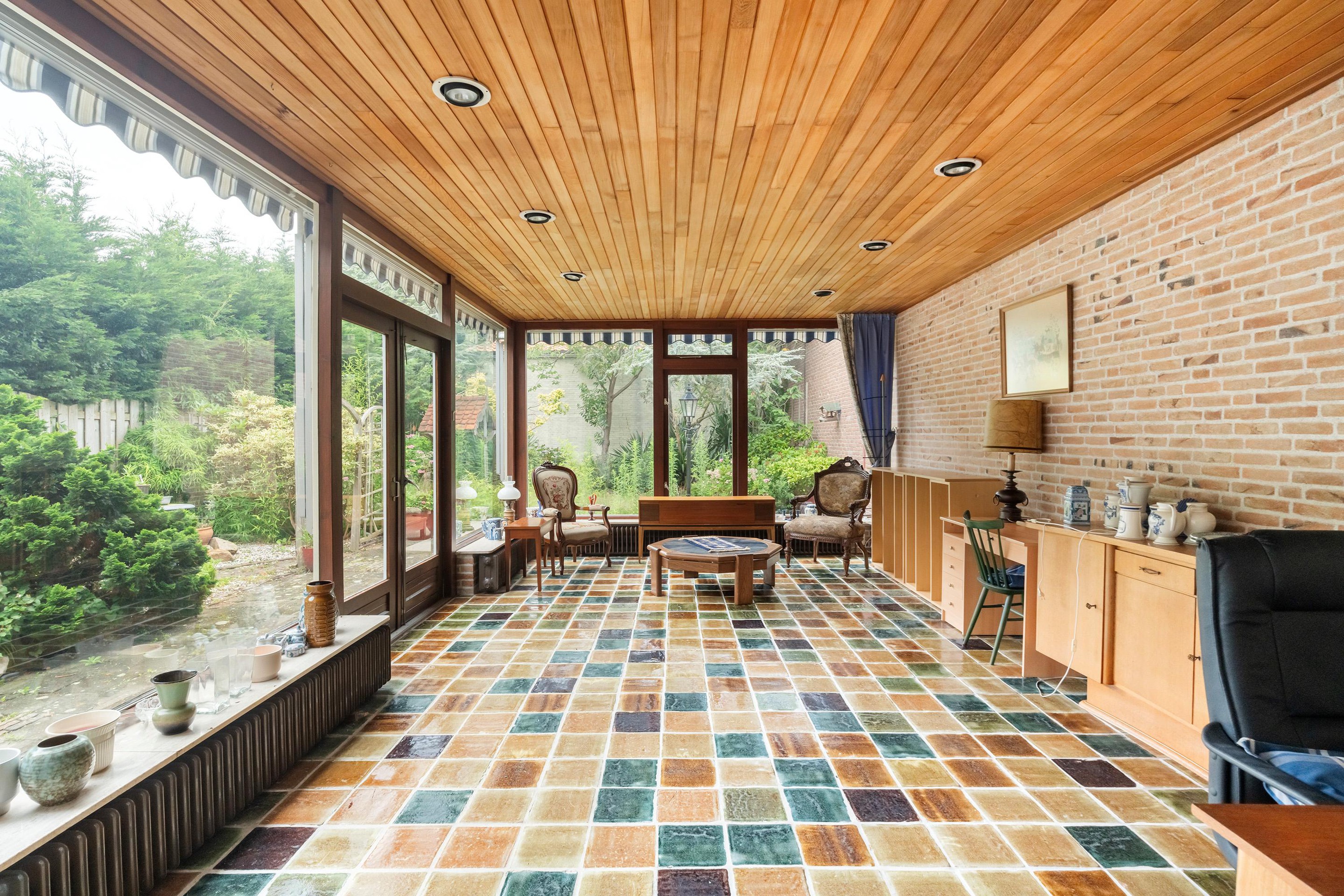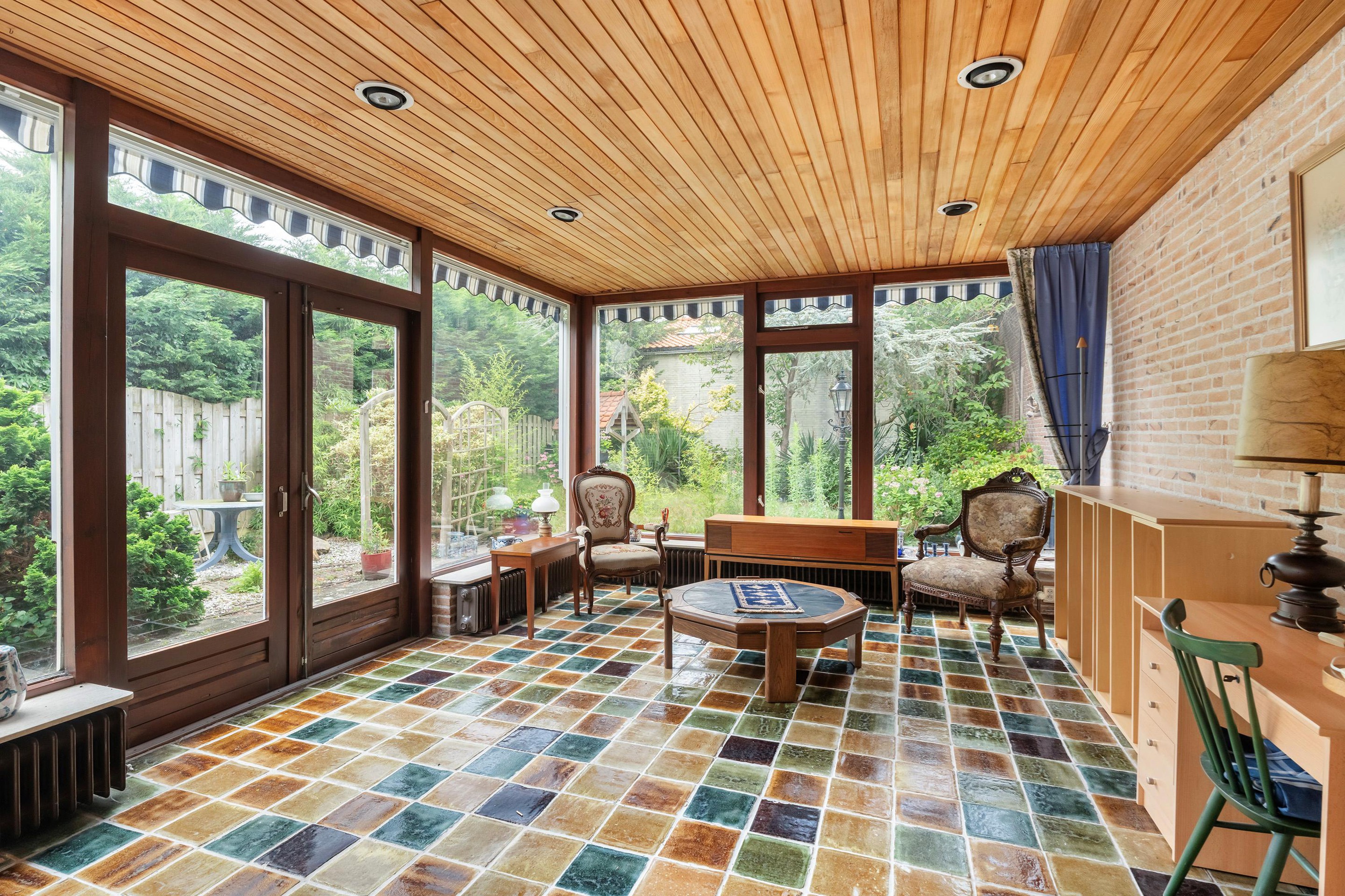 Achter de berging is een serre van ca. 29 m2 aangebouwd, met openslaande deuren naar de achtertuin. Een heerlijke plek om ook op koelere dagen van het buitenleven te genieten.