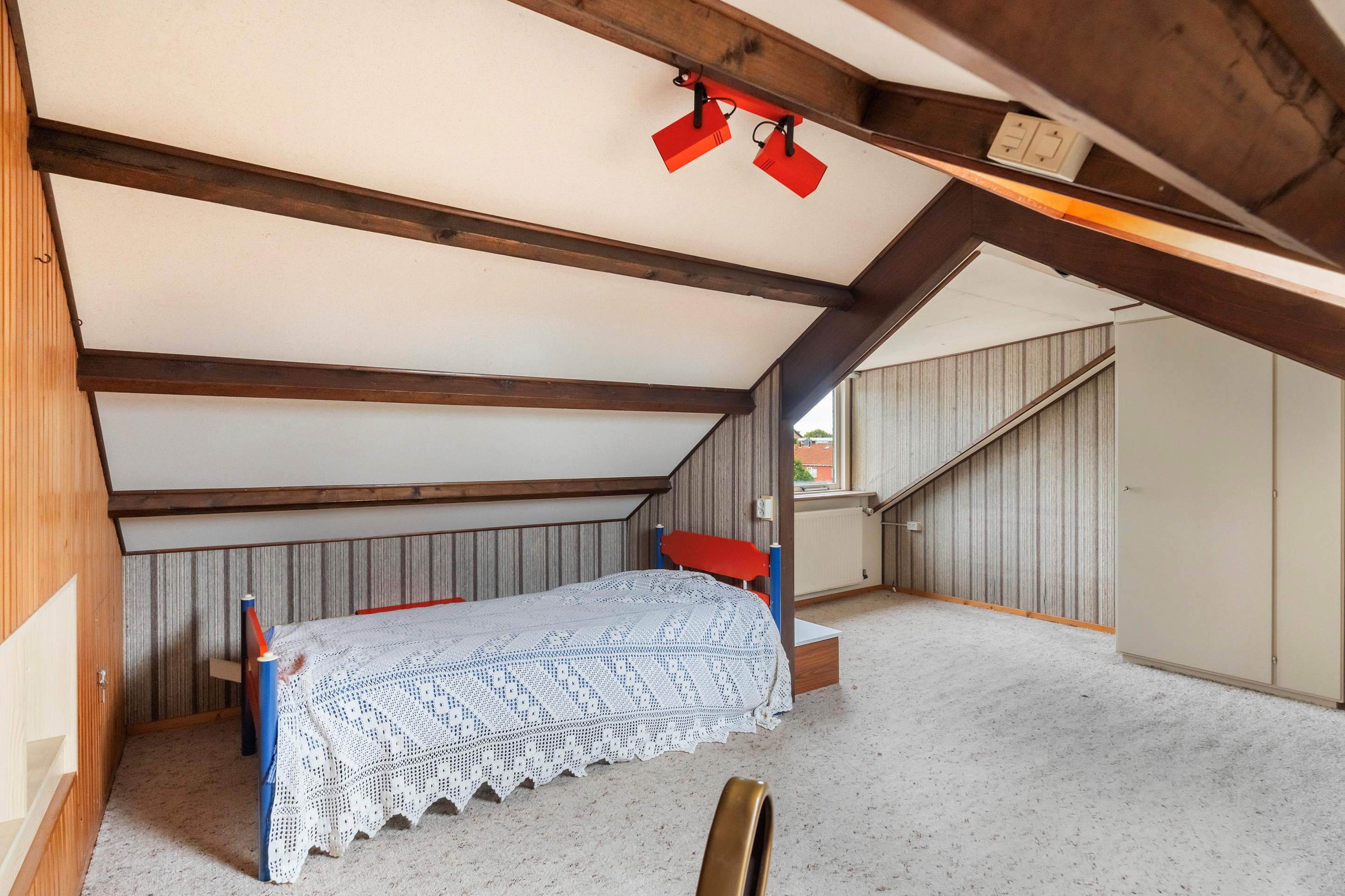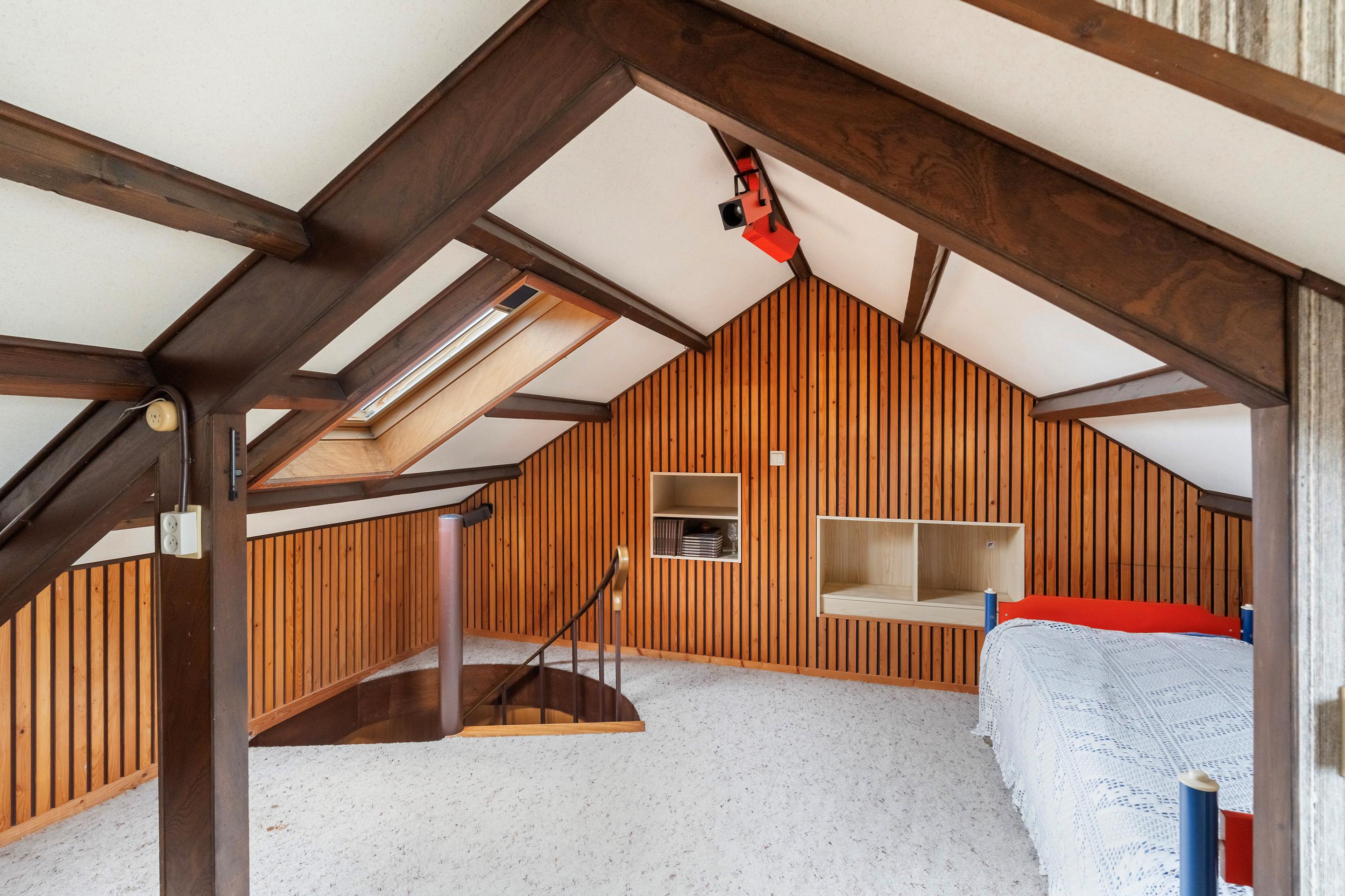 Op de zolderverdieping treft u de vijfde slaapkamer, voorzien van een dakkapel en extra dakraam. Deze ruimte is ideaal als logeer- of werkkamer.