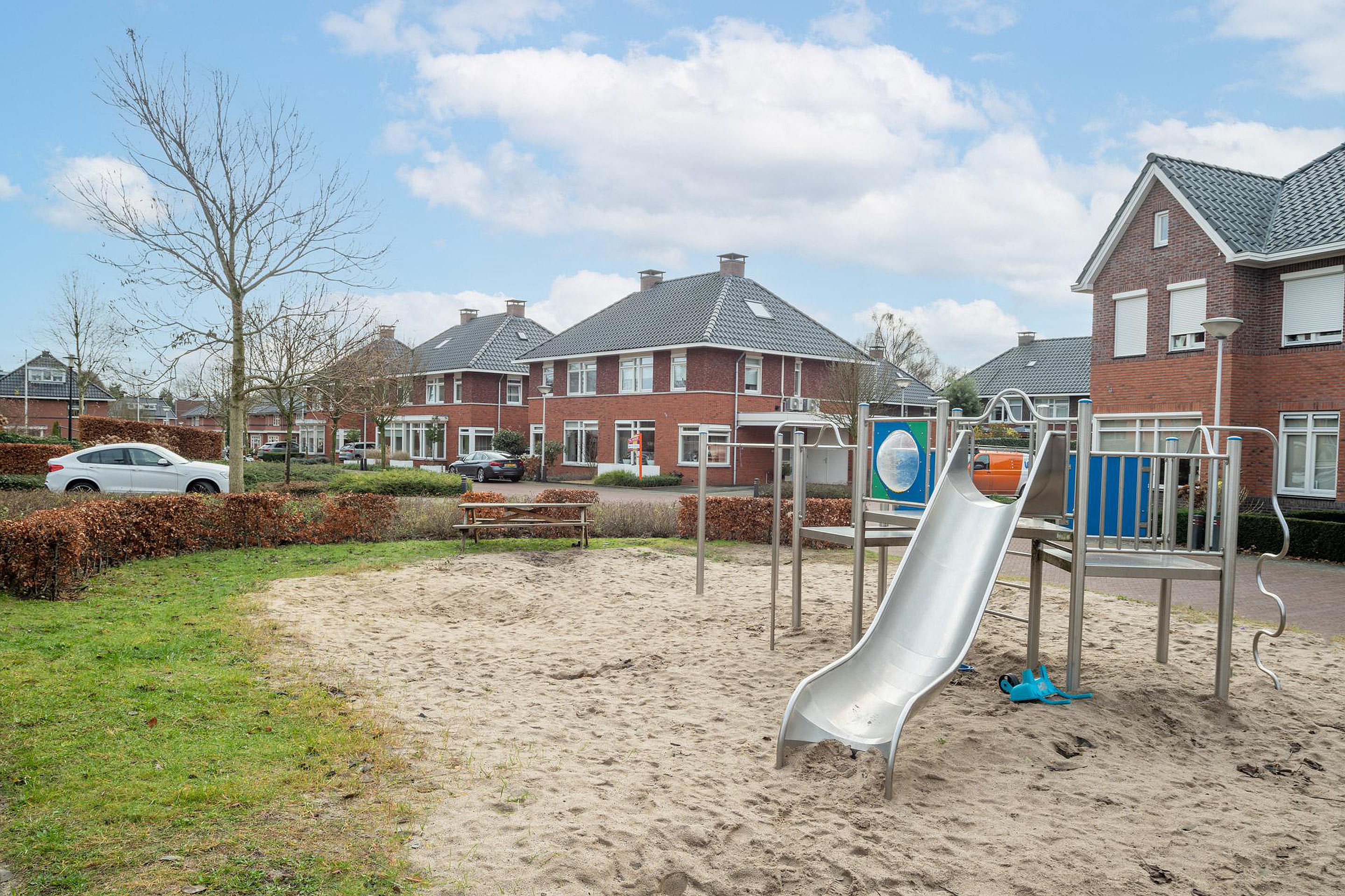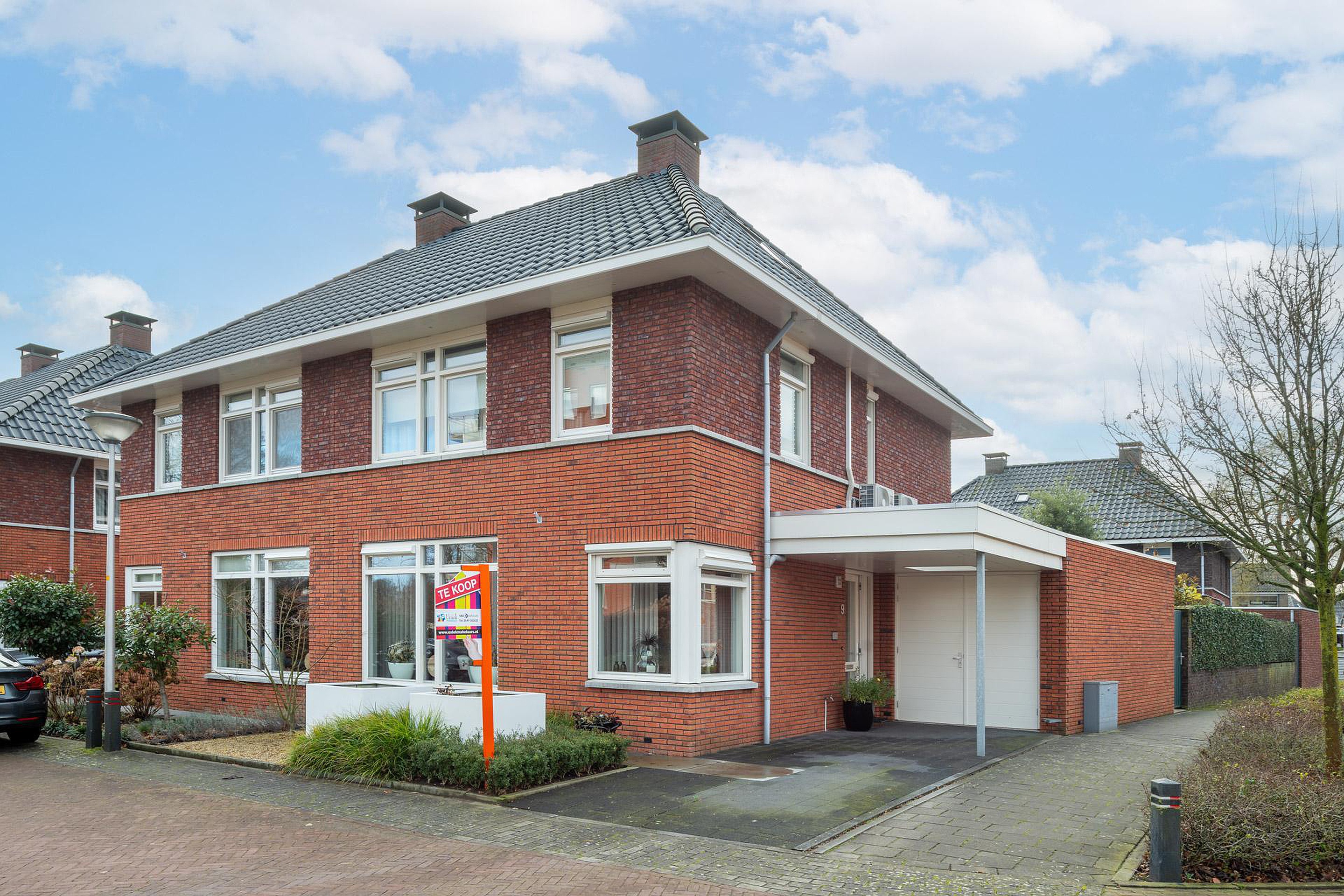 Aan de voorzijde beschikt de woning over een eigen oprit voorzien van carport.