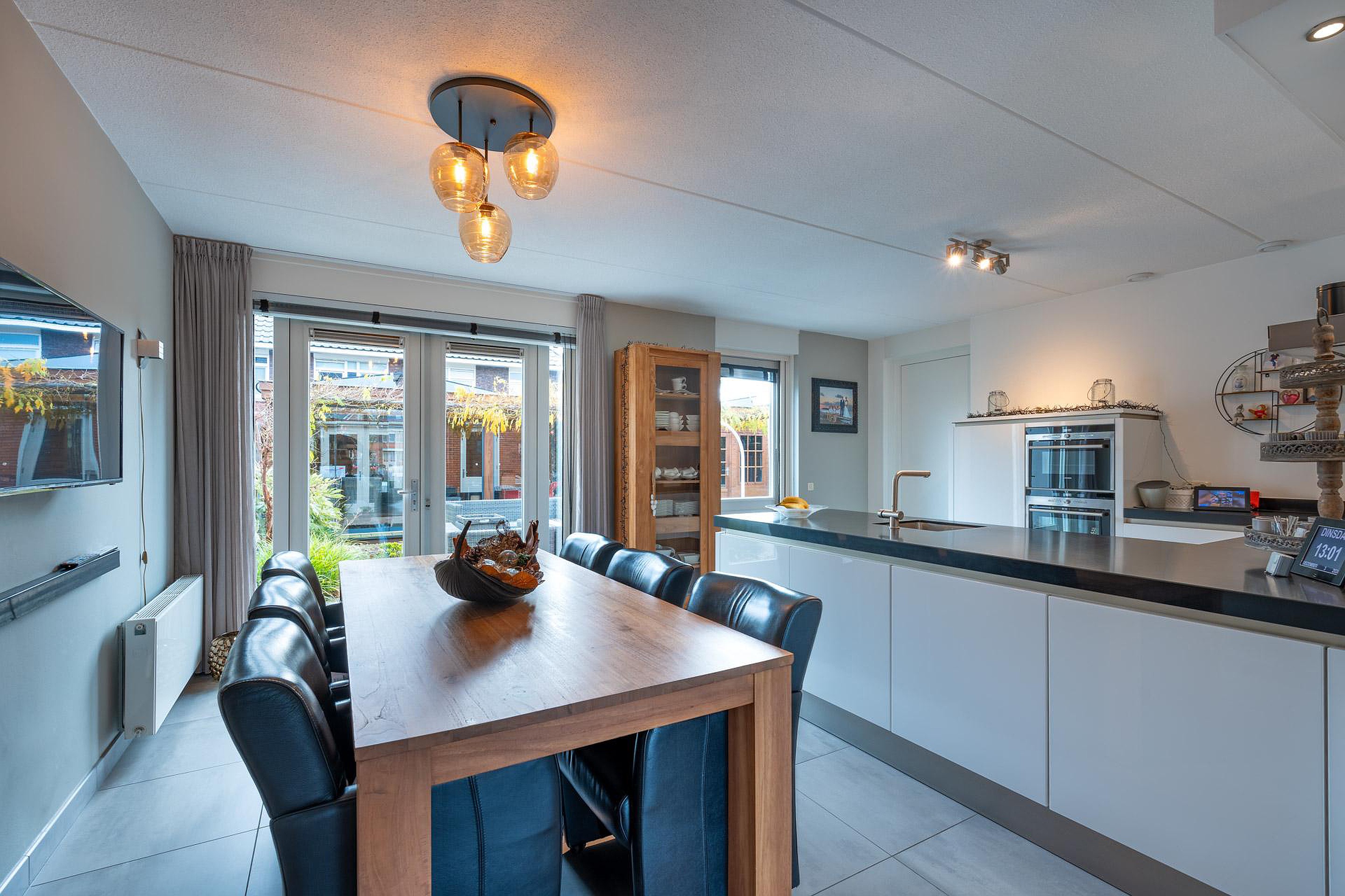 ‐ Keuken met openslaande terrasdeuren naar de achtertuin;