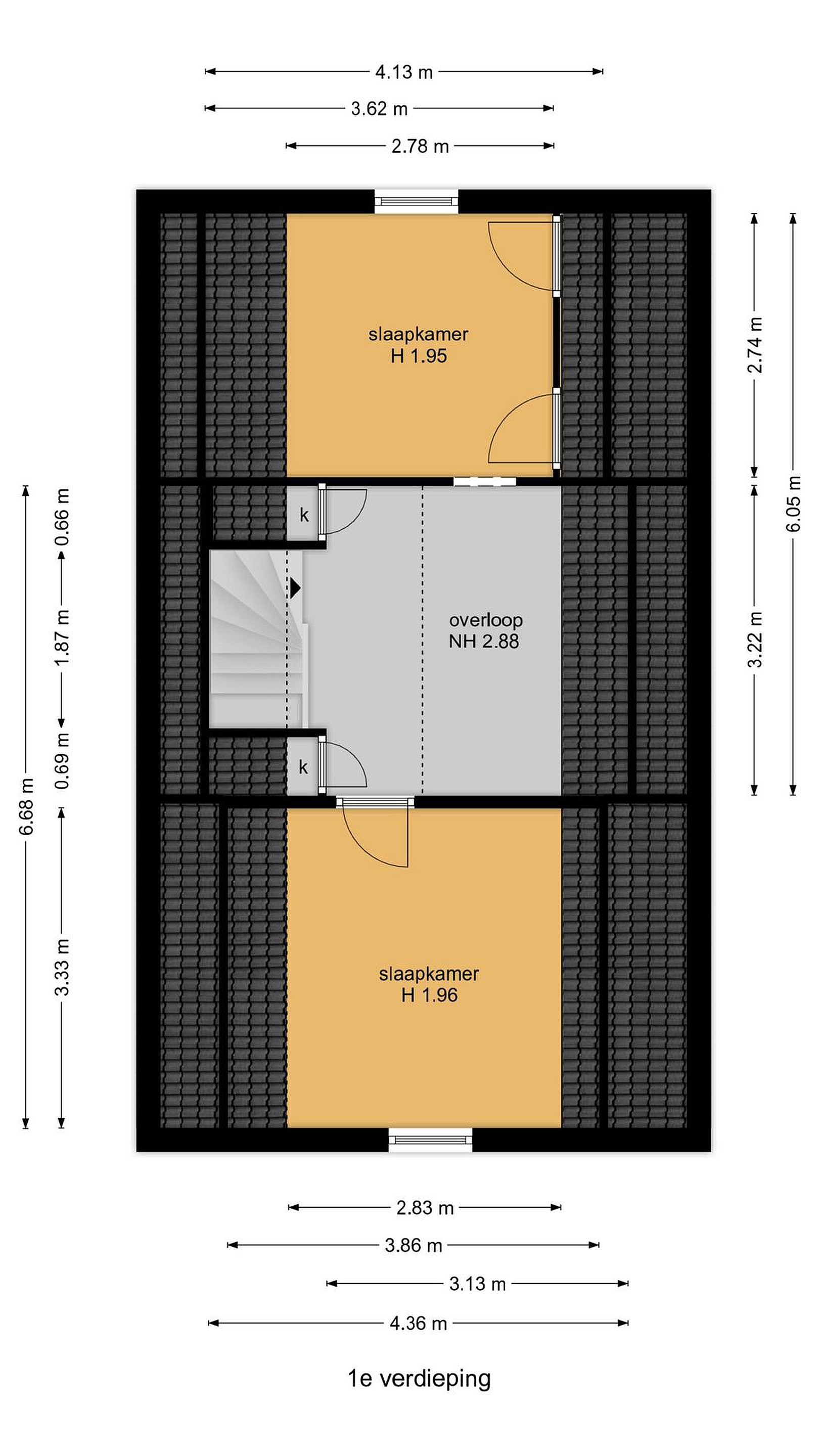 Overloop en aan beide zijden 1 slaapkamer.