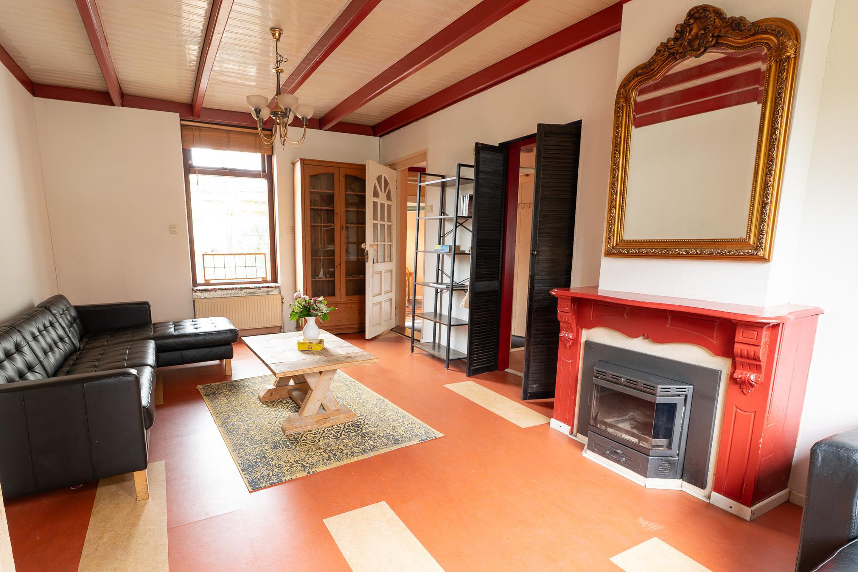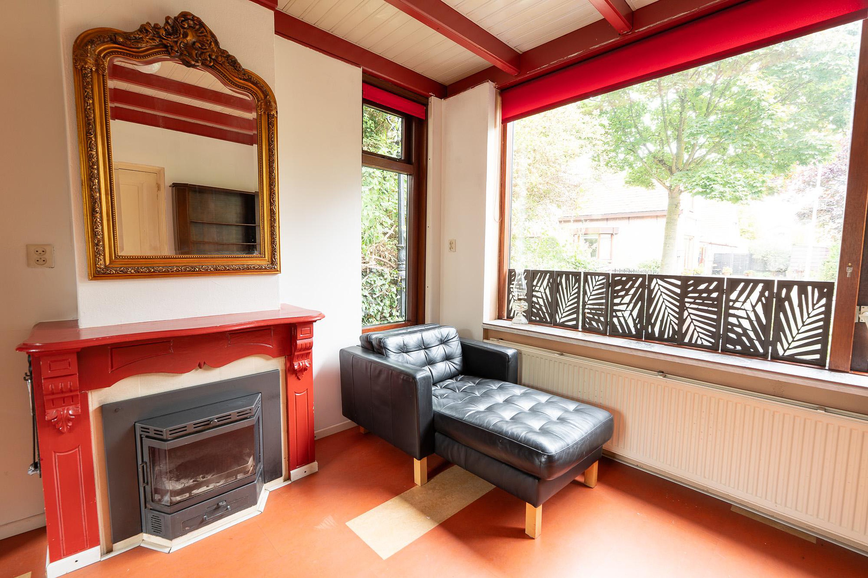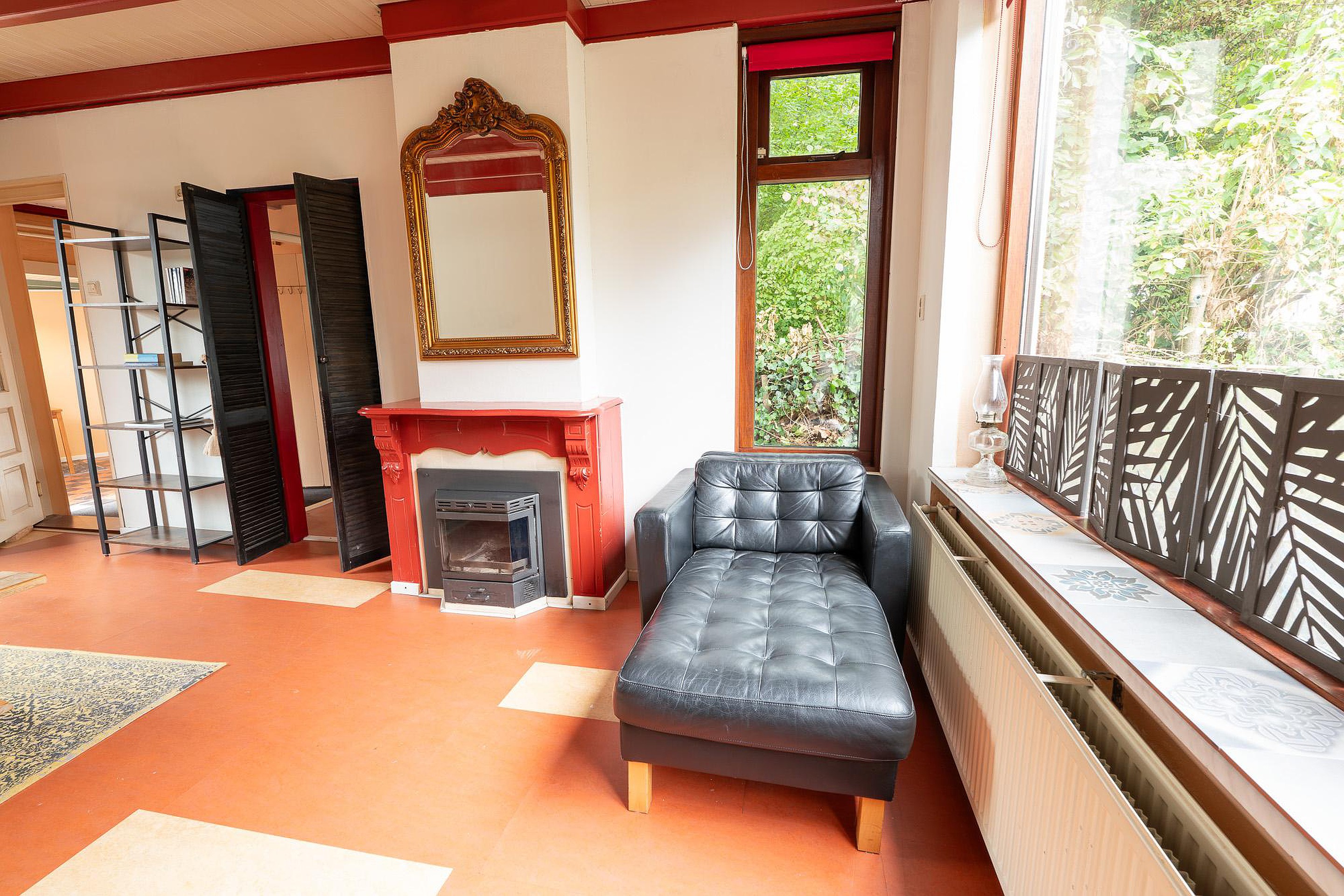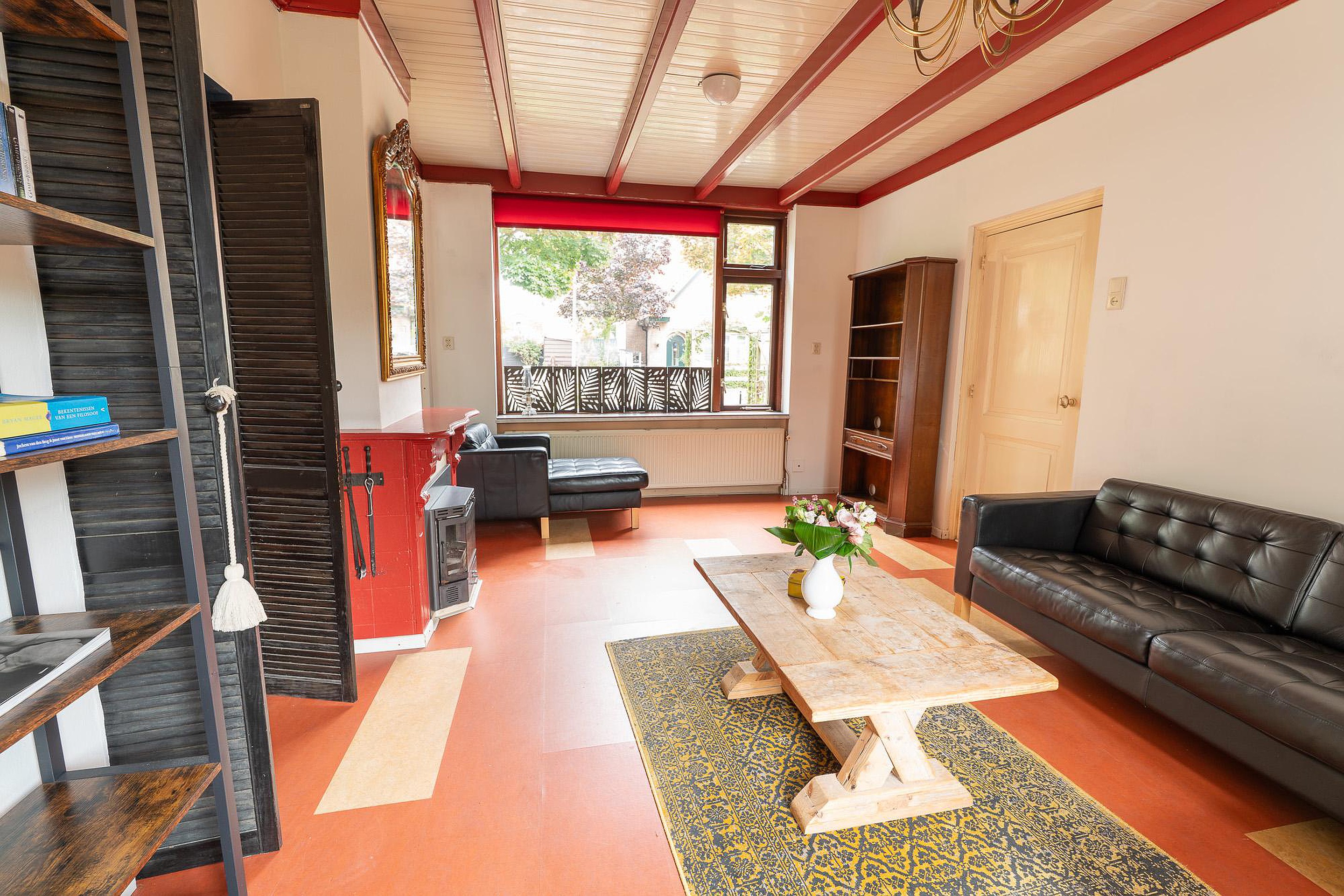 Begane grond De entree van de woning is een ware blikvanger. De hal heeft een authentieke, antieke tegelvloer en een onlangs vervangen, geïsoleerde buitendeur die de oorspronkelijke uitstraling eer aandoet. Vanuit de hal stapt u in de sfeervolle woonkamer, een ruimte waar gezelligheid de boventoon voert. De hoge ramen zorgen voor een overvloed aan natuurlijk licht en bieden een prachtig uitzicht op zowel de ruime voortuin als de besloten achtertuin. De haard vormt het kloppende hart van de kamer en nodigt uit tot lange avonden van ontspanning.
