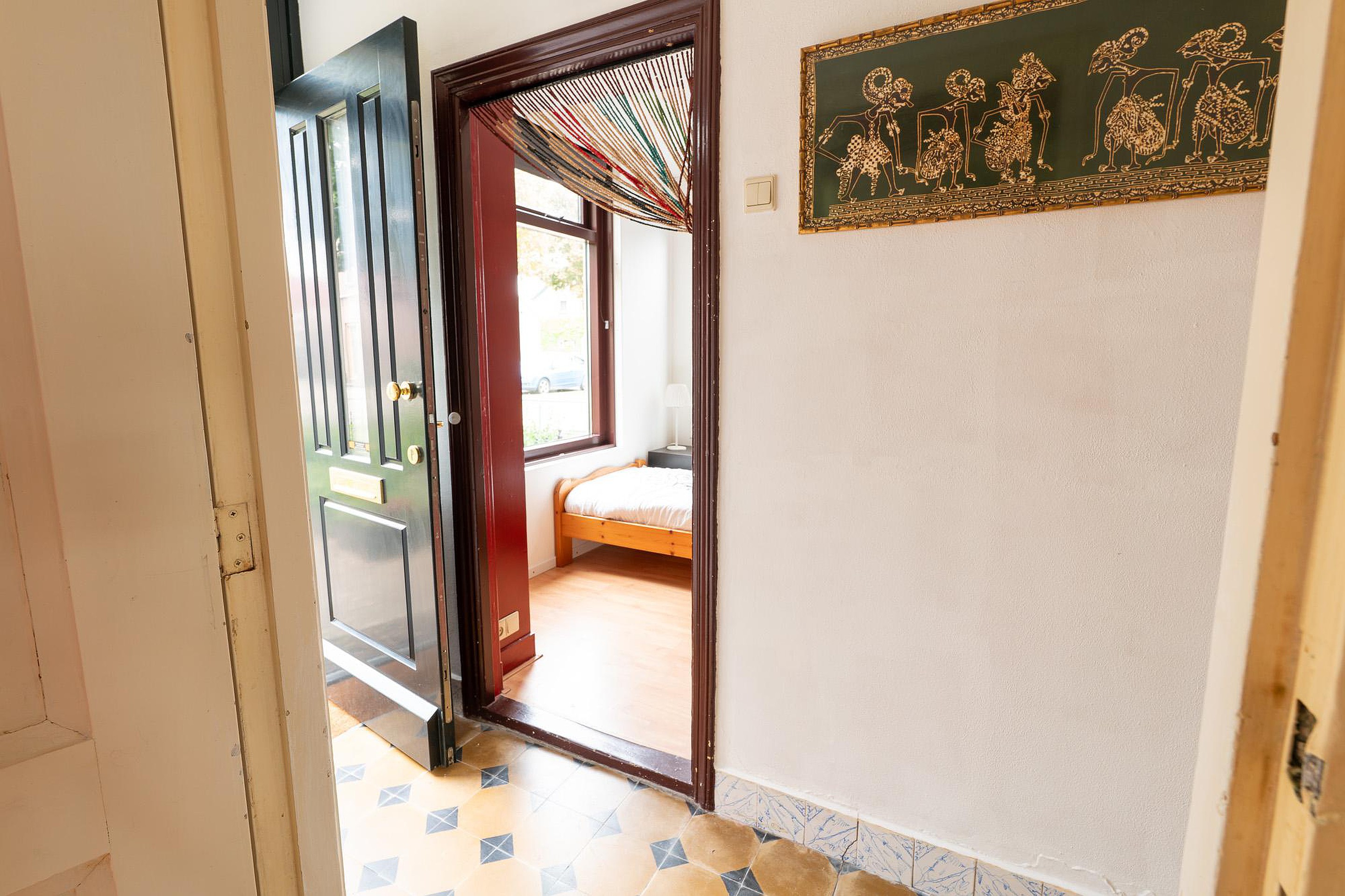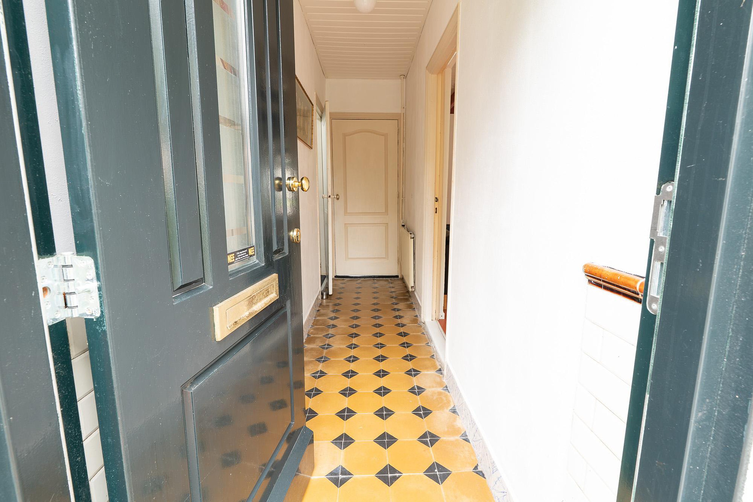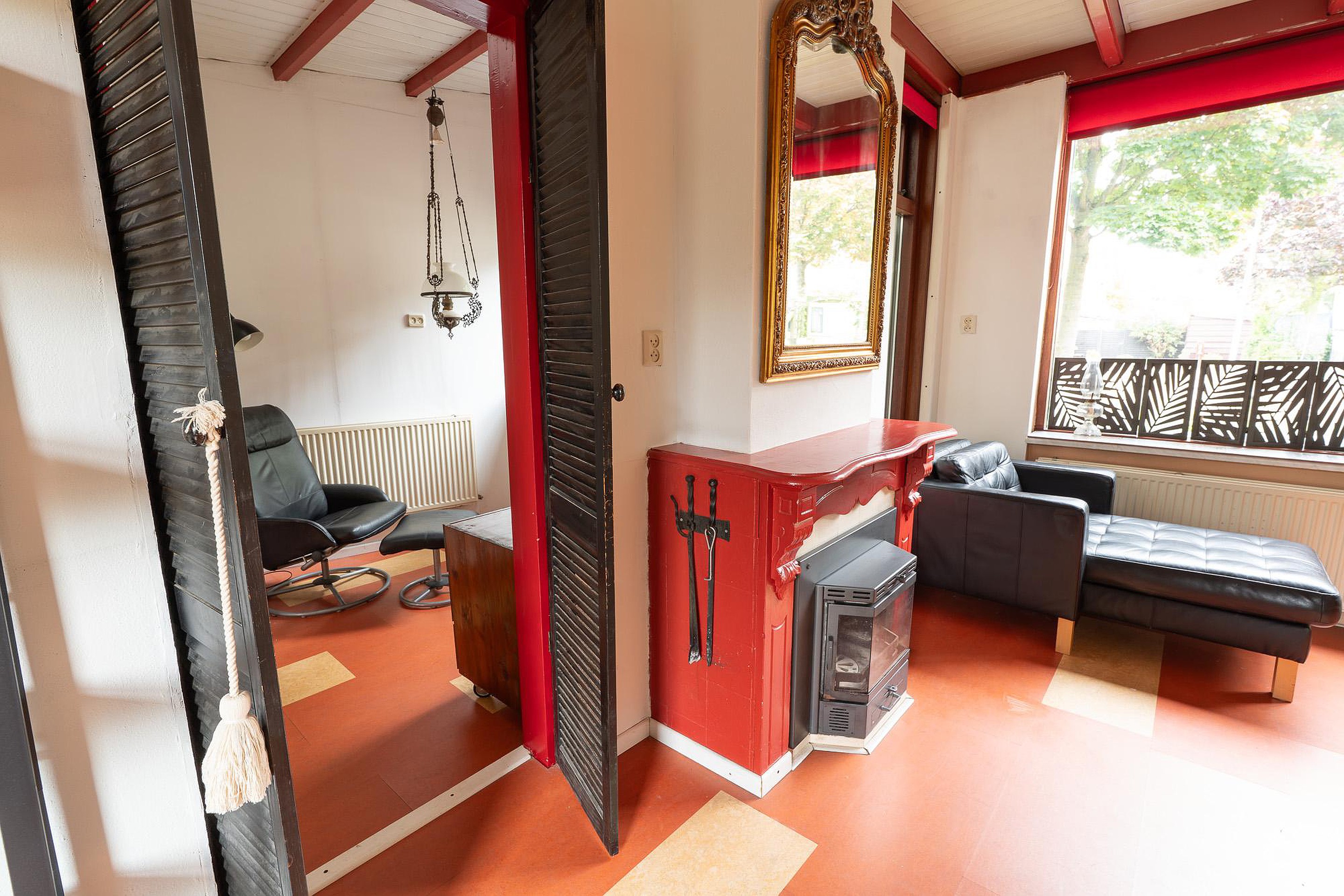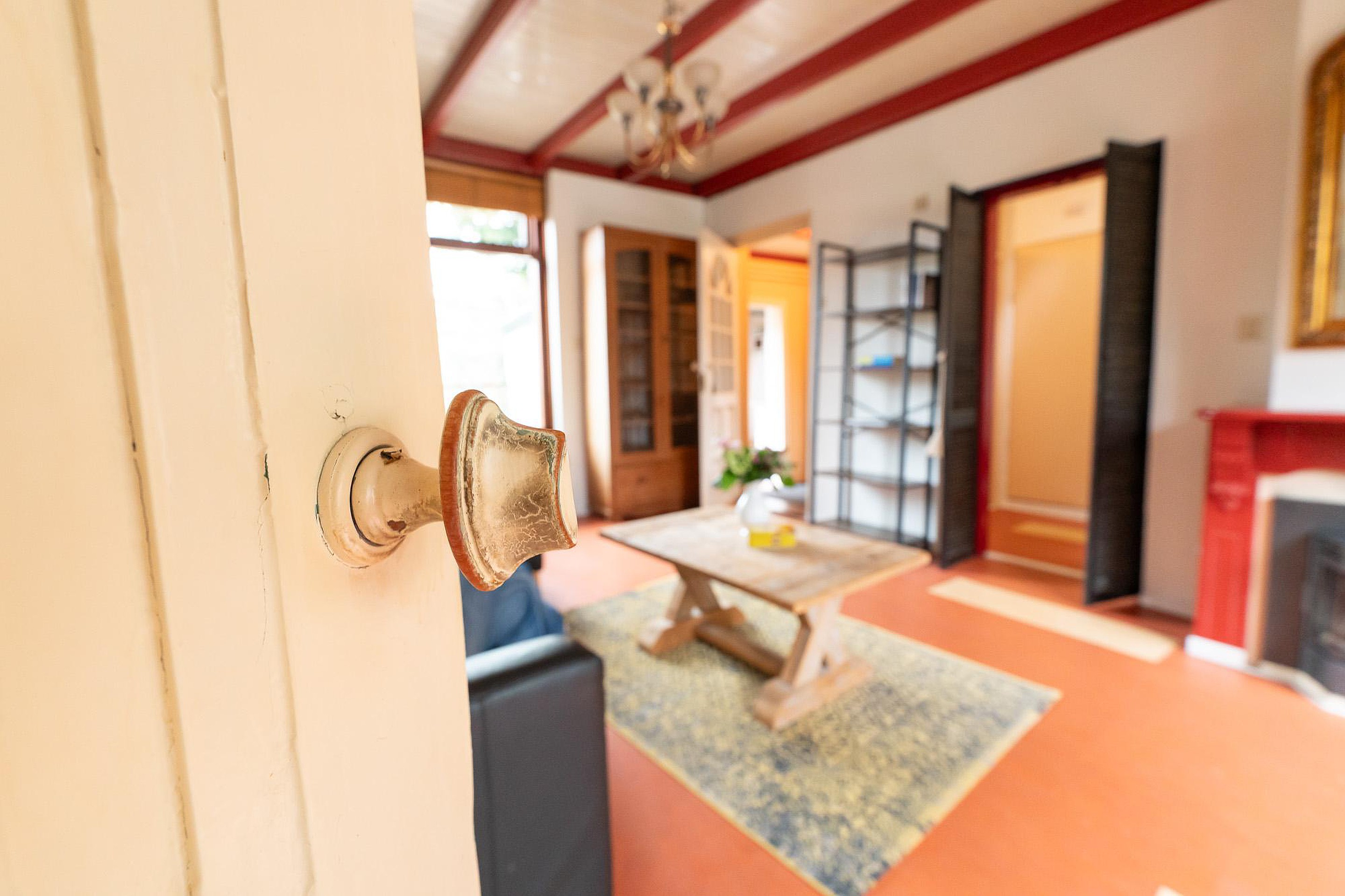 Begane grond De entree van de woning is een ware blikvanger. De hal heeft een authentieke, antieke tegelvloer en een onlangs vervangen, geïsoleerde buitendeur die de oorspronkelijke uitstraling eer aandoet. Vanuit de hal stapt u in de sfeervolle woonkamer, een ruimte waar gezelligheid de boventoon voert. De hoge ramen zorgen voor een overvloed aan natuurlijk licht en bieden een prachtig uitzicht op zowel de ruime voortuin als de besloten achtertuin. De haard vormt het kloppende hart van de kamer en nodigt uit tot lange avonden van ontspanning.