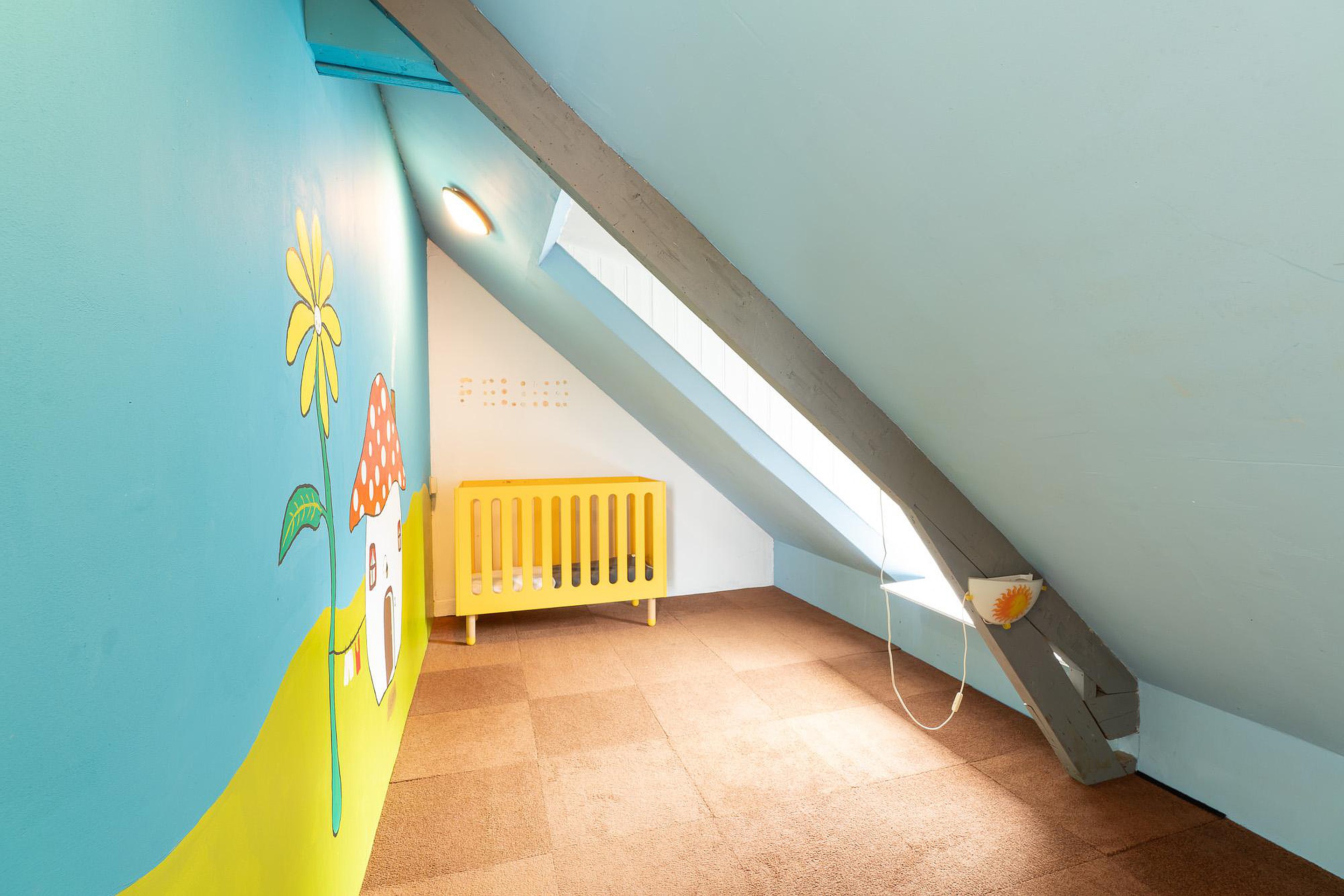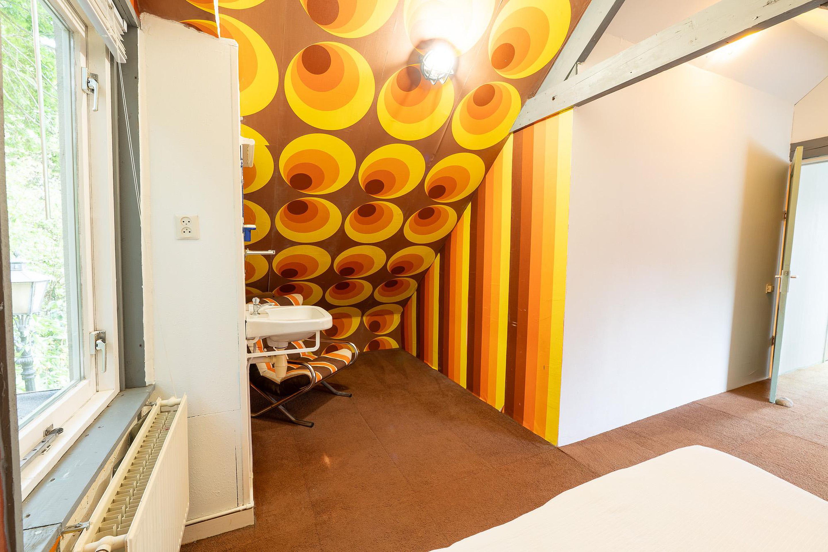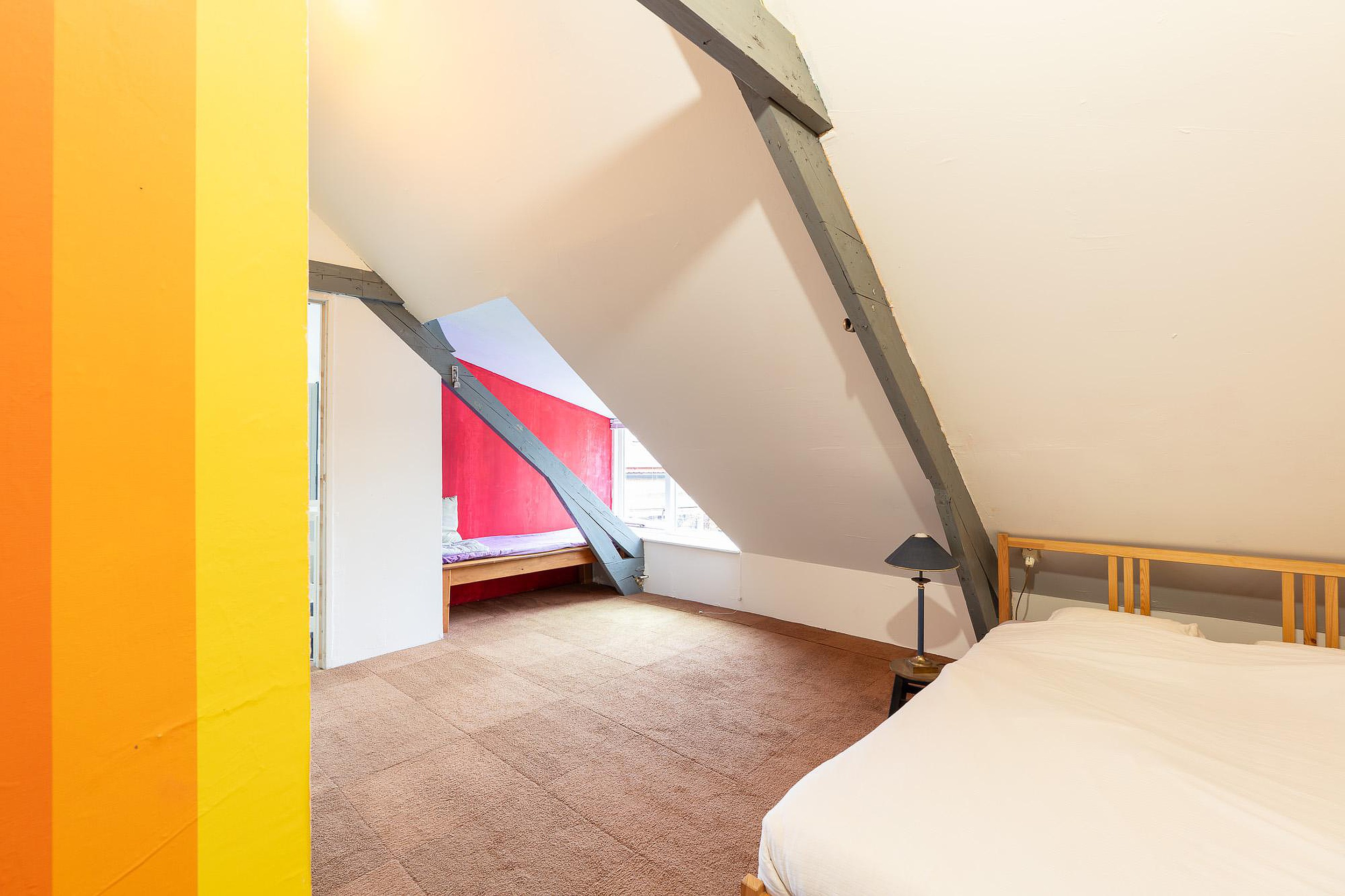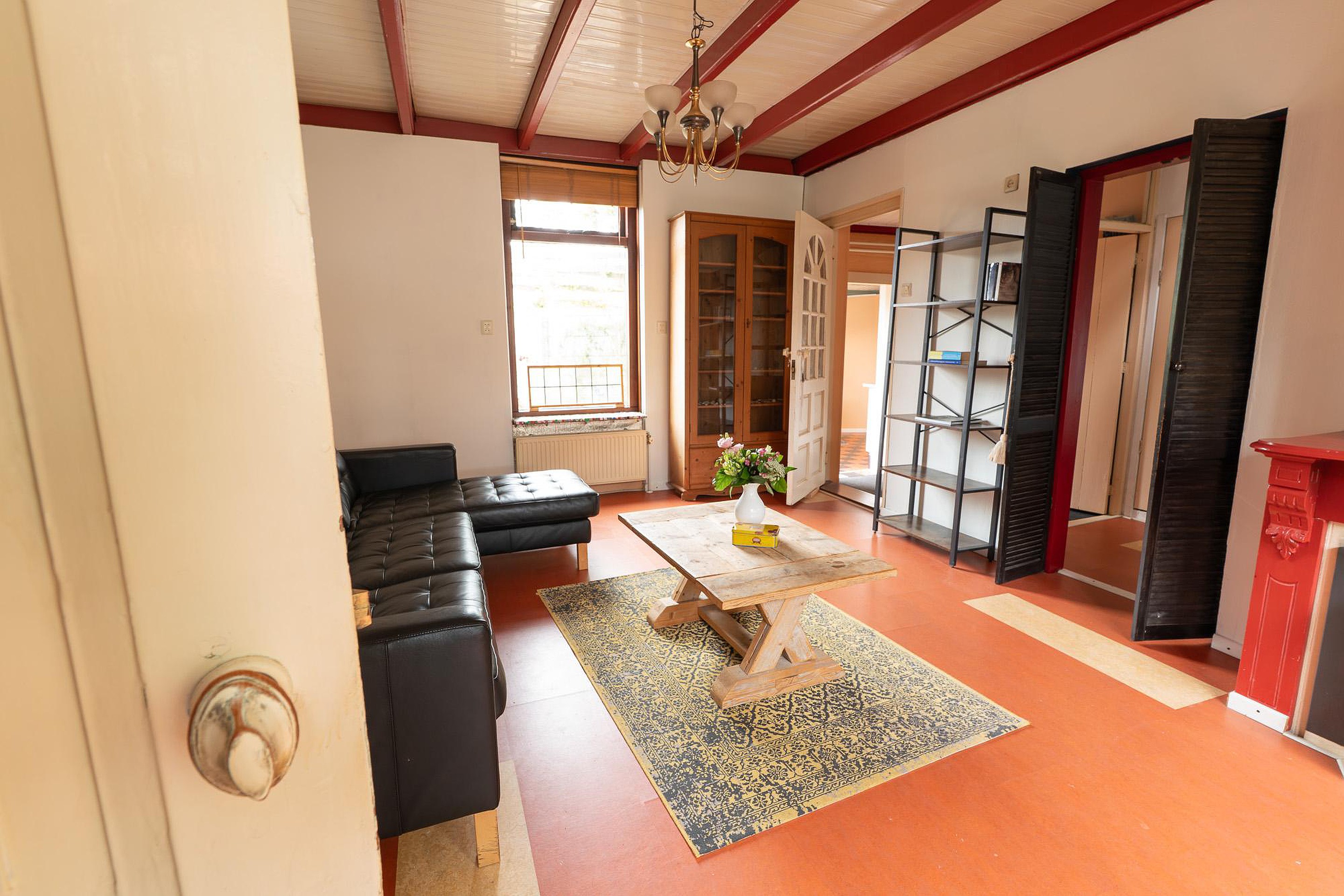 Eerste verdieping Via de trap in de hal bereikt u de eerste verdieping, een verdieping vol verrassingen en mogelijkheden. Hier bevinden zich twee slaapkamers en een opbergruimte. De hoofdslaapkamer op deze verdieping is relatief groot en voorzien van een wastafel, wat extra gemak biedt. De kamer is strak afgewerkt, maar heeft een uniek detail: de originele dakspanten zijn nog zichtbaar, wat een karakteristieke en robuuste sfeer geeft.